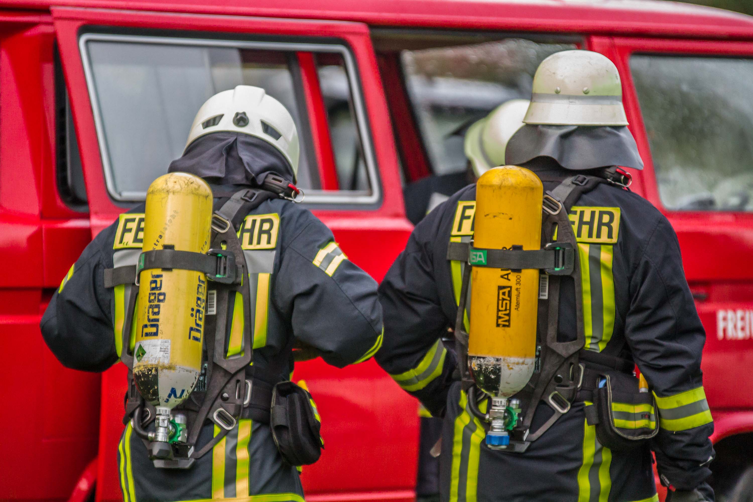 Ein angrenzender Gastank musste zunächst gekühlt werden. Unter Atemschutz rückte ein Angriffstrupp in das verrauchte Gebäude vor und begann mit der Brandbekämpfung und der Suche nach möglichen verletzen Personen im Gebäude. Personen waren letztendlich nicht mehr Gebäude aufzufinden.