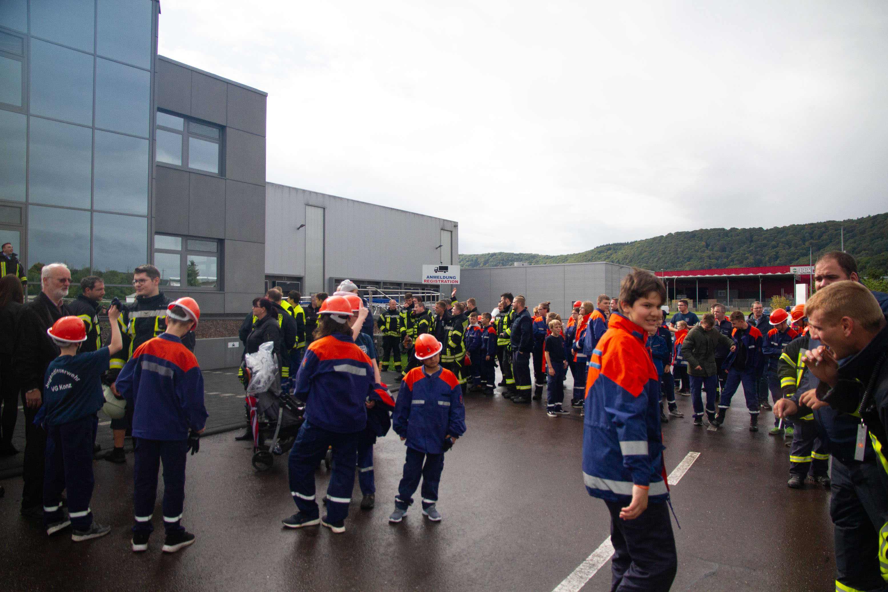 Übungsobjekt war das Betriebsgebäude und die Außenanlagen der Firma Parts Europe im Industriegebiet Konz-Könen. Zahlreiche Zuschauer; Eltern, Wehrkameraden, Betreuer, Jugendwarte und Führungskräfte der FFW in der VG Konz fanden sich gegen 14.00 Uhr auf dem Betriebsgelände zur Beobachtung und Betreuung der Jugendlichen ein.
