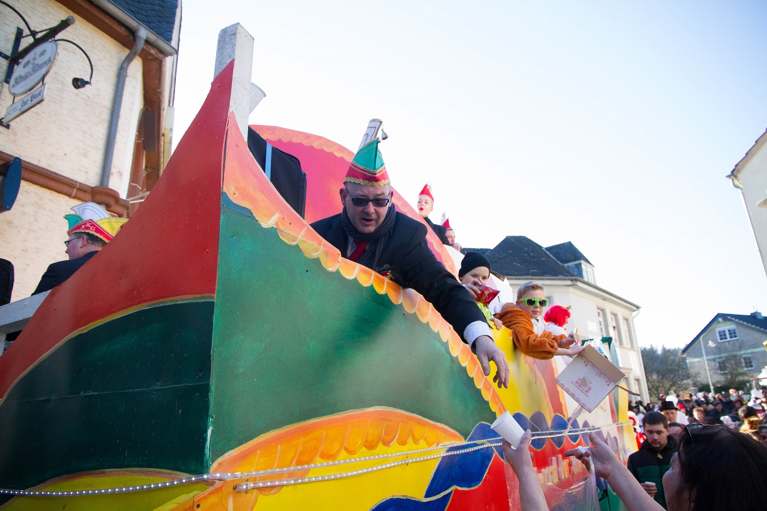 Bei Kaiserwetter und geänderter Zugstrecke startete der Karnevalsumzug der SKG Serrig mit prächtiger Stimmung. Rund 2000 Zuschauer verfolgten den Umzug bei strahlendem Sonnenschein.