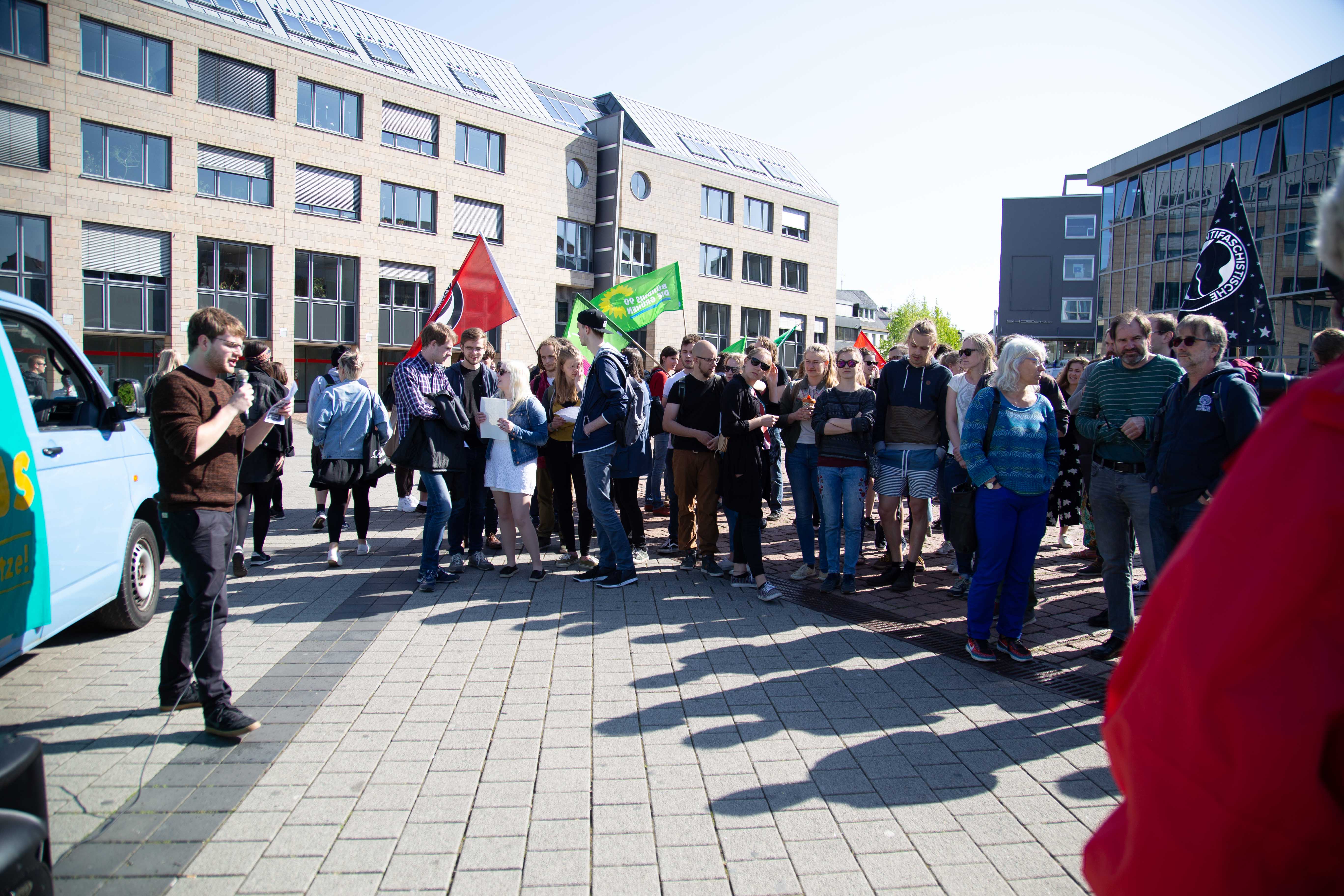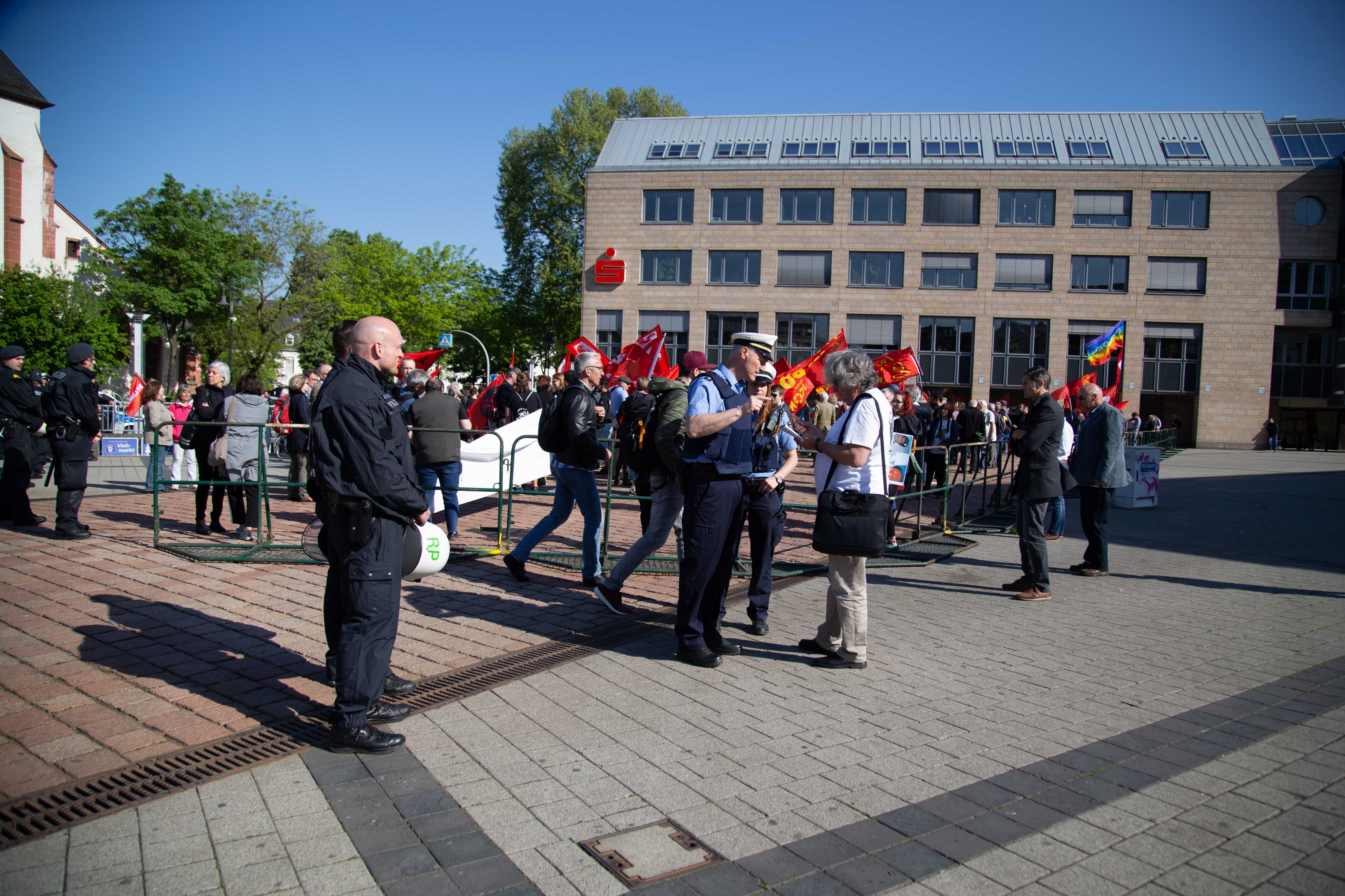 Begonnen hatte der Tag für die Polizei mit der Kundgebung des „Karl-Marx-Bündnisses“ auf dem Trierer Viehmarktplatz um 9.30 Uhr mit anschließender Demonstration durch die Fußgängerzone in Richtung Simeonstiftplatz. 45 Minuten später folgte die Kundgebung der Partei „AfD“, die von gleicher Stelle starten ebenfalls einen Demonstrationszug durch die Innenstadt durchführten. Flankiert wurde deren Kundgebung von einer Gegenveranstaltung des Multikulturellen Zentrums Trier.