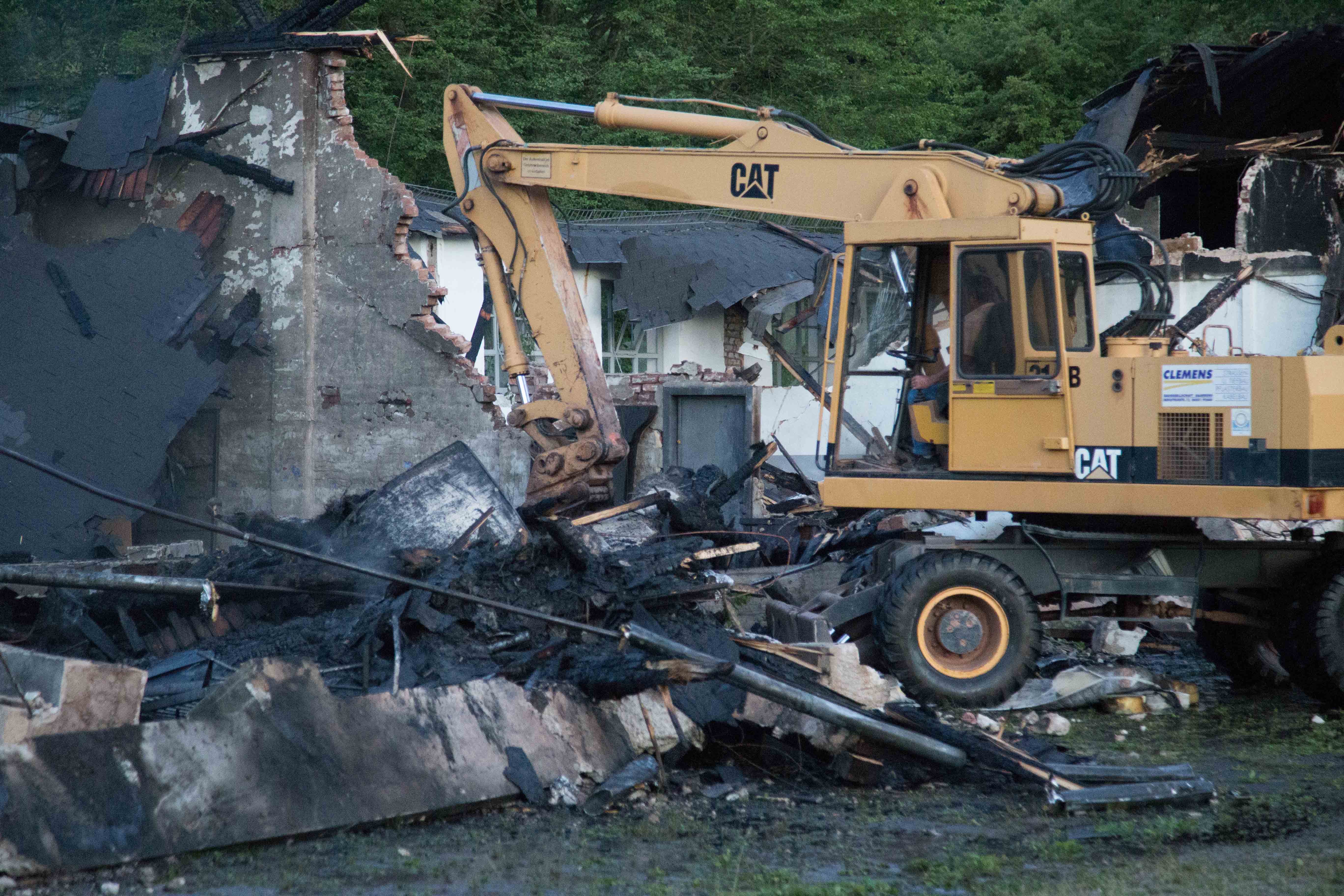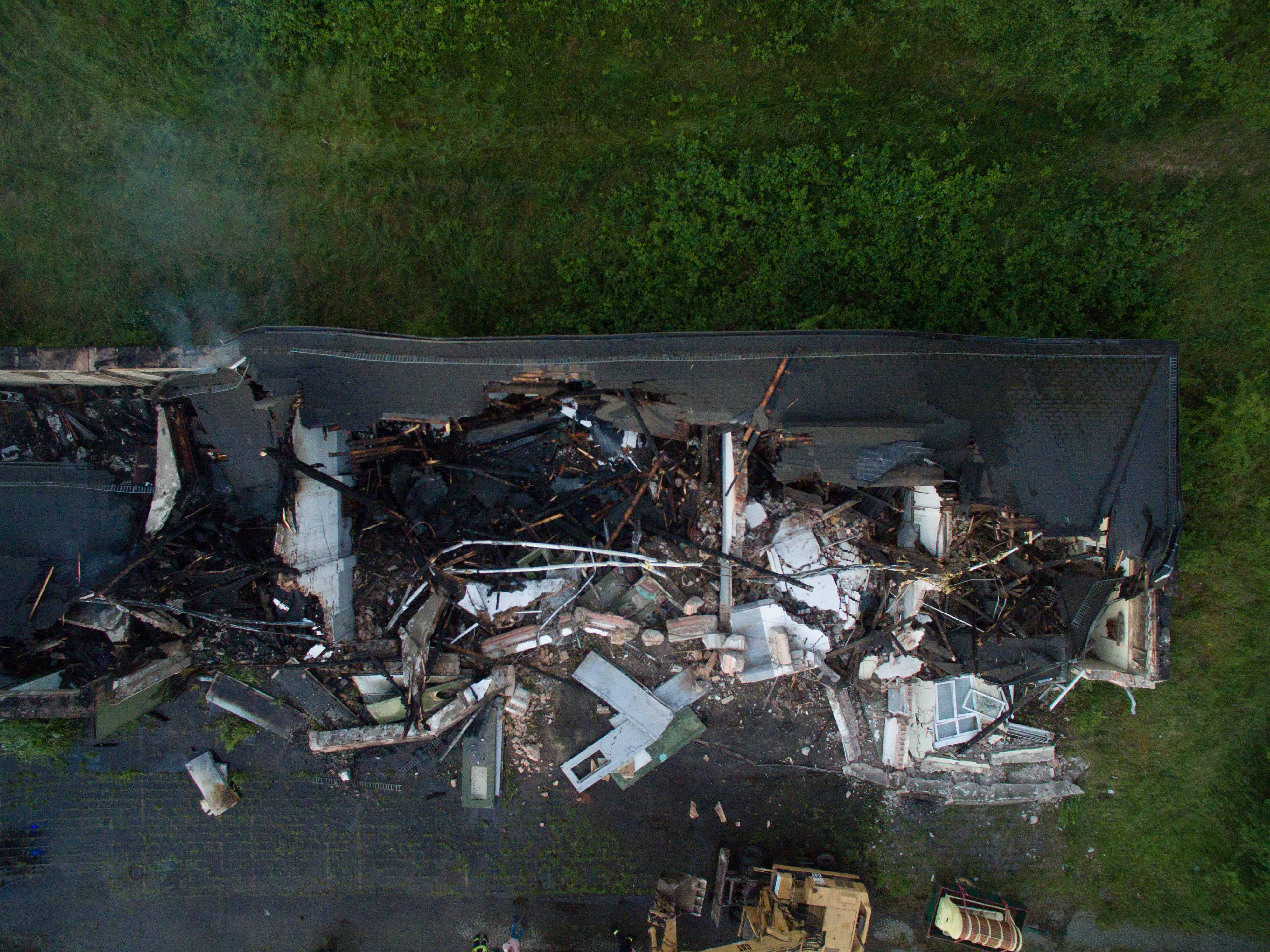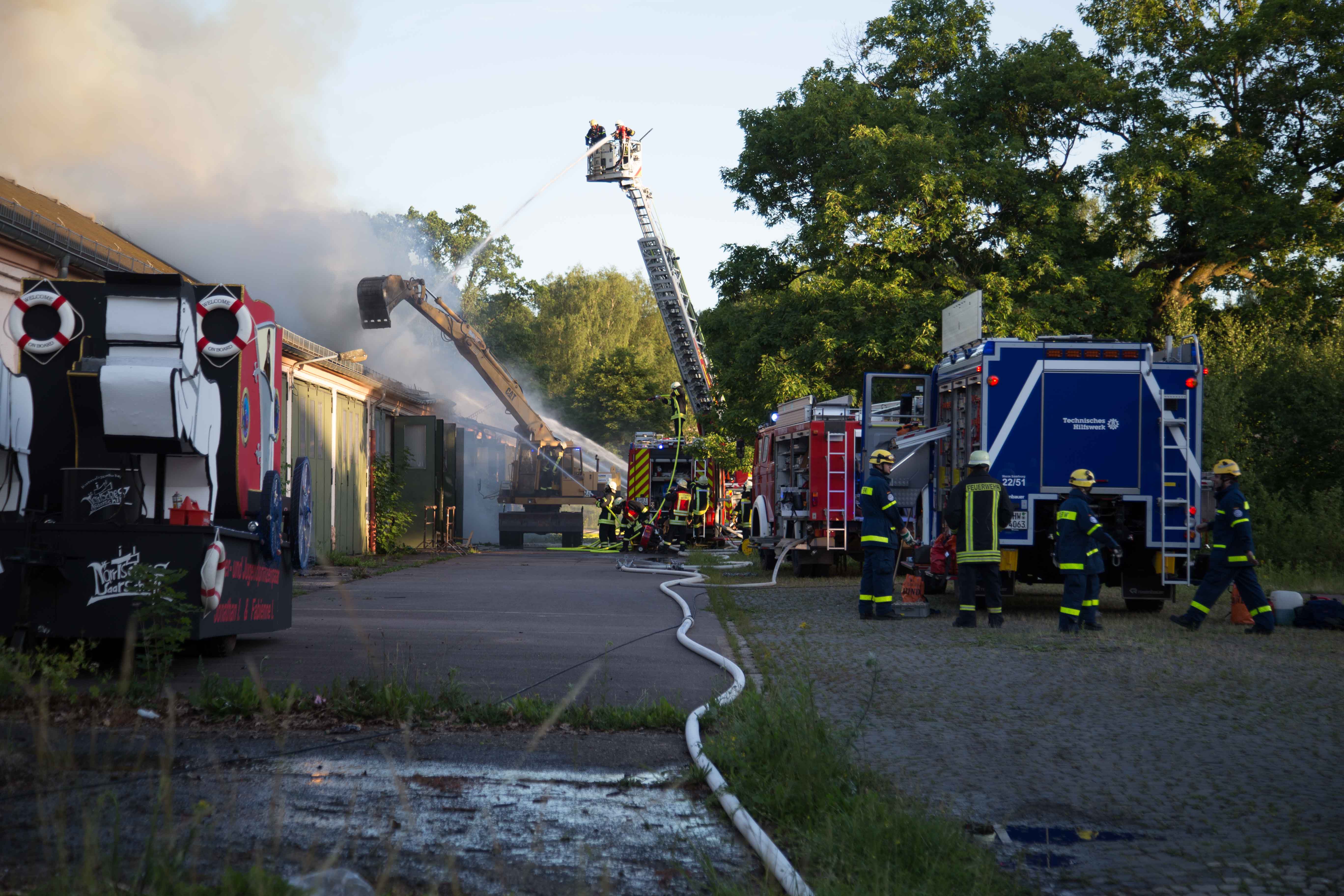 Wegen Bekämpfung der Glutnester war es im Verlauf des Einsatzes erforderlich schweres Gerät einzusetzen. Mit Bagger und Schaufellader wurde von einem Drittel der Halle die Dachkonstruktion und die Außenwände eingerissen. Der gesamte Einsatz dauerte rund vier Stunden.