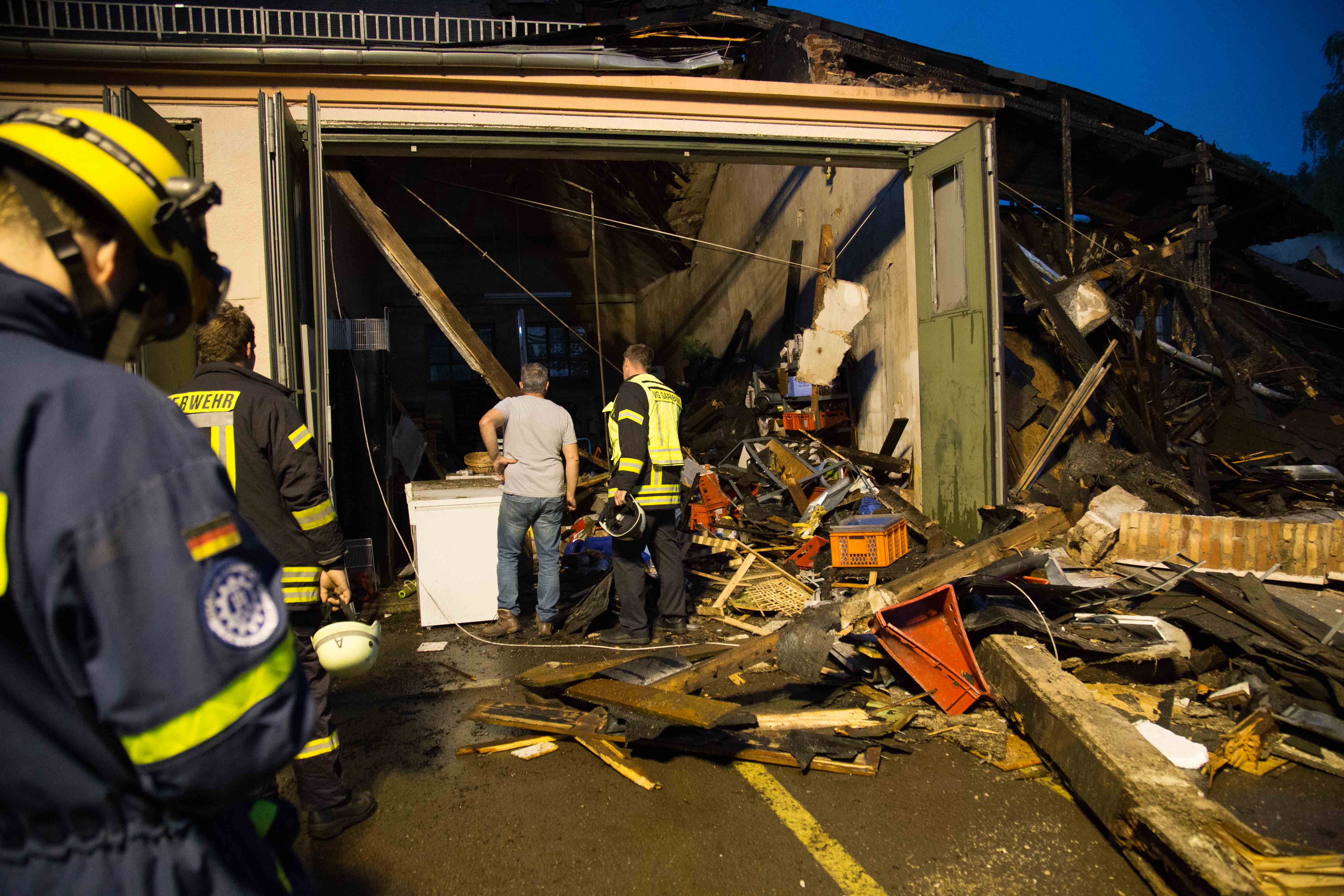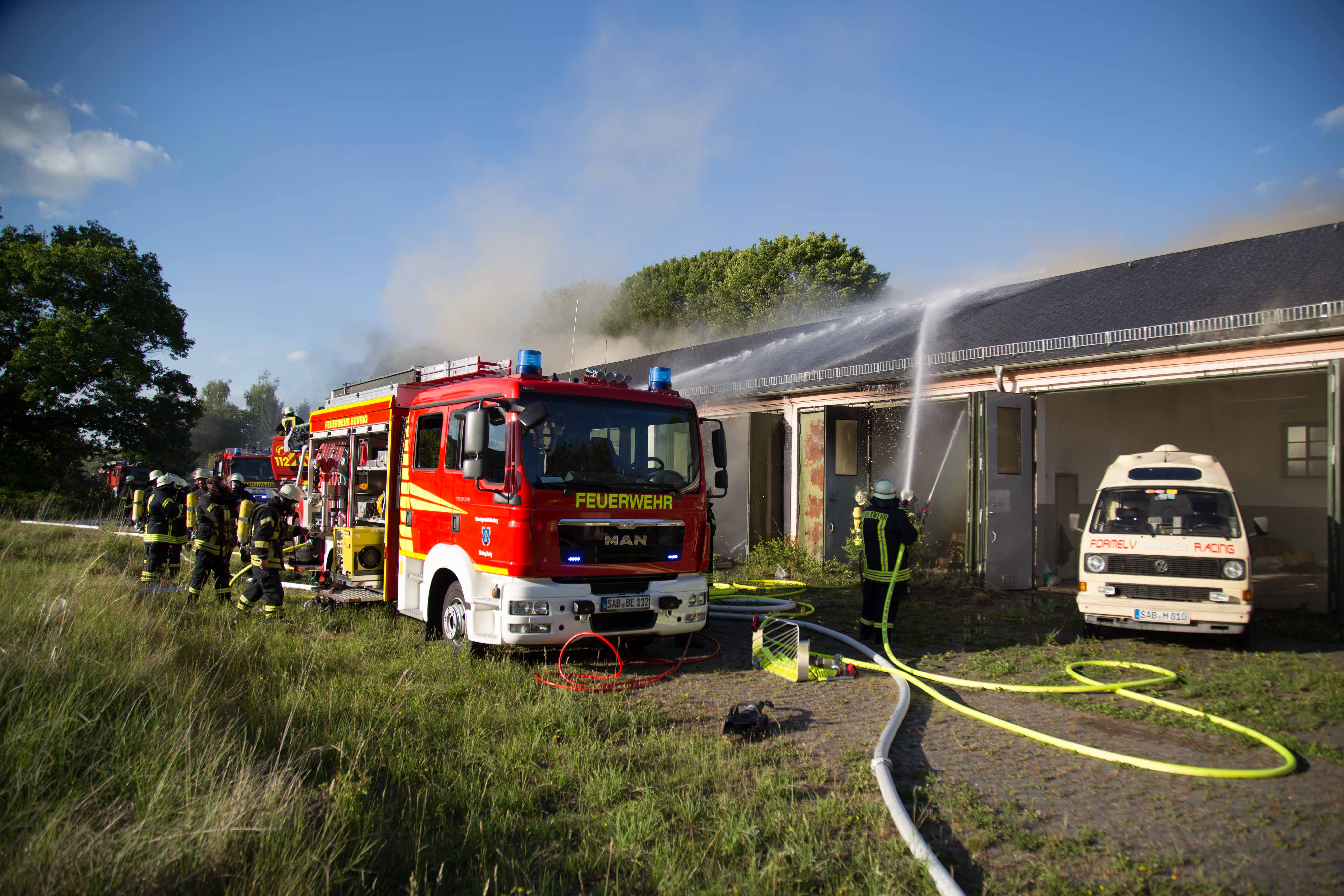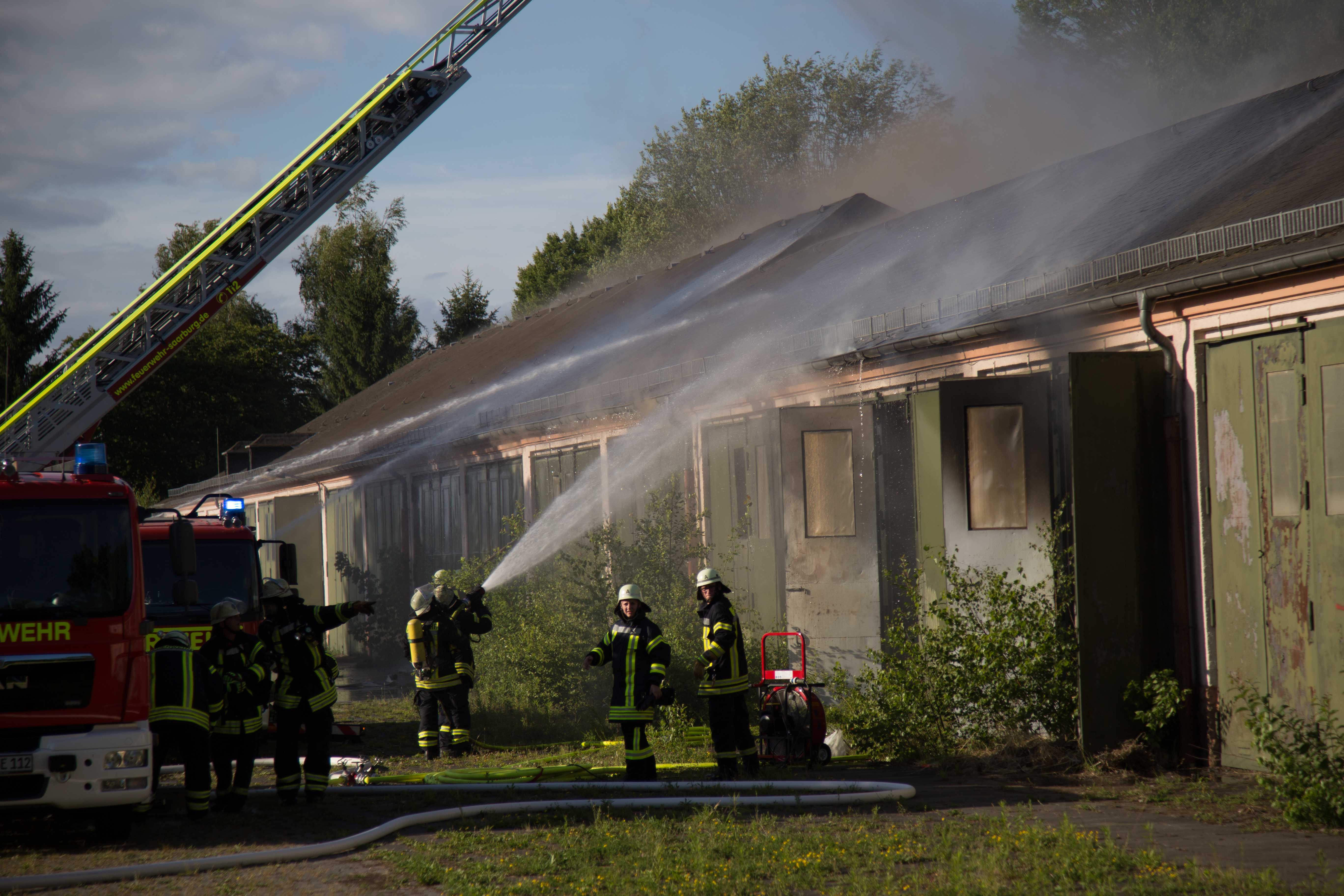 Kasernenhalle in Saarburg-Beurig nach Brand fast vollständig zerstört. – Flüchtlingsunterkunft evakuiert – Einsatzkräfte verletzt.
