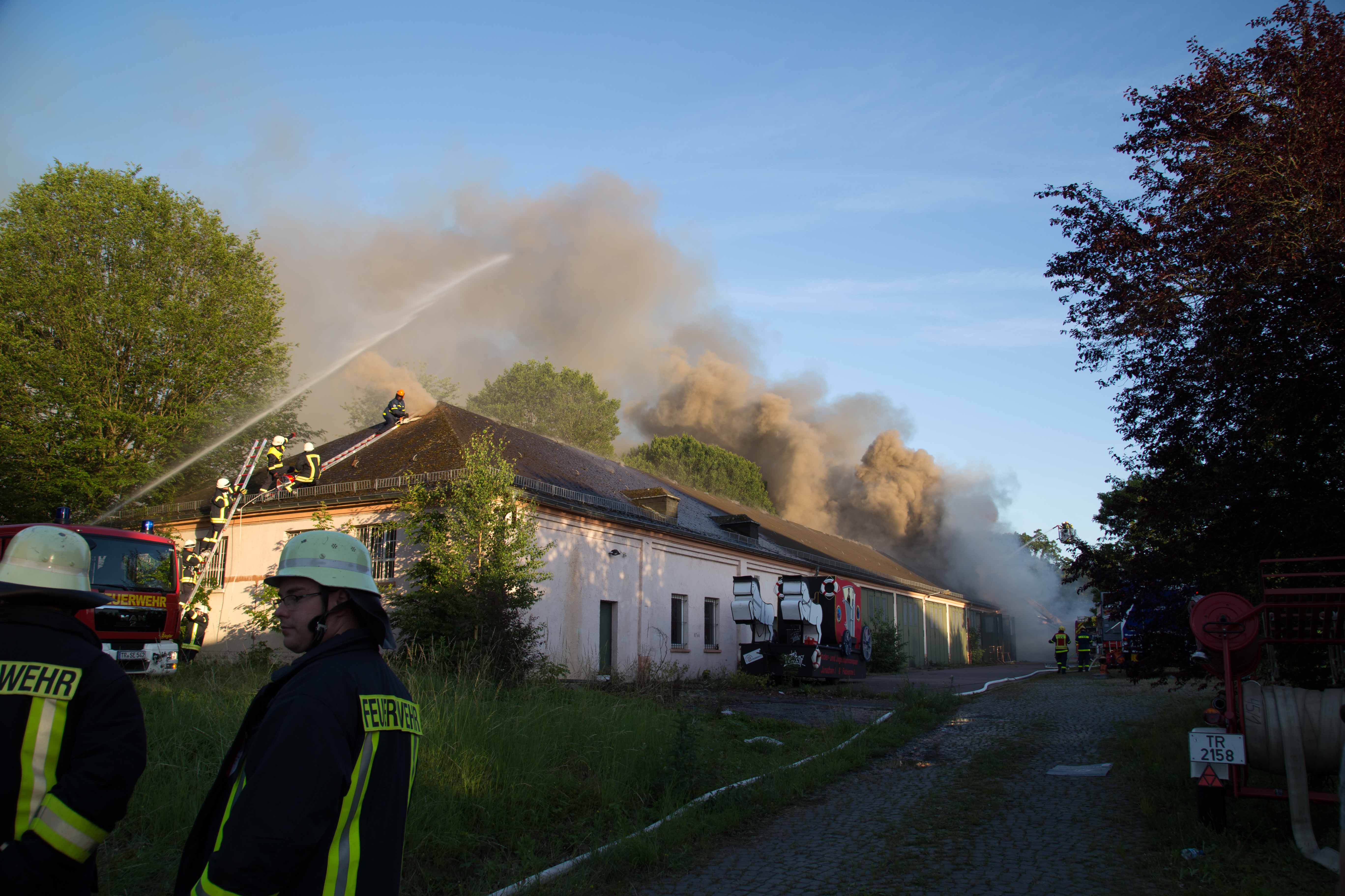 Saarburg. Gegen 19.00 Uhr wurde auf dem ehemaligen Gelände der französischen Kaserne in Saarburg in einem Hallentrakt eine starke Rauchentwicklung gemeldet. Beim Eintreffen der ersten Einsatzkräfte stieg über die gesamte Dachkonstruktion und den Belüftungsschächten ein beißender, teils ätzender Rauch auf.