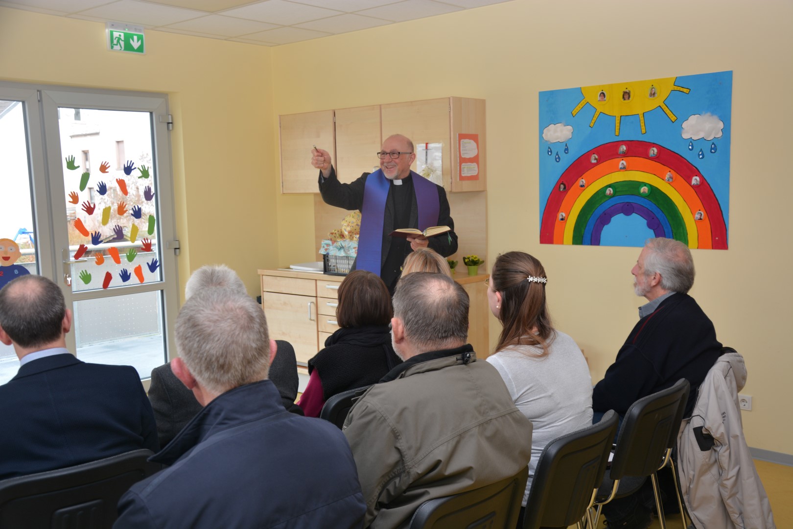Seit 1978 ist Frau Lauer nun schon im Tawerner Kindergarten tätig – davon die letzten 18 Jahre als Standortleiterin. Nachdem auch Ortsbürgermeister Müller, Bürgermeister Weber und Kreisbeigeordneter Reis ihre Glückwünsche zu diesem Ereignis überbrachten, lies es sich auch Pastor Bernhard Bollig nicht nehmen, Frau Lauer für ihre langjährige Arbeit zu danken. Im Anschluß segnete Pastor Bernhard Bollig die neuen Räume ein.