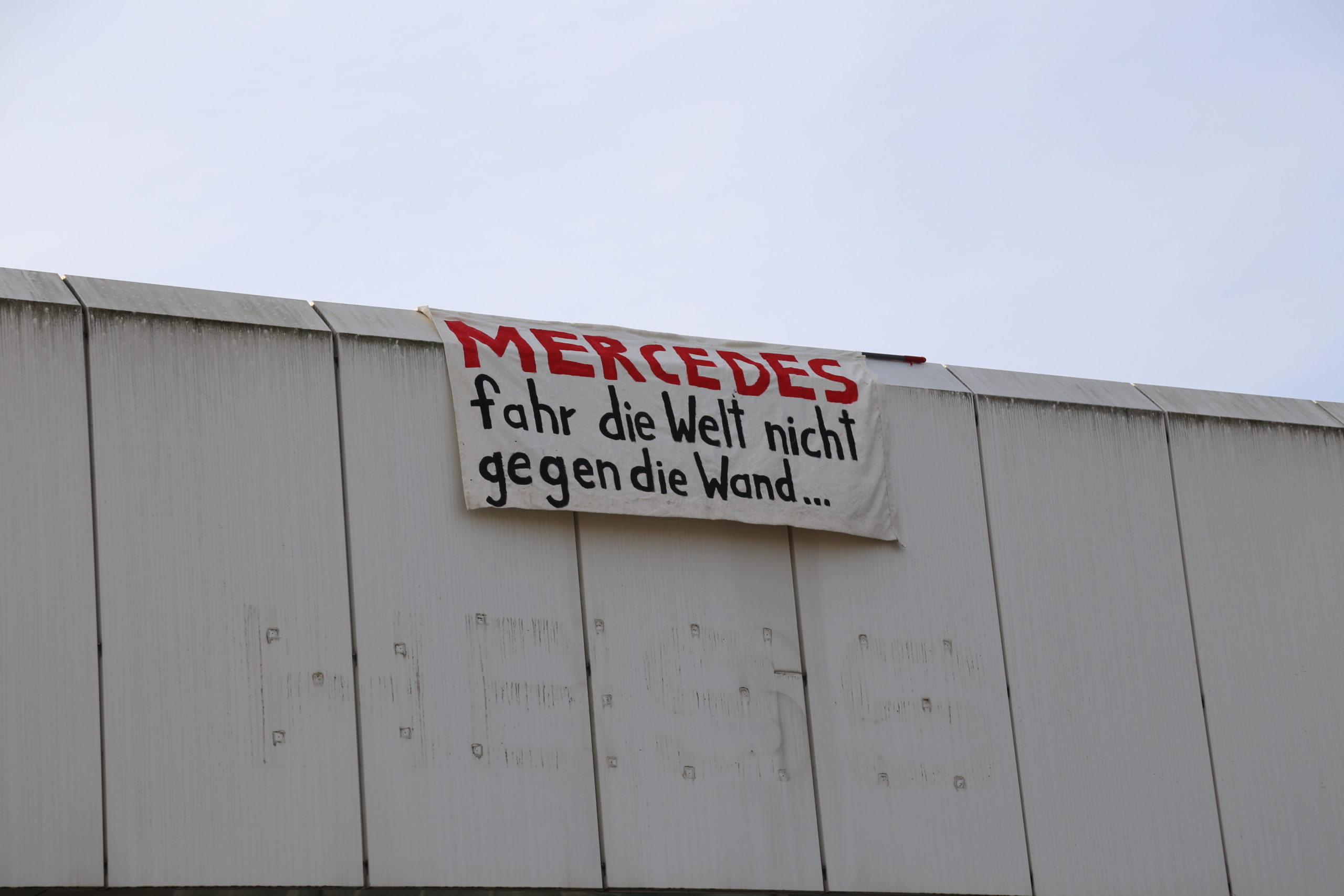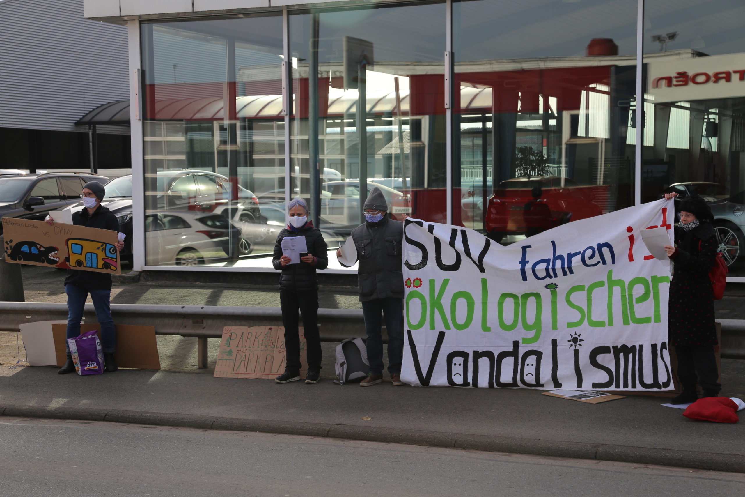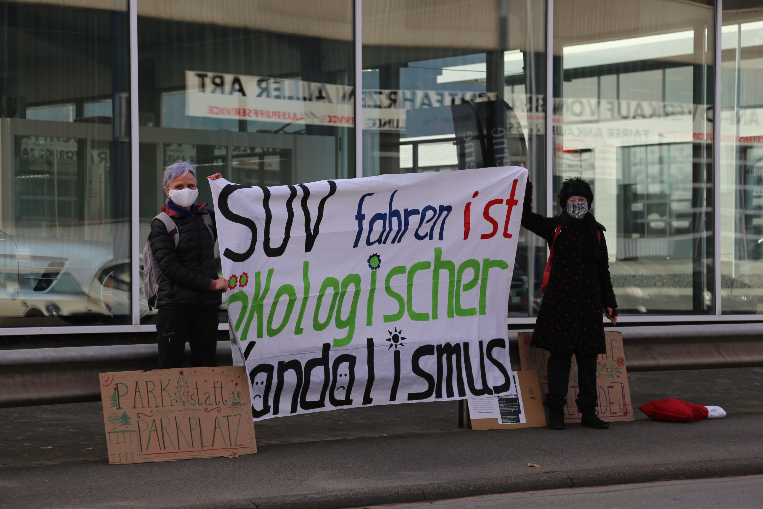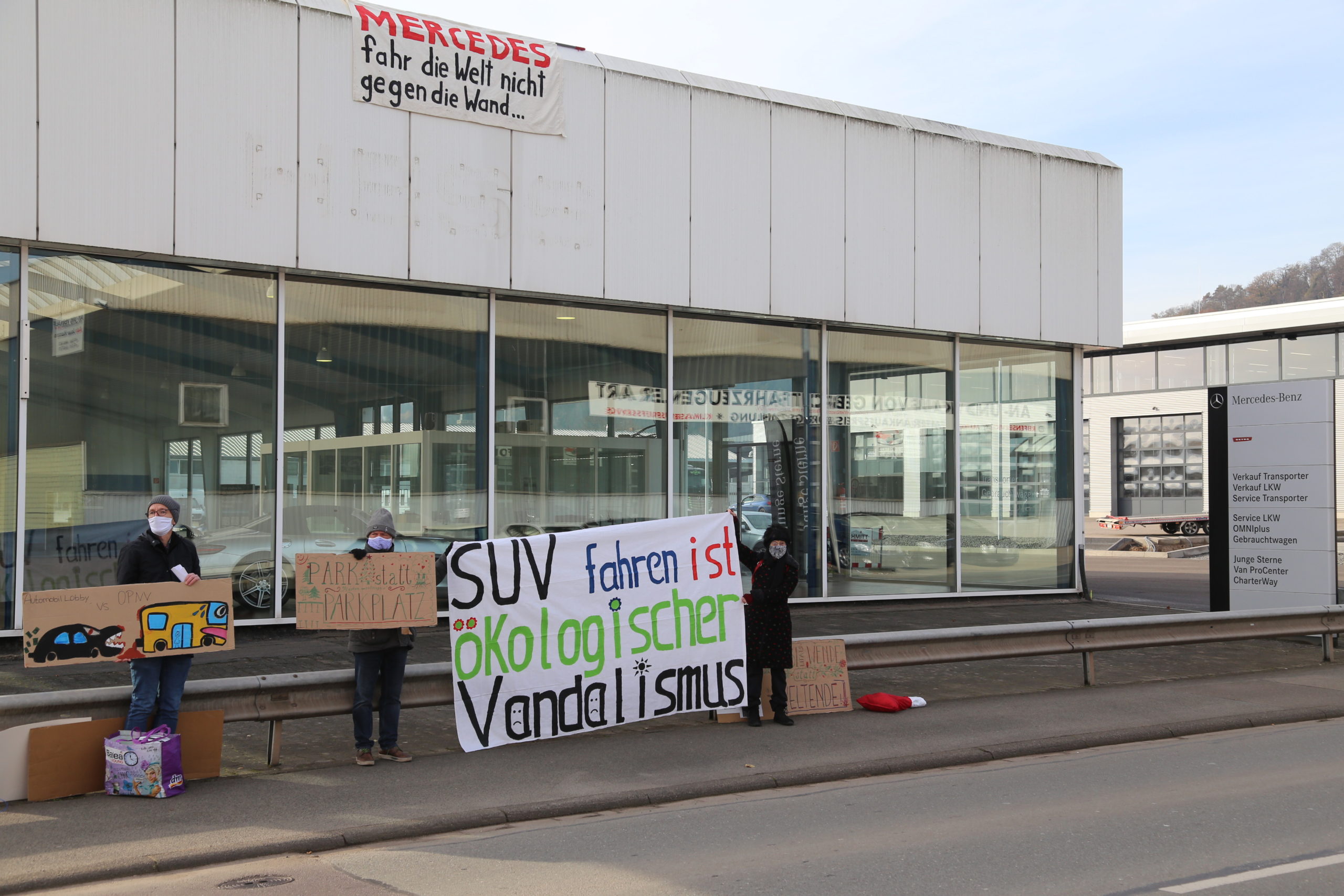 Trier. Heute demonstrierte Extinction Rebellion vor einem Mercedes-Autohaus in Euren. Sie fordern das Ende von übermotorisierten Stadtgeländewagen (SUV). Vier Klimaaktivisten stellten sich mit Plakaten vor das Autohaus, weitere kletterten auf das Dach und ließen ein Transparent herunterhängen. Bevor die Polizei eintraf, suchten die Aktivisten auf dem Dach das Weite. Vor dem Gebäude blieben nur die übrigen vier Demonstranten. Die Polizei nahm die Personalien auf und fahndet wegen Hausfriedensbruch nach den flüchtigen Personen. Insgesamt dauerte die Protestaktion rund eine Stunde.