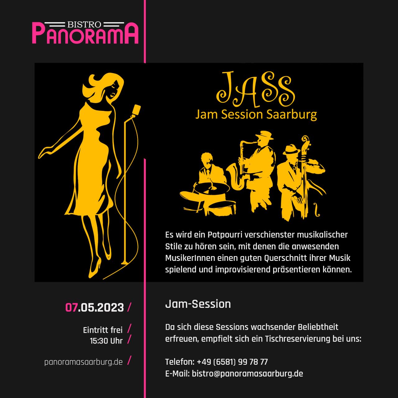 Die Jass Session Saarburg präsentiert am 7.5.23 15.30 Uhr ein Potpourri verschiedene musikalische Stile mit wachsender Beliebheit. Eintritt frei.