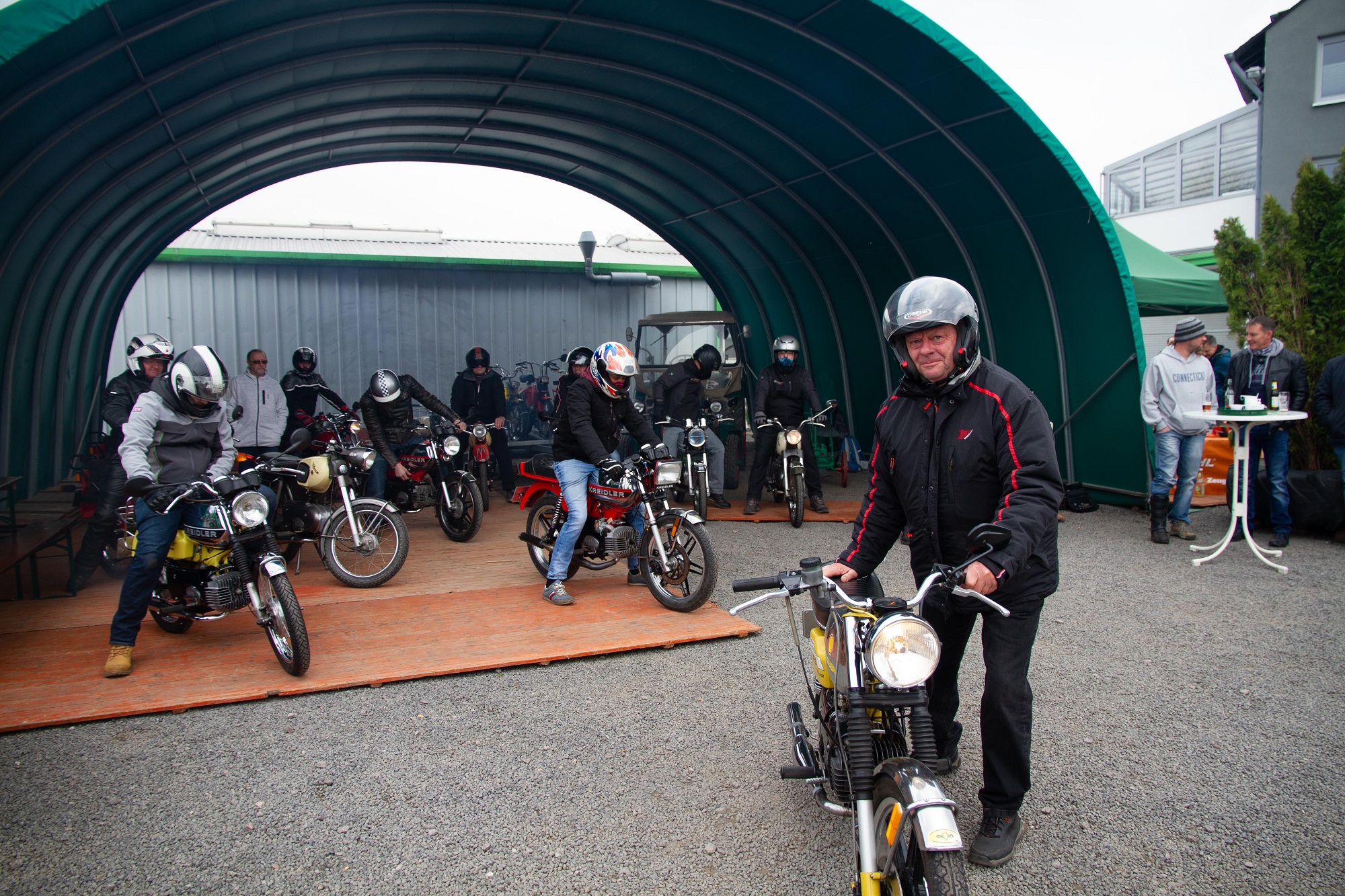 Die Kreidler Freunde haben dies gerne auf Wusch des Initiator Martin Esser gemacht, zumal man auch am frühen Nachmittag zu einer kleinen Rundfahrt über Schoden und Wawern und wieder gemeinsam zurück gestartet ist. Zwar hatten sich mehr als die 16 Kreidler Freunde angemeldet, aber am frühen Vormittag hat es in der Region Saarburg eine kräftige Schneeschauer gegeben, die für den oder anderen Zweiradbesitzer nicht die ideale Voraussetzung war, an der Veranstaltung teilzunehmen.