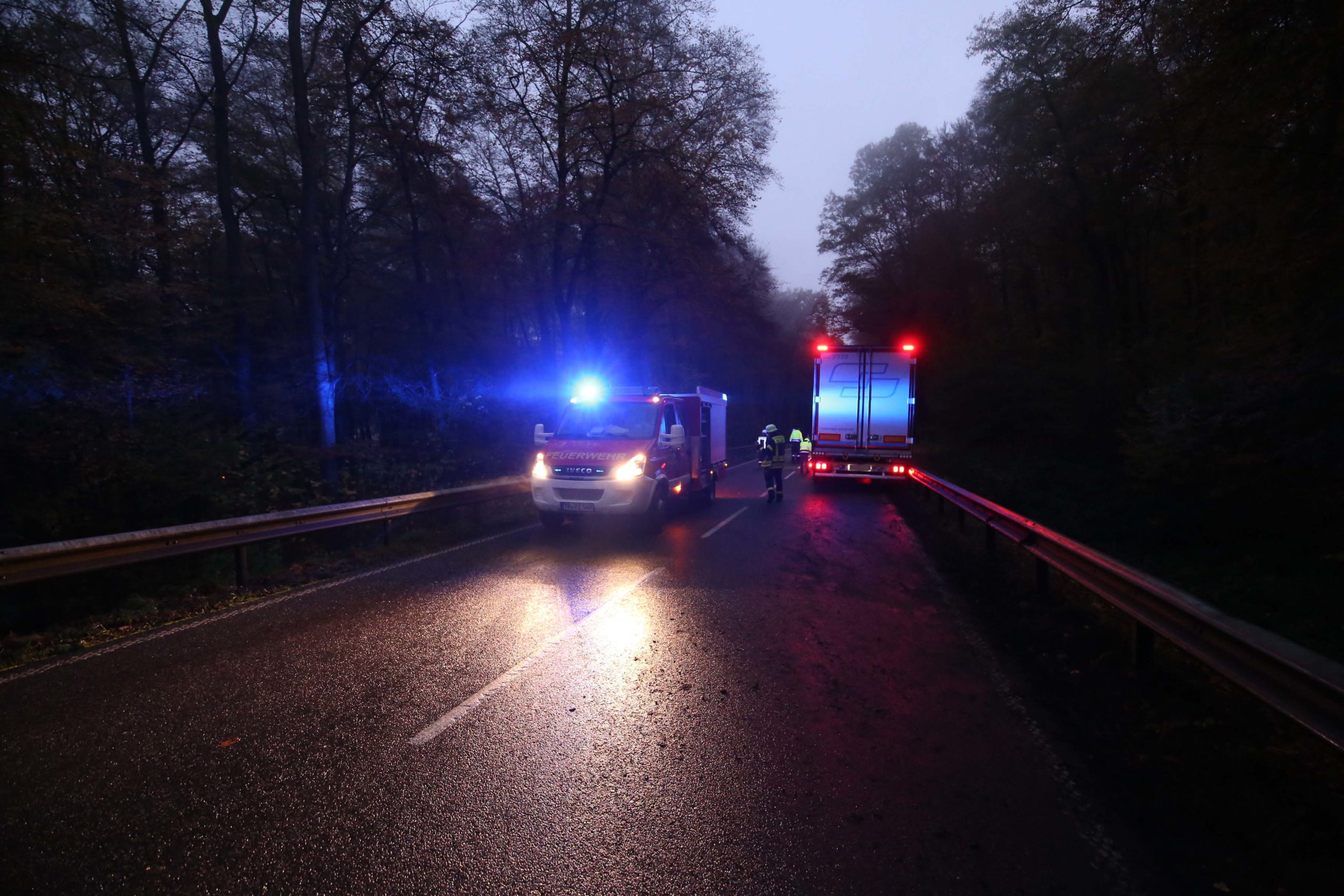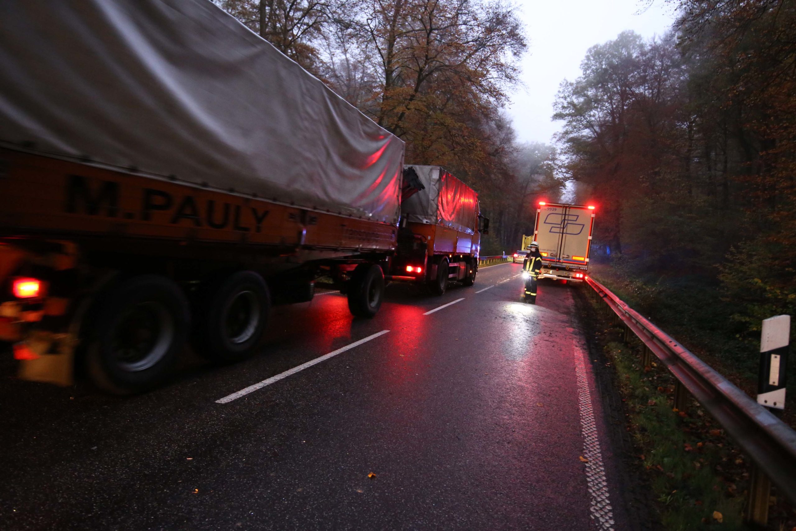 B419/Palzem/Wehr. Am Montagmorgen kam es gegen 6.15 Uhr zu einem Verkehrsunfall auf der B419 bei Palzem-Wehr. Ein aus Richtung Trier kommender LKW kam leicht auf die Gegenfahrbahn und kollidierte dort mit einen aus Richtung Perl entgegenkommenden LKW. Zuvor soll ein weiter LKW den Unfallverursacher am Spiegel touchiert haben.