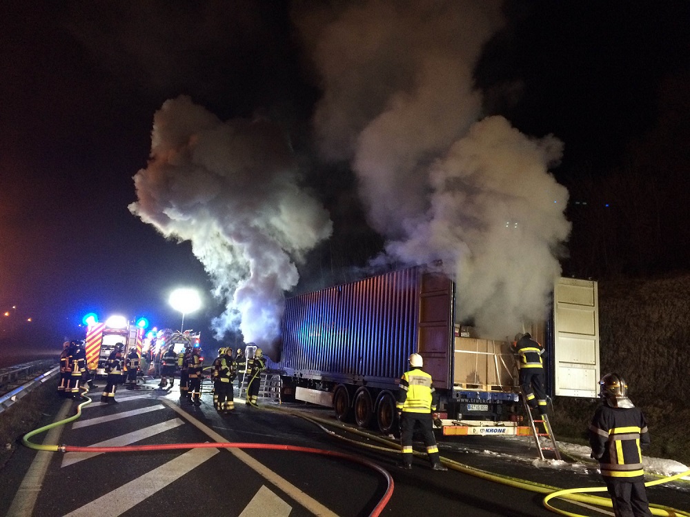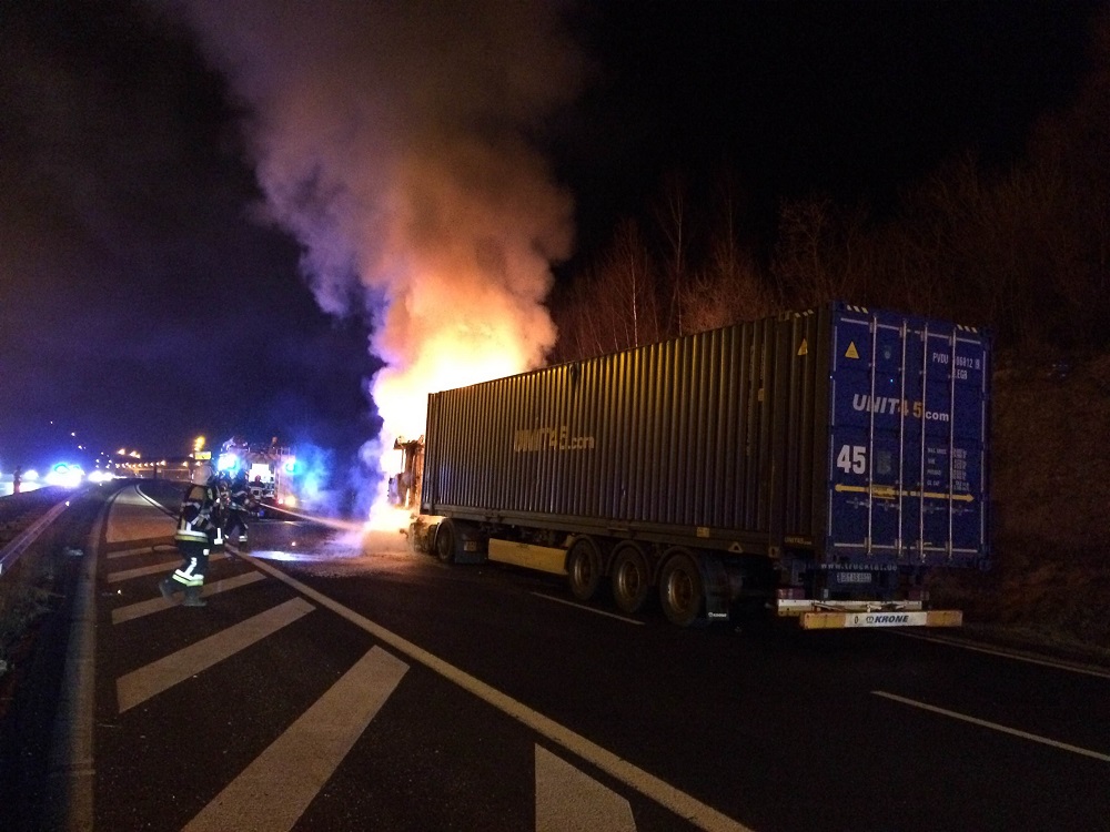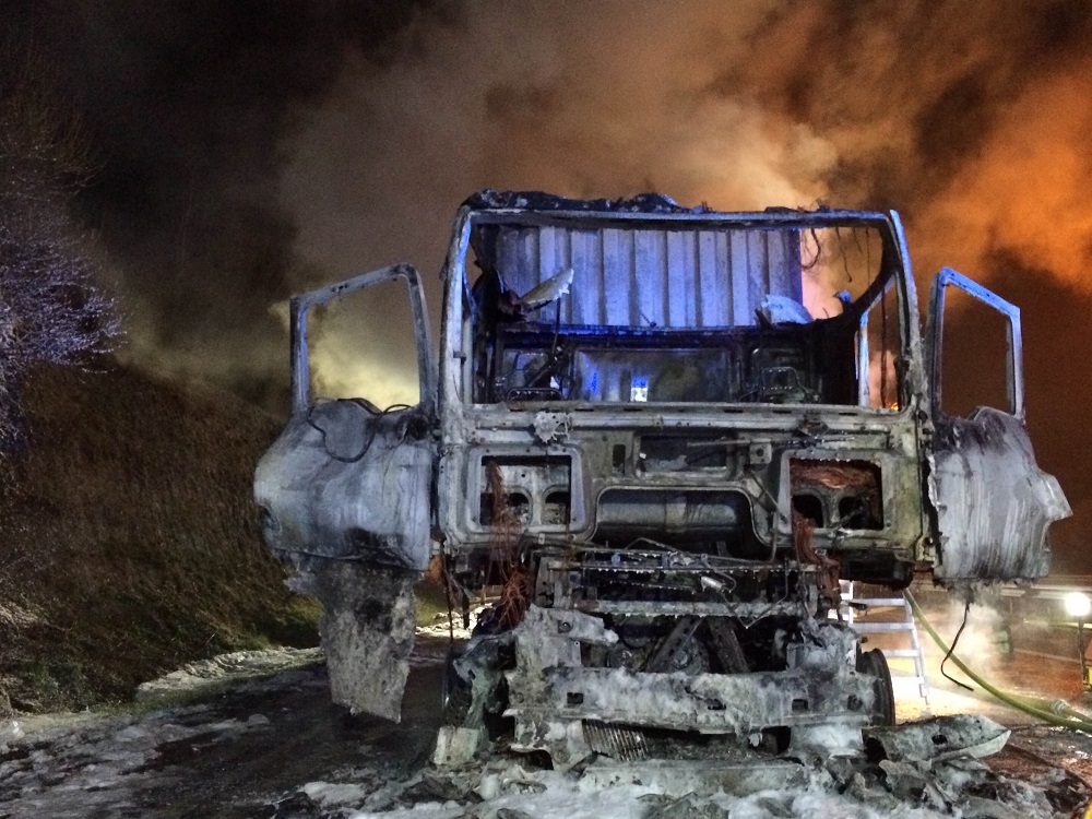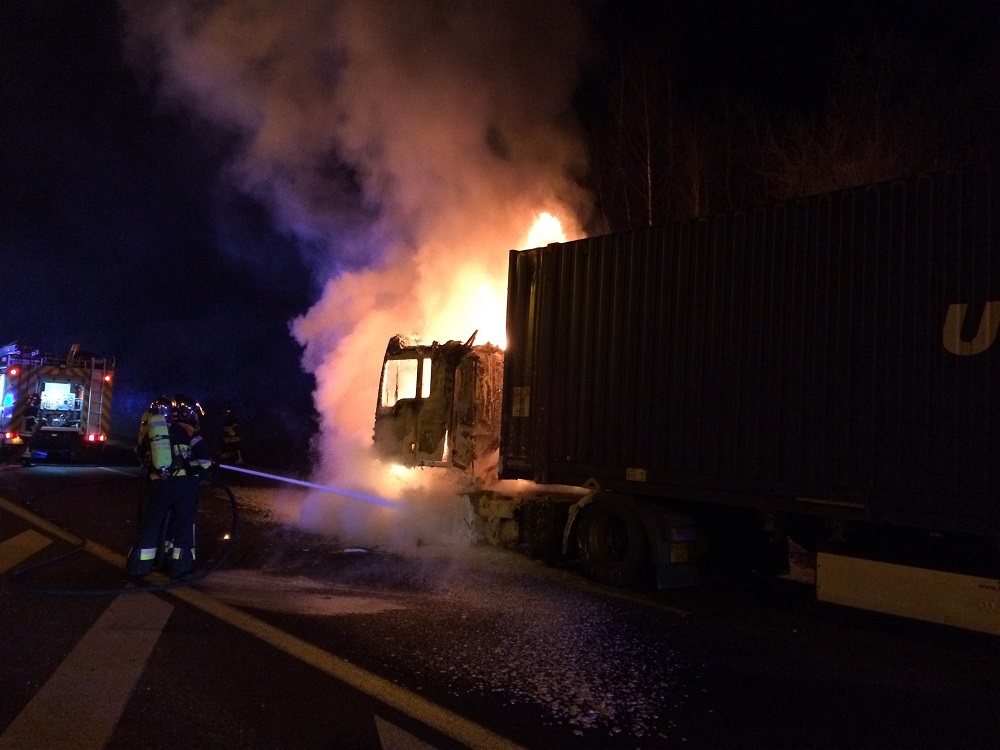 Die Zugmaschiene eines Sattelanhängers fing Feuer und musste stehen bleiben. Die örtliche Feuerwehr und die Berufsfeuerwehr eilten herbei um den Brand zu löschen. Mittlerweile griffen die Flammen auf den Sattelanhänger über. Der Teilabschnitt auf der A1, Höhe Flugzeugbrücke, Richtung Luxemburg wurde hieraufhin gesperrt. Der Verkehr wurde über die N1 von Münsbach nach Senningerberg umgeleitet. Zeitweise musste auf diesem Streckenabschnitt die Überholspur auf der entgegenkommen Fahrtrichtung wegen starkem Rauch und herumfliegenden Teilen zerplatzter Reifen gesperrt werden.