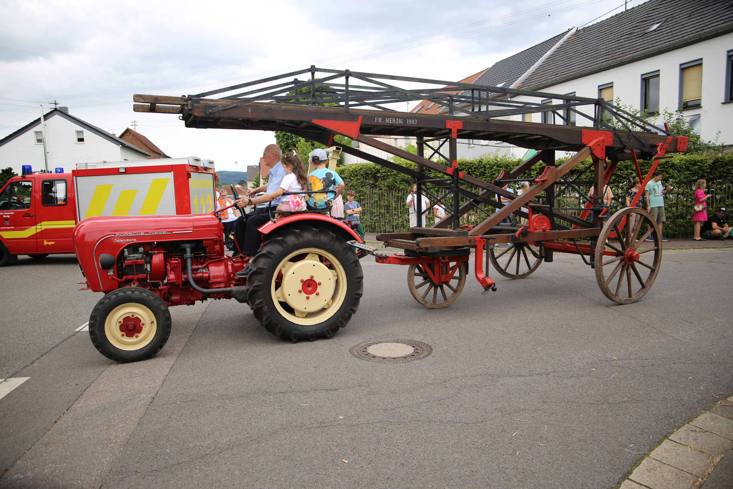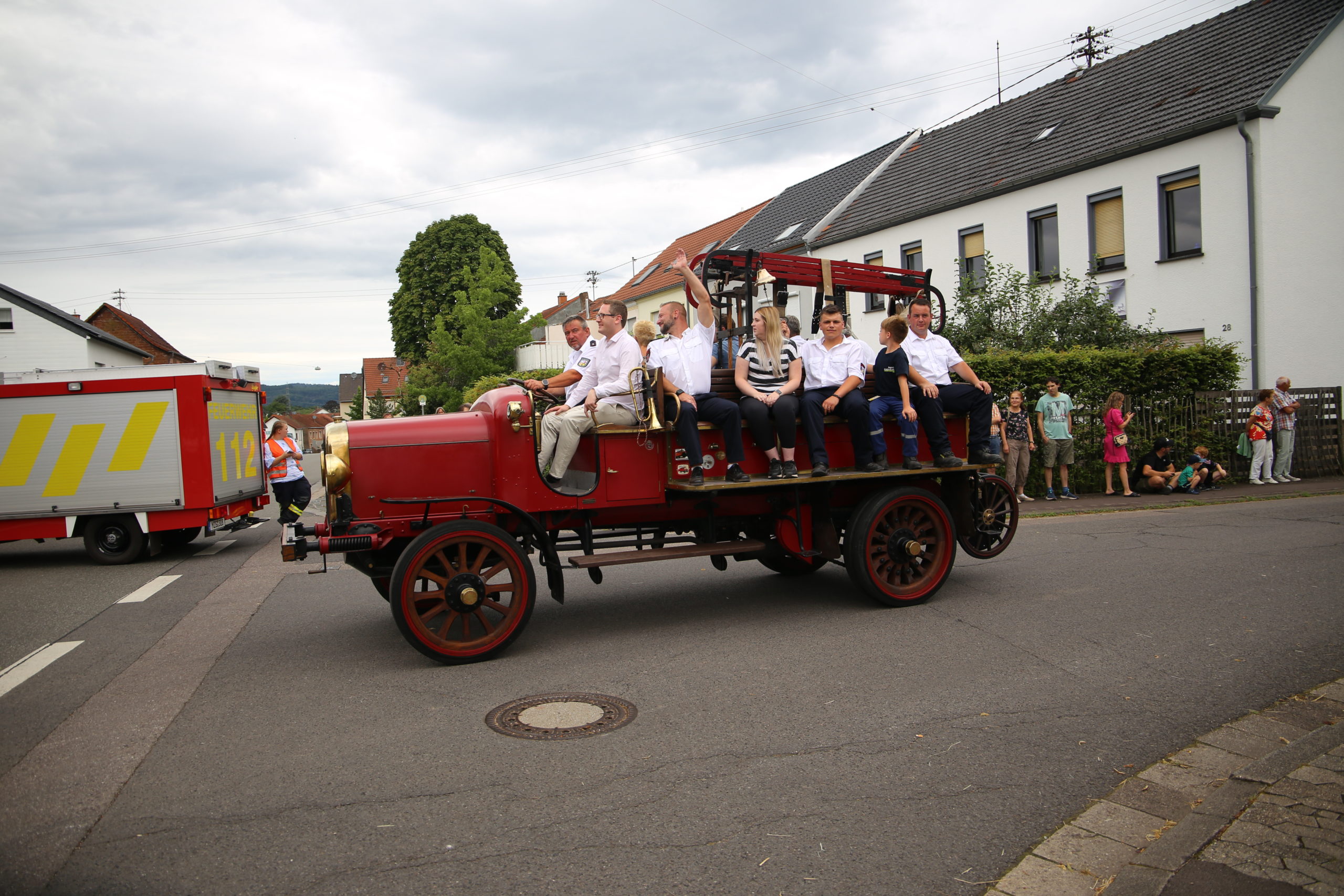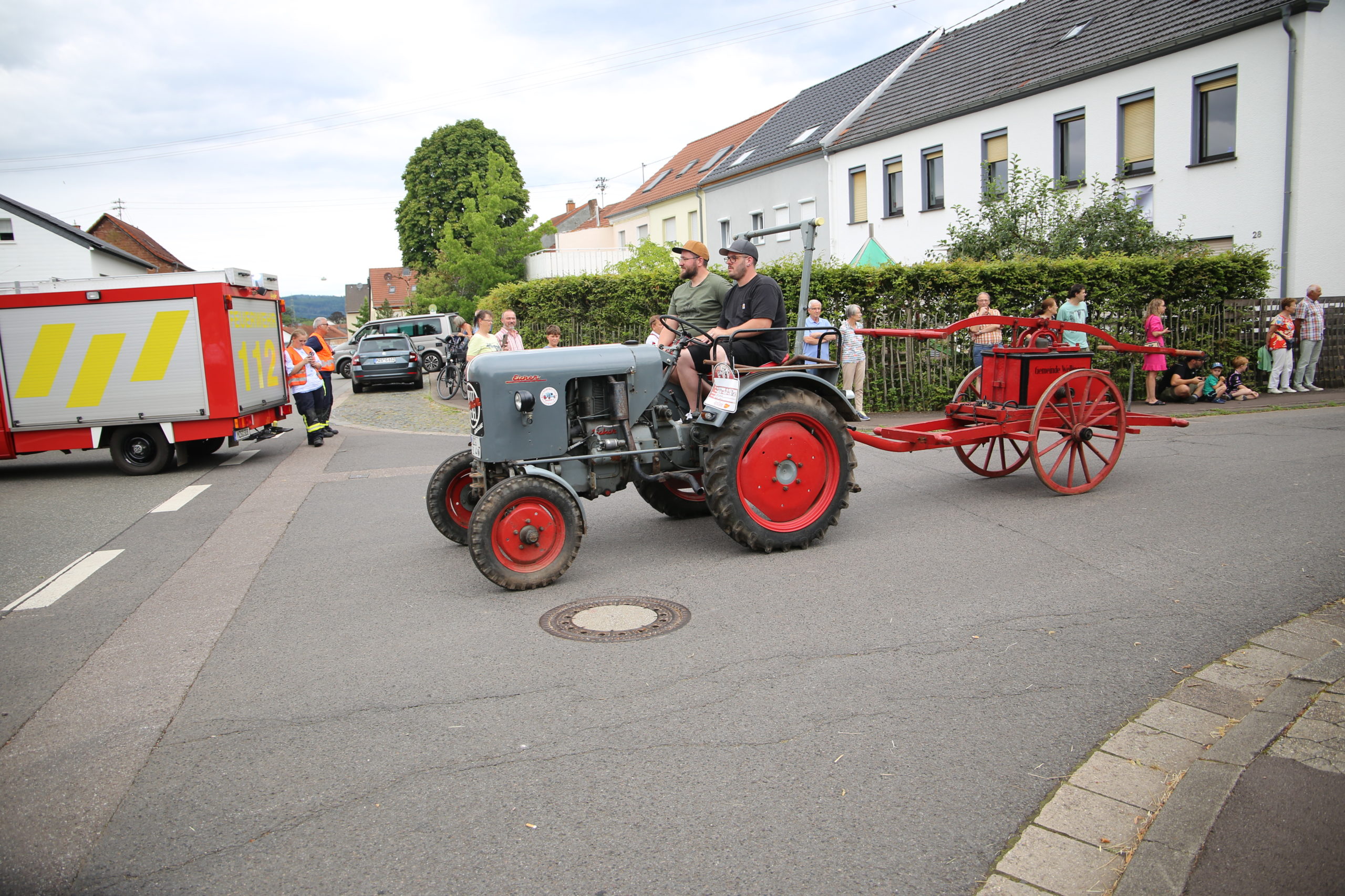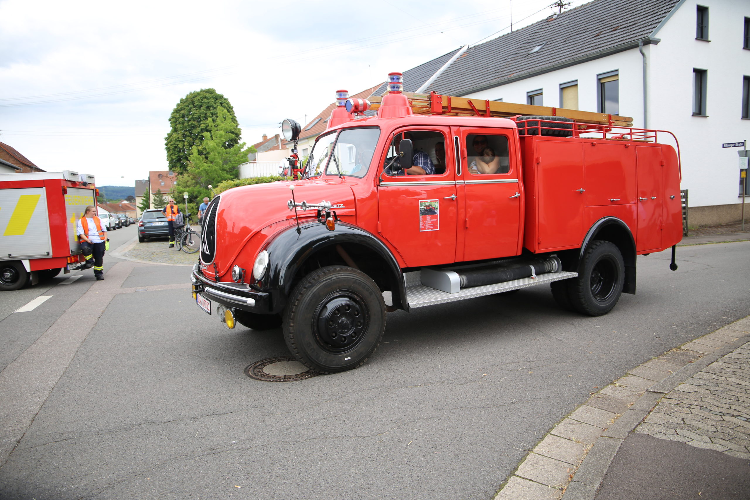 Zum Highlight am folgenden Sonntagnachmittag fand in der ca. 1300 Einwohnergemeinde Ballern die historische Oltimerparade durch Ballern mit zahlreichen Teilnehmer aus der Großregion und dem benachbarten Rheinland-Pfalz statt. Besonderes Aufsehen errangen die Zuschauer der 112 Jahre DELAHAYE AP 59 aus Privatbesitz. Ihr Einsatzgebiet war in Grenoble und stand viele Jahre in einer Garage in der Nähe von Paris. Mit viel Liebe und Arrangement wurde das Löschfahrzeug mit der Alterswehr und dem Löschbezirk Fitten restauriert. Auch die legendäre und liebevoll genannte „Santa Maria“; der Feuerwehr Saarburg -Löschzug Mitte- fuhr mit ihren 75 Jahren auf dem Rad nach Ballern. Auch Vertreter des Feuerwehr Erlebnis Museum aus Hermeskeil nahm mit einigen Oldtimern teil.( Hinweis: Am 6.9.24 findet in Hermeskeil das Oltimertreffen der Blaulichtfamilie und Nutzfahrzeuge statt) Zum Abschluss der Parade fand die Siegerehrung der Oltimer mit ihren Fahrer im Festzelt durch Übergabe von Präsenten statt.