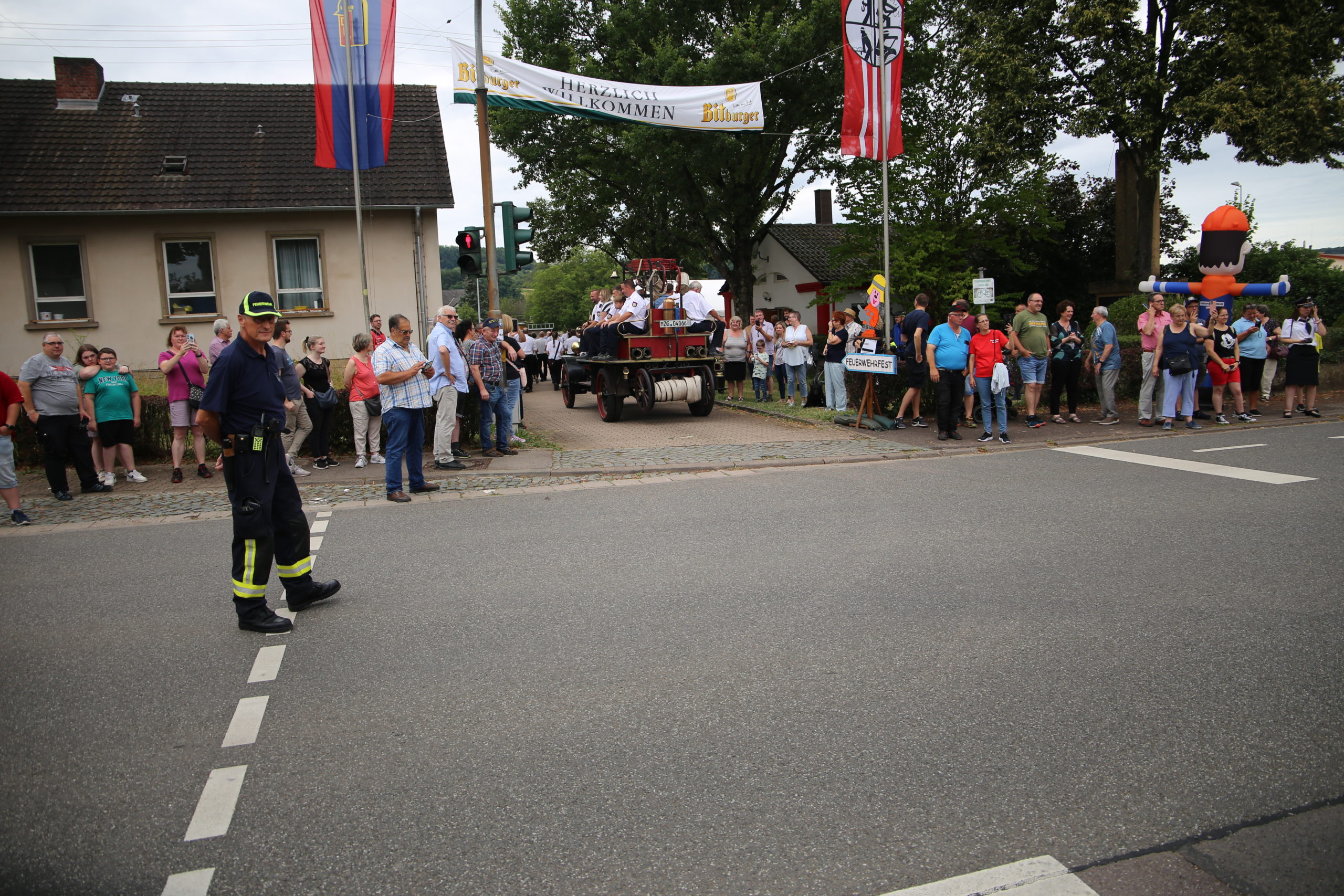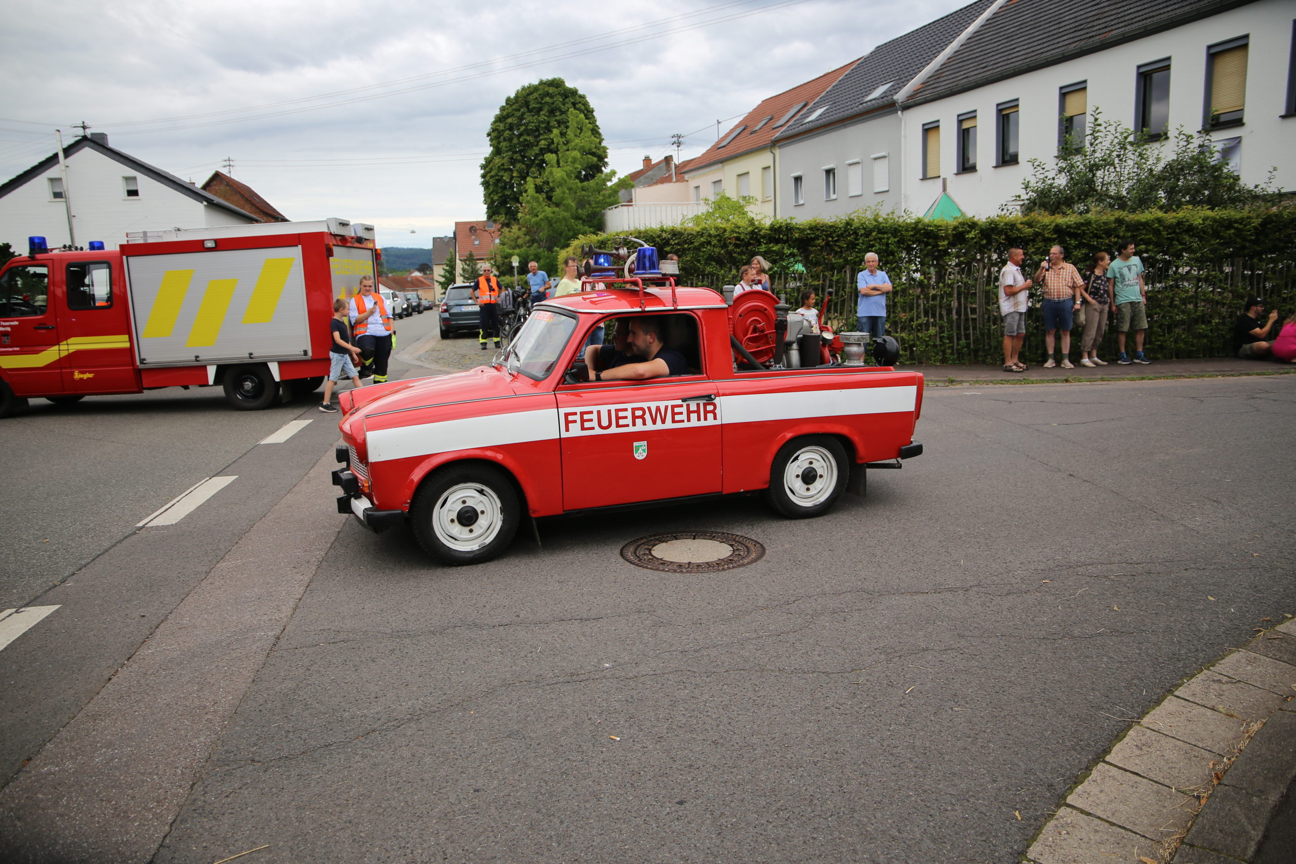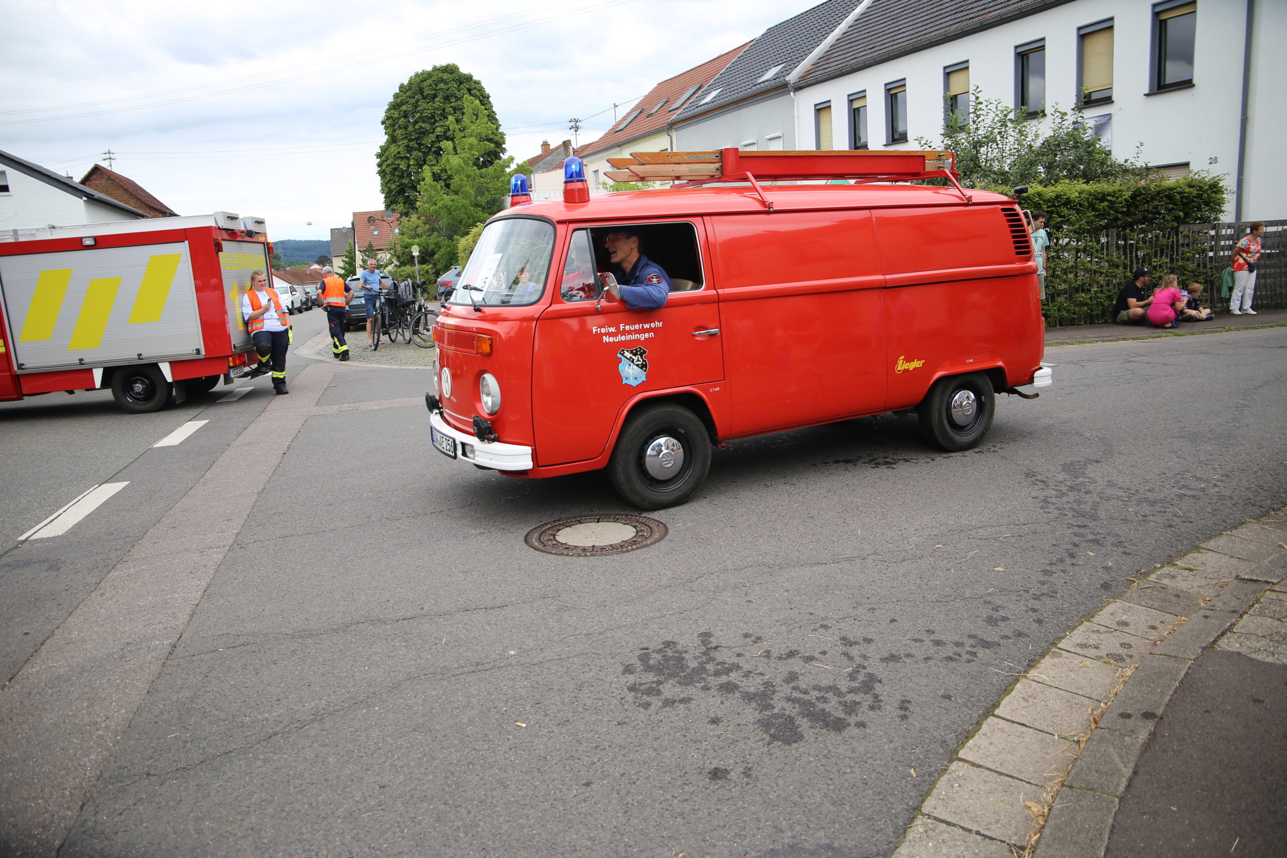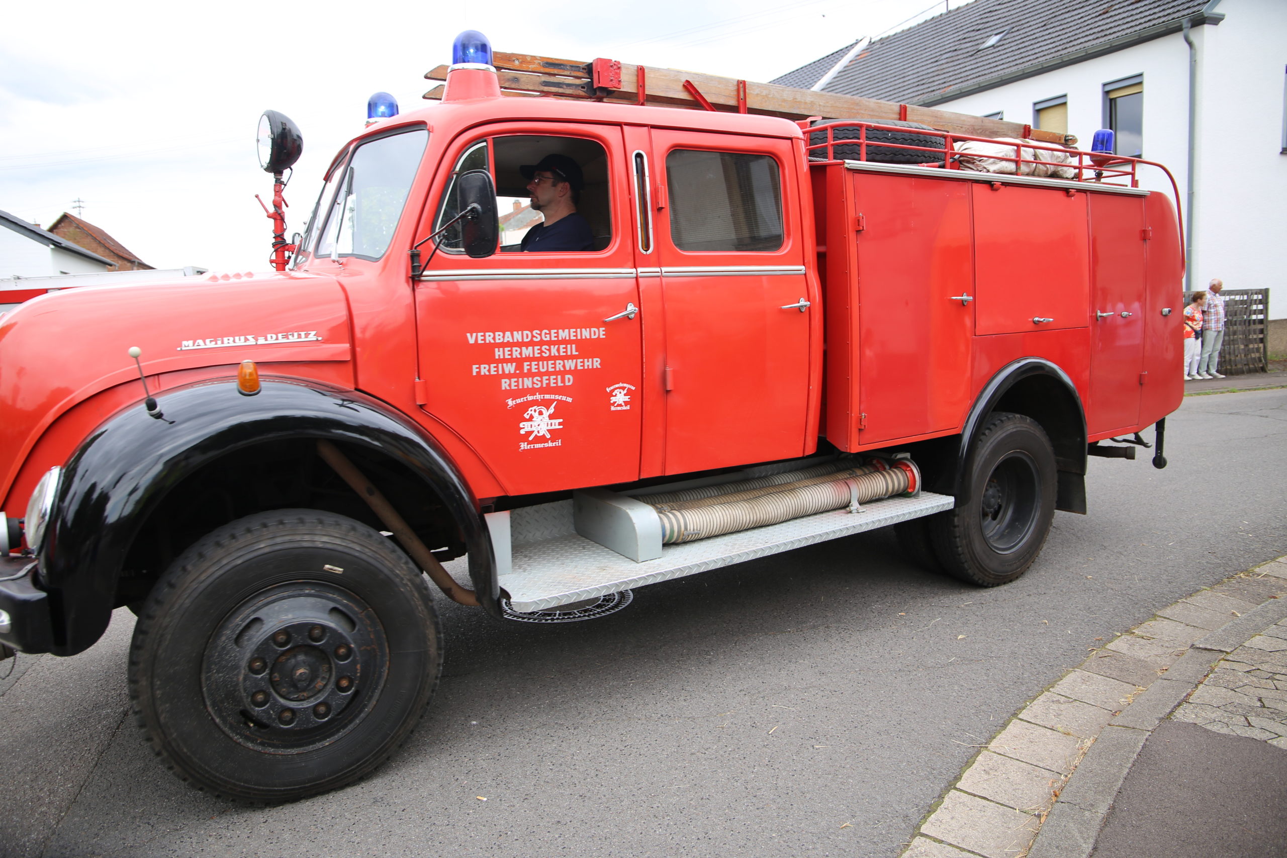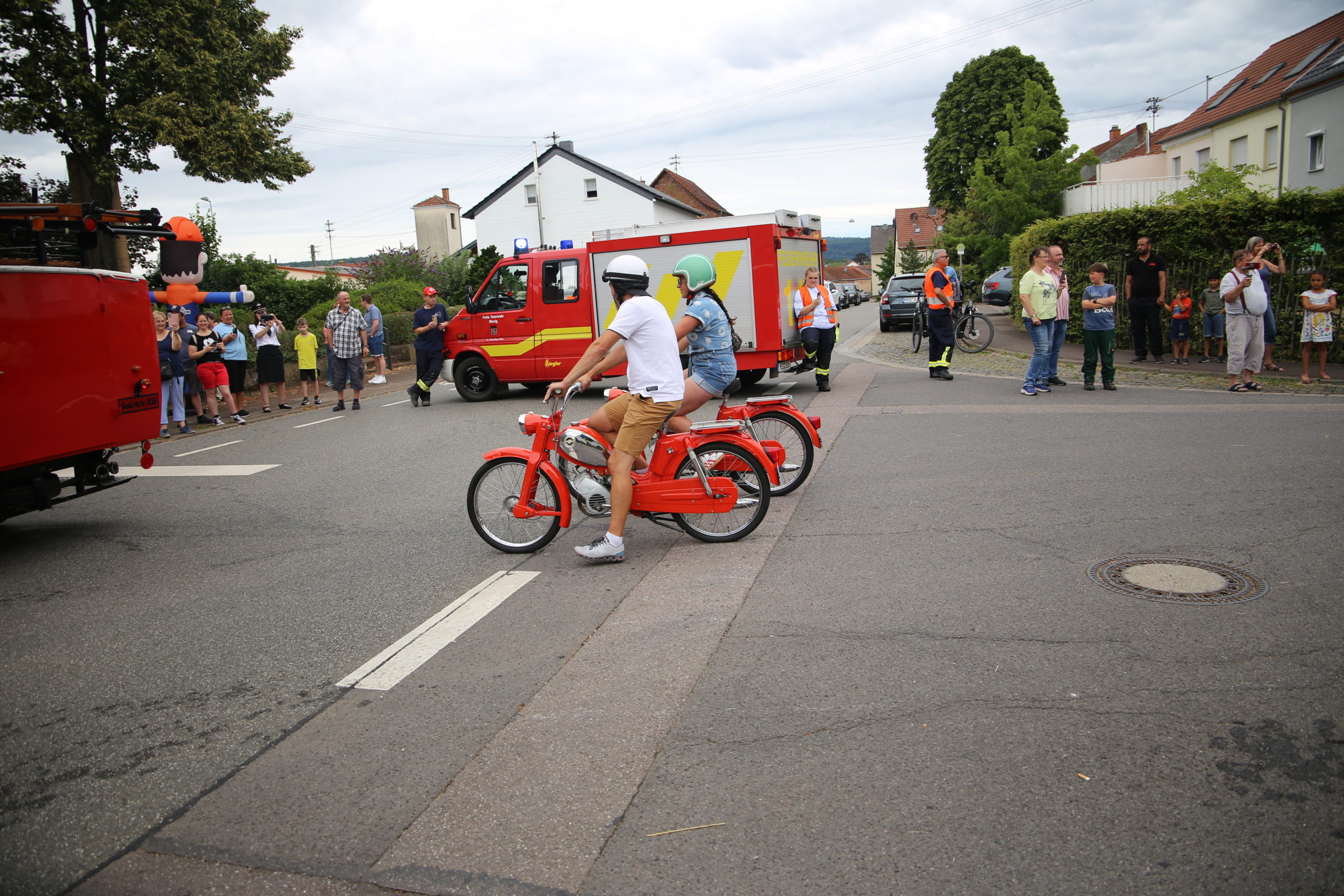 Zum Highlight am folgenden Sonntagnachmittag fand in der ca. 1300 Einwohnergemeinde Ballern die historische Oltimerparade durch Ballern mit zahlreichen Teilnehmer aus der Großregion und dem benachbarten Rheinland-Pfalz statt. Besonderes Aufsehen errangen die Zuschauer der 112 Jahre DELAHAYE AP 59 aus Privatbesitz. Ihr Einsatzgebiet war in Grenoble und stand viele Jahre in einer Garage in der Nähe von Paris. Mit viel Liebe und Arrangement wurde das Löschfahrzeug mit der Alterswehr und dem Löschbezirk Fitten restauriert. Auch die legendäre und liebevoll genannte „Santa Maria“; der Feuerwehr Saarburg -Löschzug Mitte- fuhr mit ihren 75 Jahren auf dem Rad nach Ballern. Auch Vertreter des Feuerwehr Erlebnis Museum aus Hermeskeil nahm mit einigen Oldtimern teil.( Hinweis: Am 6.9.24 findet in Hermeskeil das Oltimertreffen der Blaulichtfamilie und Nutzfahrzeuge statt) Zum Abschluss der Parade fand die Siegerehrung der Oltimer mit ihren Fahrer im Festzelt durch Übergabe von Präsenten statt.