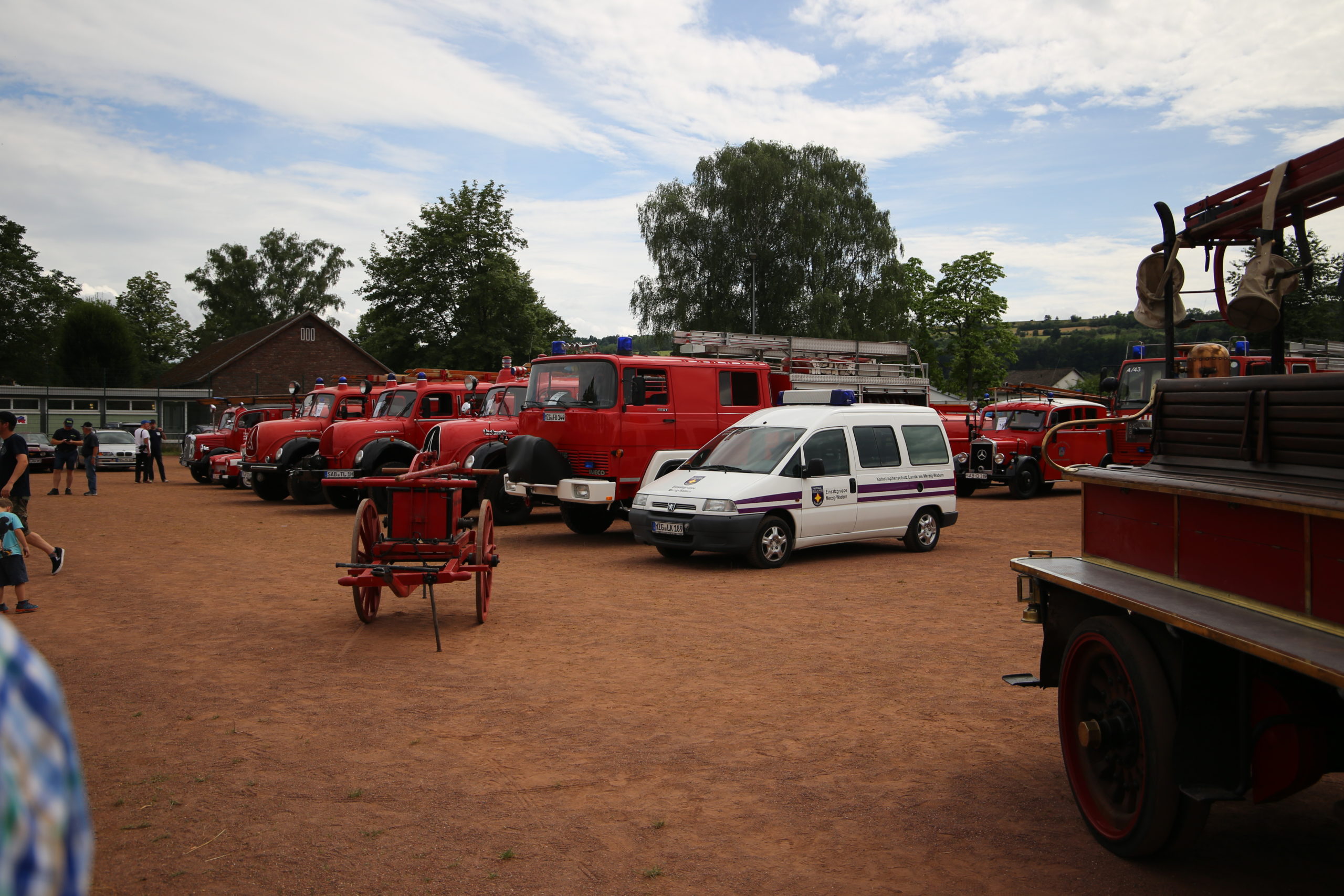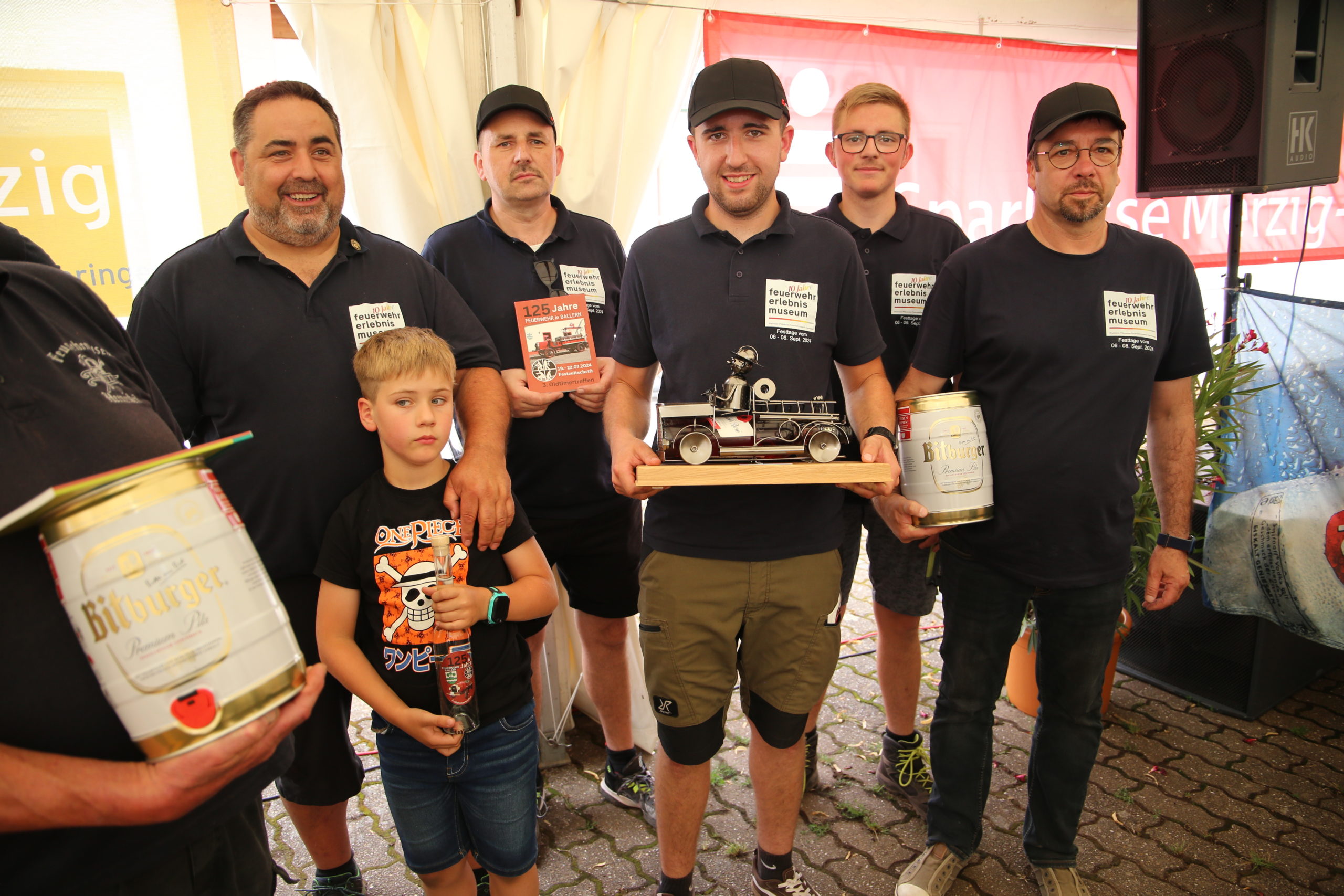 Zum Highlight am folgenden Sonntagnachmittag fand in der ca. 1300 Einwohnergemeinde Ballern die historische Oltimerparade durch Ballern mit zahlreichen Teilnehmer aus der Großregion und dem benachbarten Rheinland-Pfalz statt. Besonderes Aufsehen errangen die Zuschauer der 112 Jahre DELAHAYE AP 59 aus Privatbesitz. Ihr Einsatzgebiet war in Grenoble und stand viele Jahre in einer Garage in der Nähe von Paris. Mit viel Liebe und Arrangement wurde das Löschfahrzeug mit der Alterswehr und dem Löschbezirk Fitten restauriert. Auch die legendäre und liebevoll genannte „Santa Maria“; der Feuerwehr Saarburg -Löschzug Mitte- fuhr mit ihren 75 Jahren auf dem Rad nach Ballern. Auch Vertreter des Feuerwehr Erlebnis Museum aus Hermeskeil nahm mit einigen Oldtimern teil.( Hinweis: Am 6.9.24 findet in Hermeskeil das Oltimertreffen der Blaulichtfamilie und Nutzfahrzeuge statt) Zum Abschluss der Parade fand die Siegerehrung der Oltimer mit ihren Fahrer im Festzelt durch Übergabe von Präsenten statt.