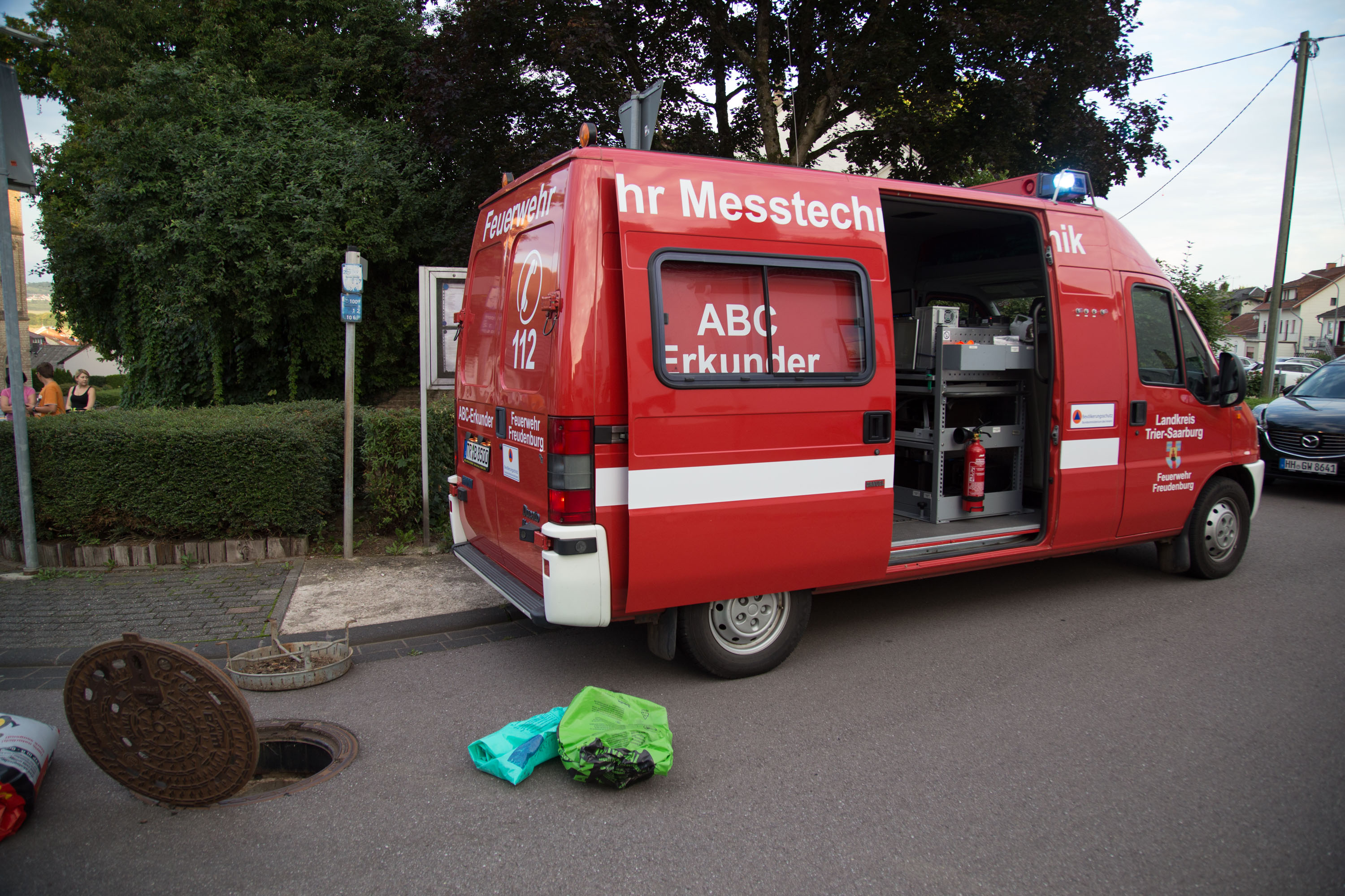 Im Einsatz waren die Wehren aus Kirf, Freudenburg, sowie als Gefahrstoffeinheiten der Gerätewagen Gefahrstoff aus Saarburg-Beurig und die ABC-Erkunder aus Freudenburg mit Insgesamt 25 Feuerwehrleuten.