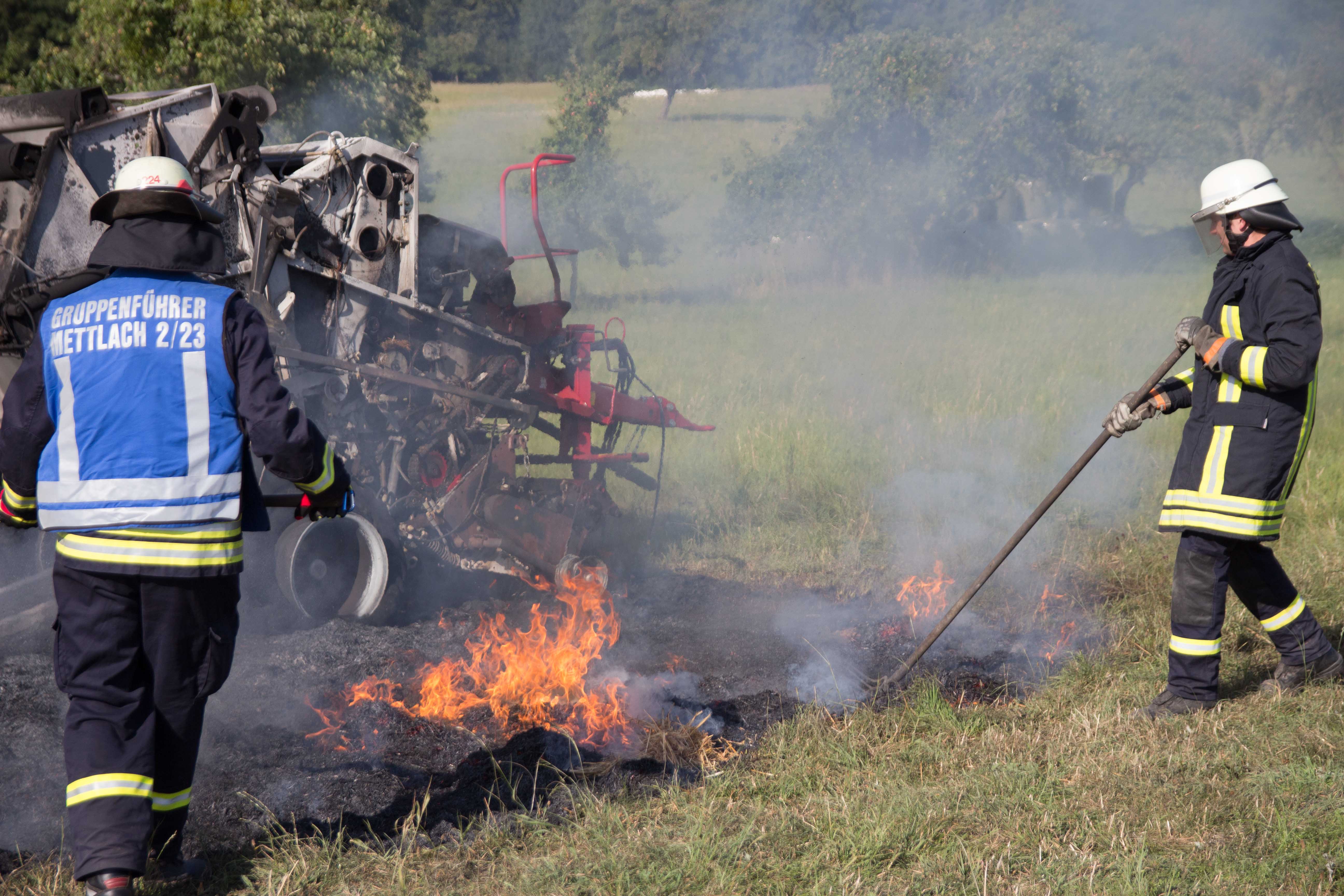 Neue Rundballenpresse wird ein Raub der Flammen.