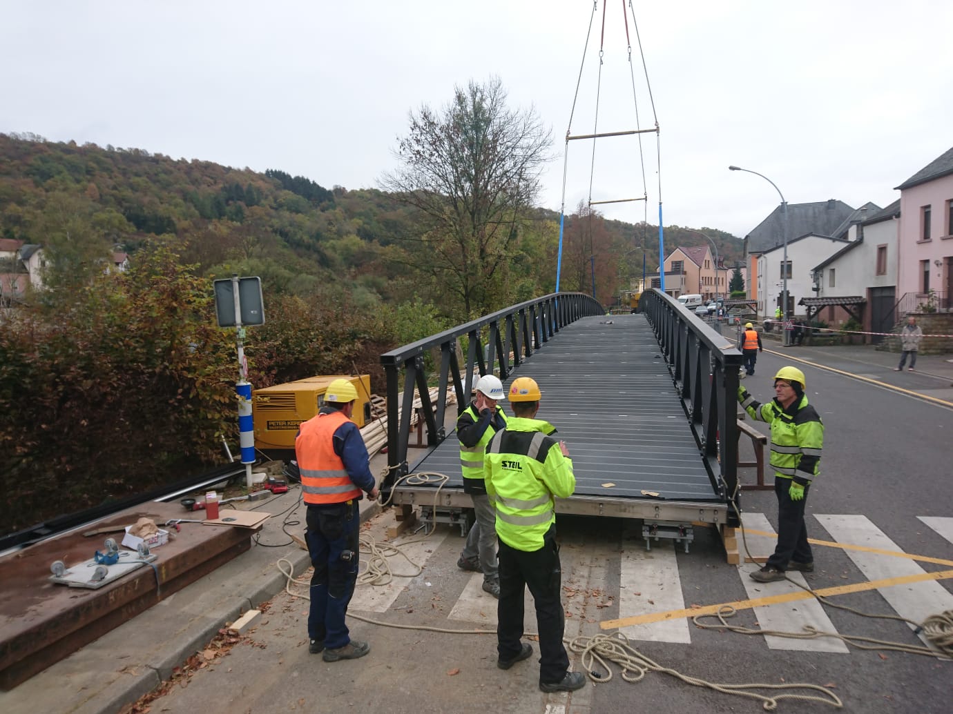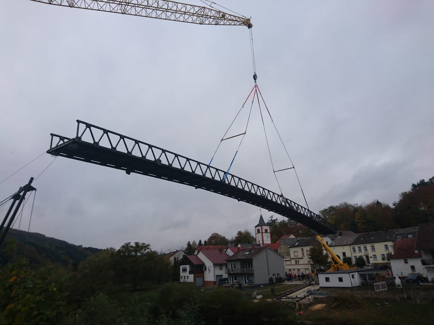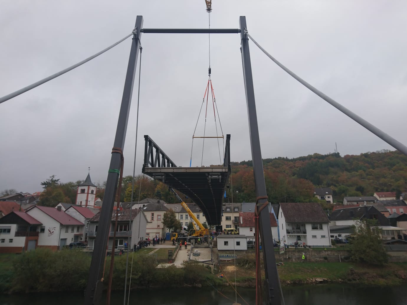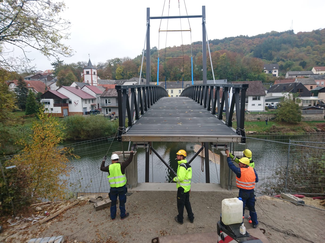 Moersdorf/Metzdorf. Am Mittwochvormittag starteten Montagearbeiten für die neue Radfahrer- und Fußgängerbrücke über die Sauer bei Metzdorf. Die Brücke verbindet den Ort mit dem luxemburgischem Moersdorf.