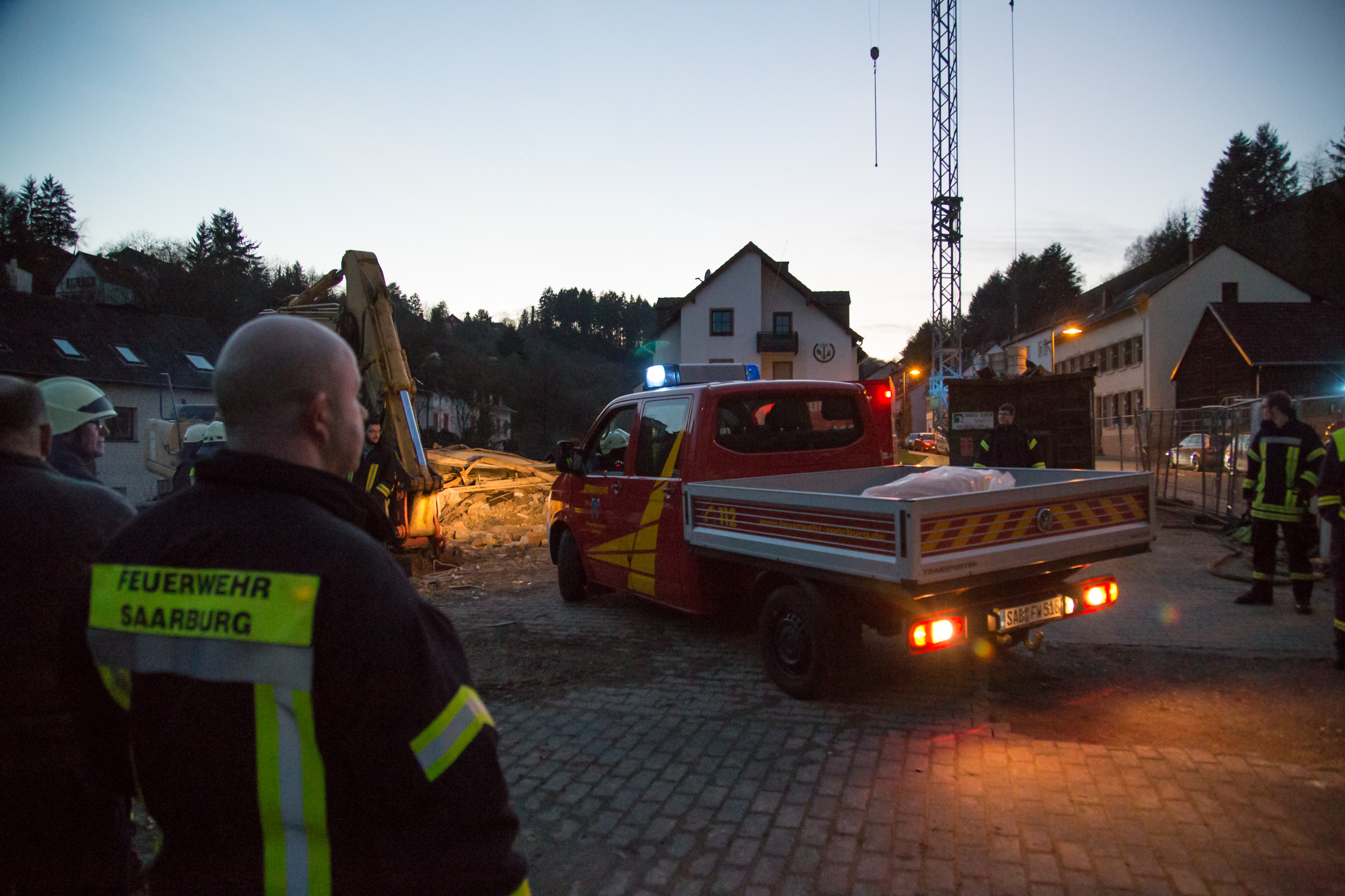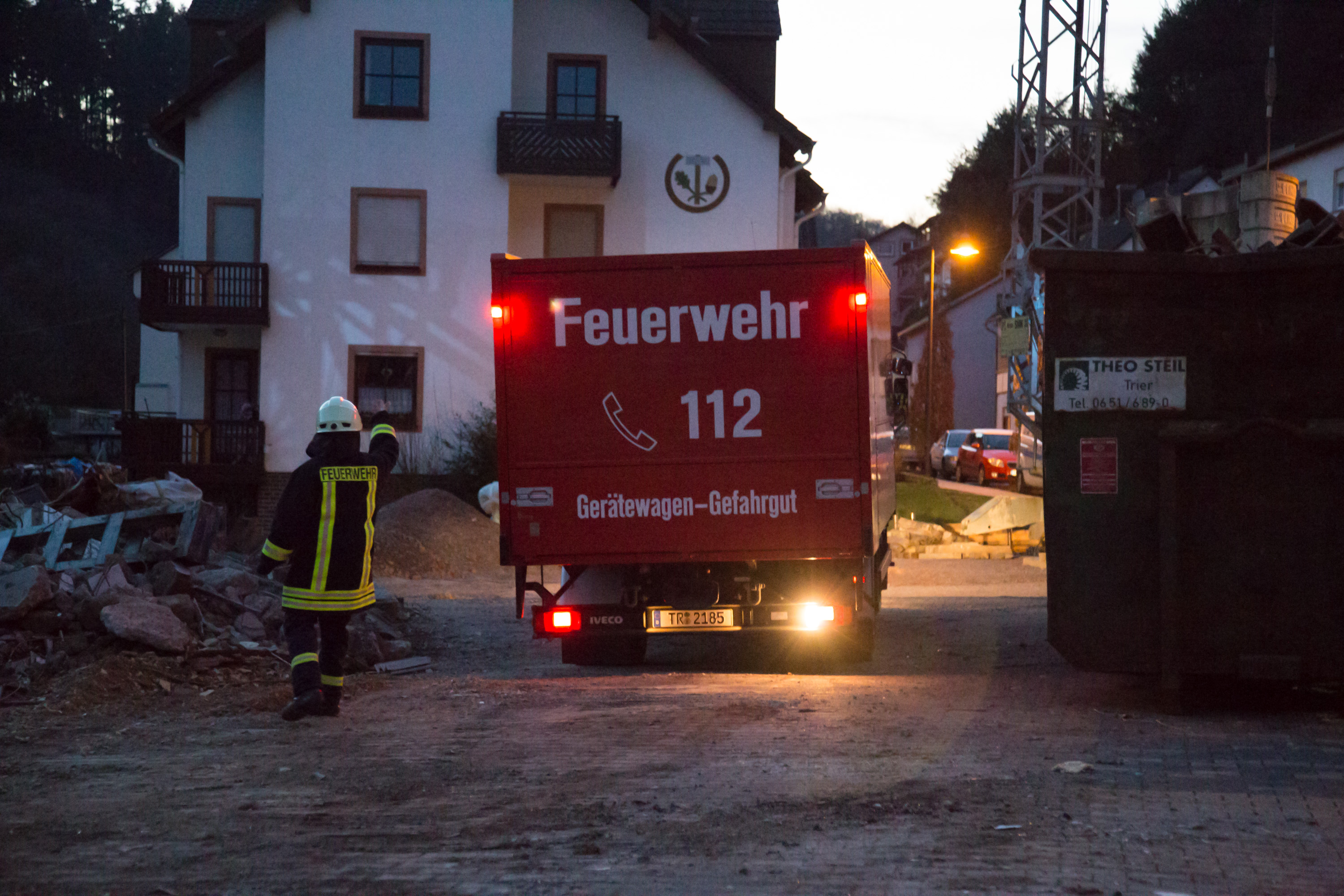 Saarburg. Am Freitagabend wurde die Feuerwehr zum ehemaligen Betriebsgelände des Autohaus Volkmann in Saarburg alarmiert. In der Straße „Kunoweiher“ wird derzeit das alte Gebäude des ehemaligen Autohauses abgerissen. Vermutlich floss Öl aus der Baustelle in den angrenzenden Lohbach.