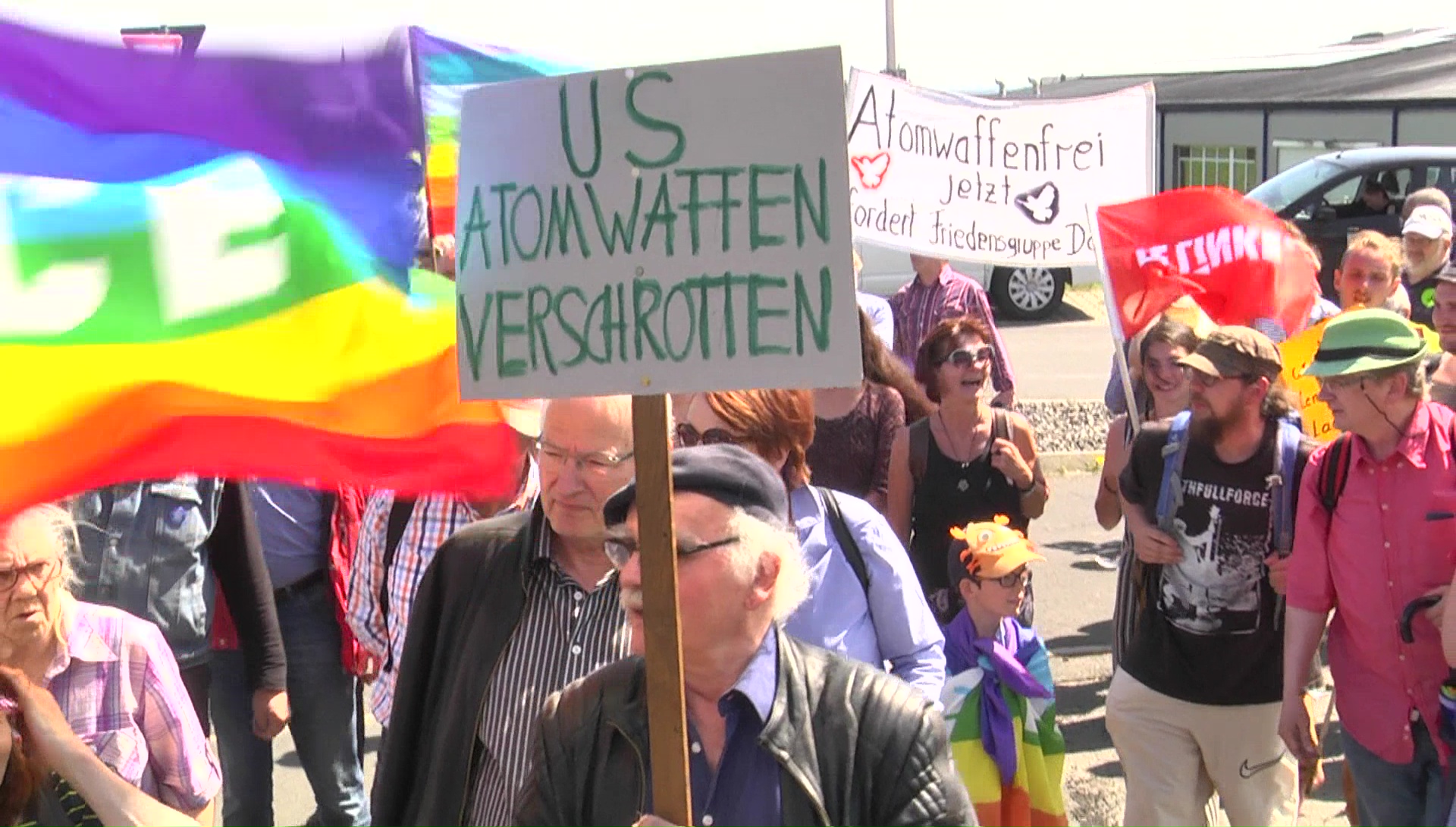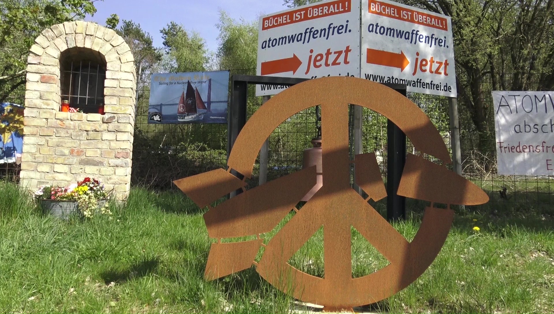 Frieden und Abrüstung sind die Ziele der Demonstranten vor dem Luftwaffenstützpunkt im Landkreis Cochem-Zell.