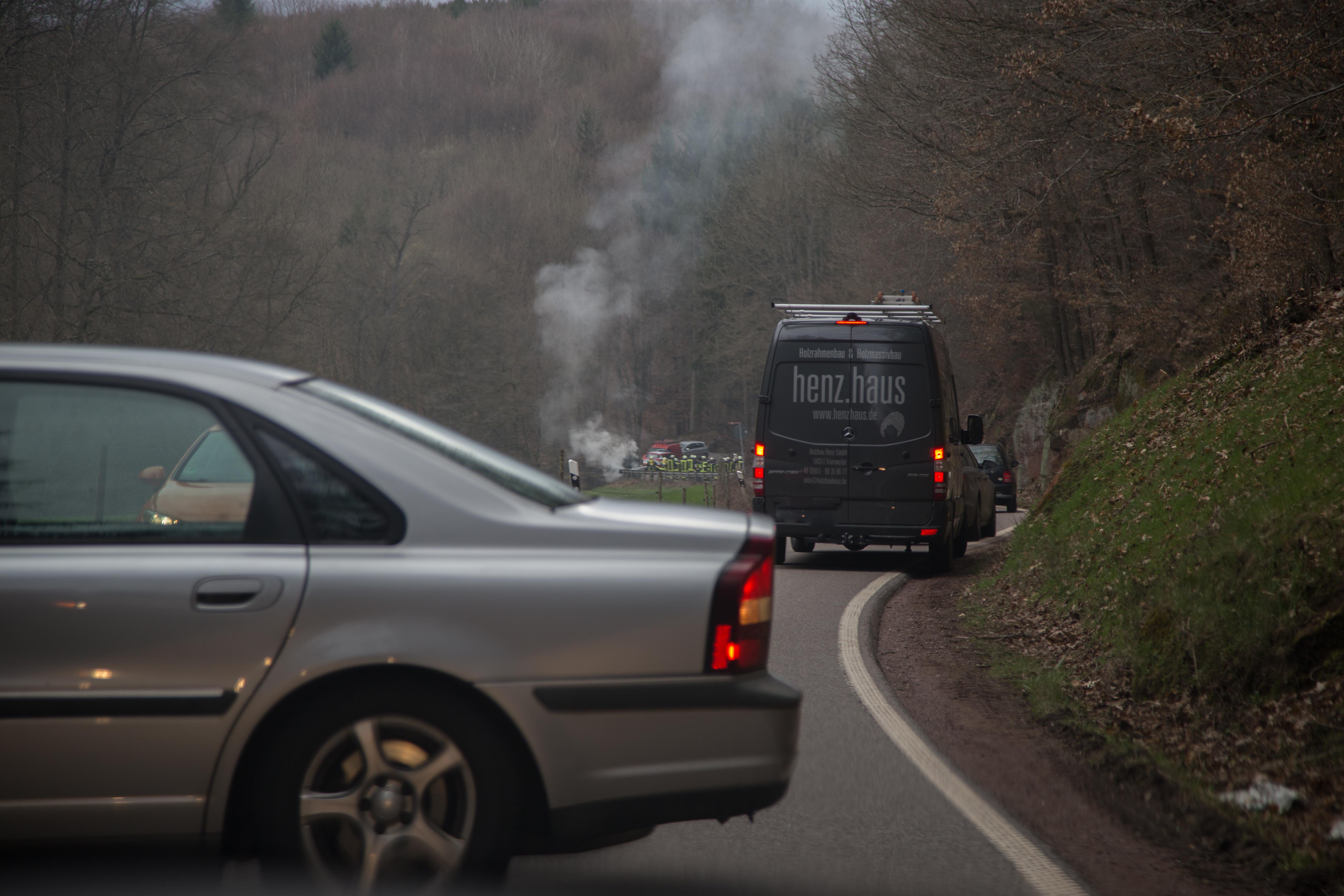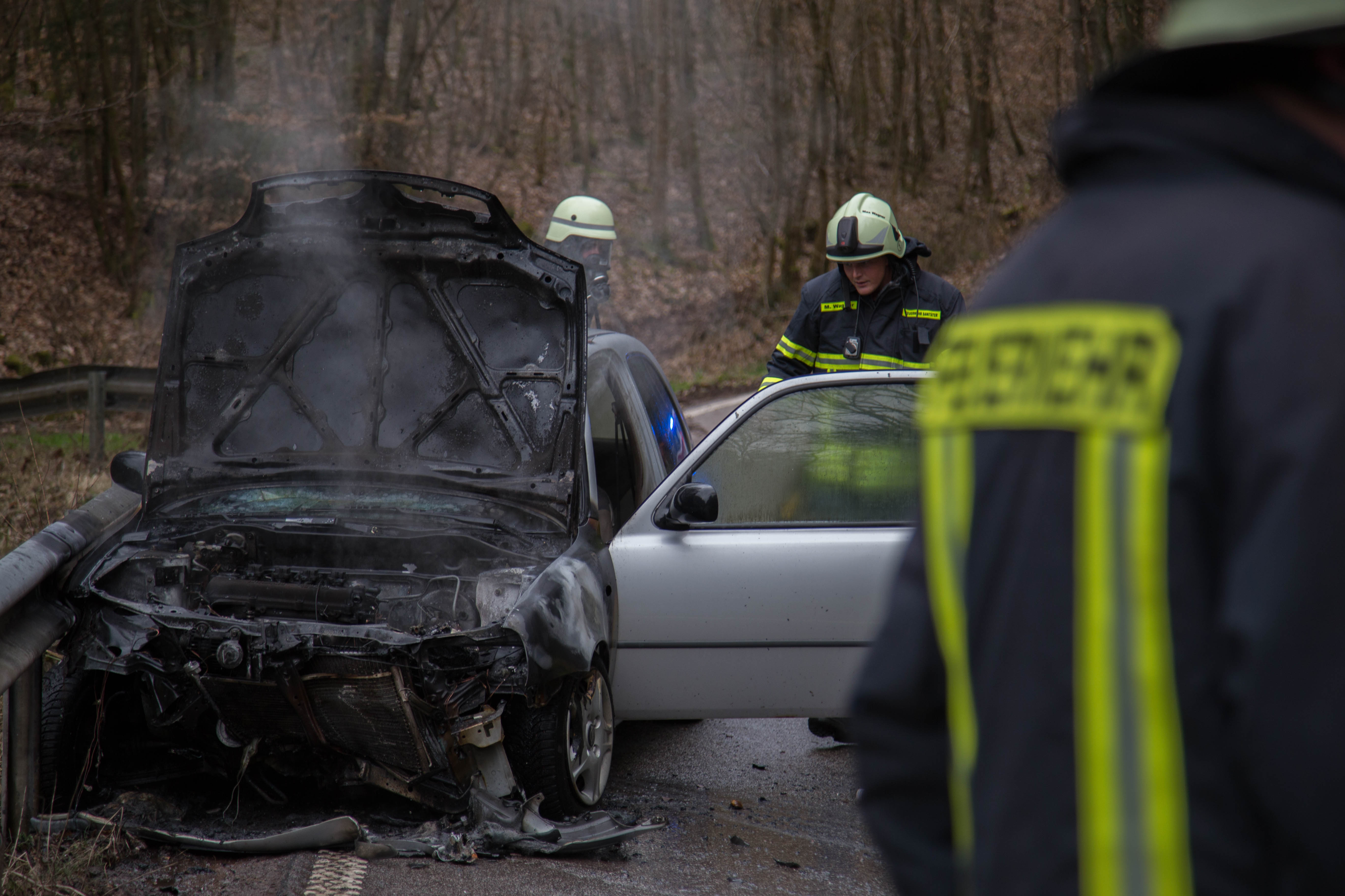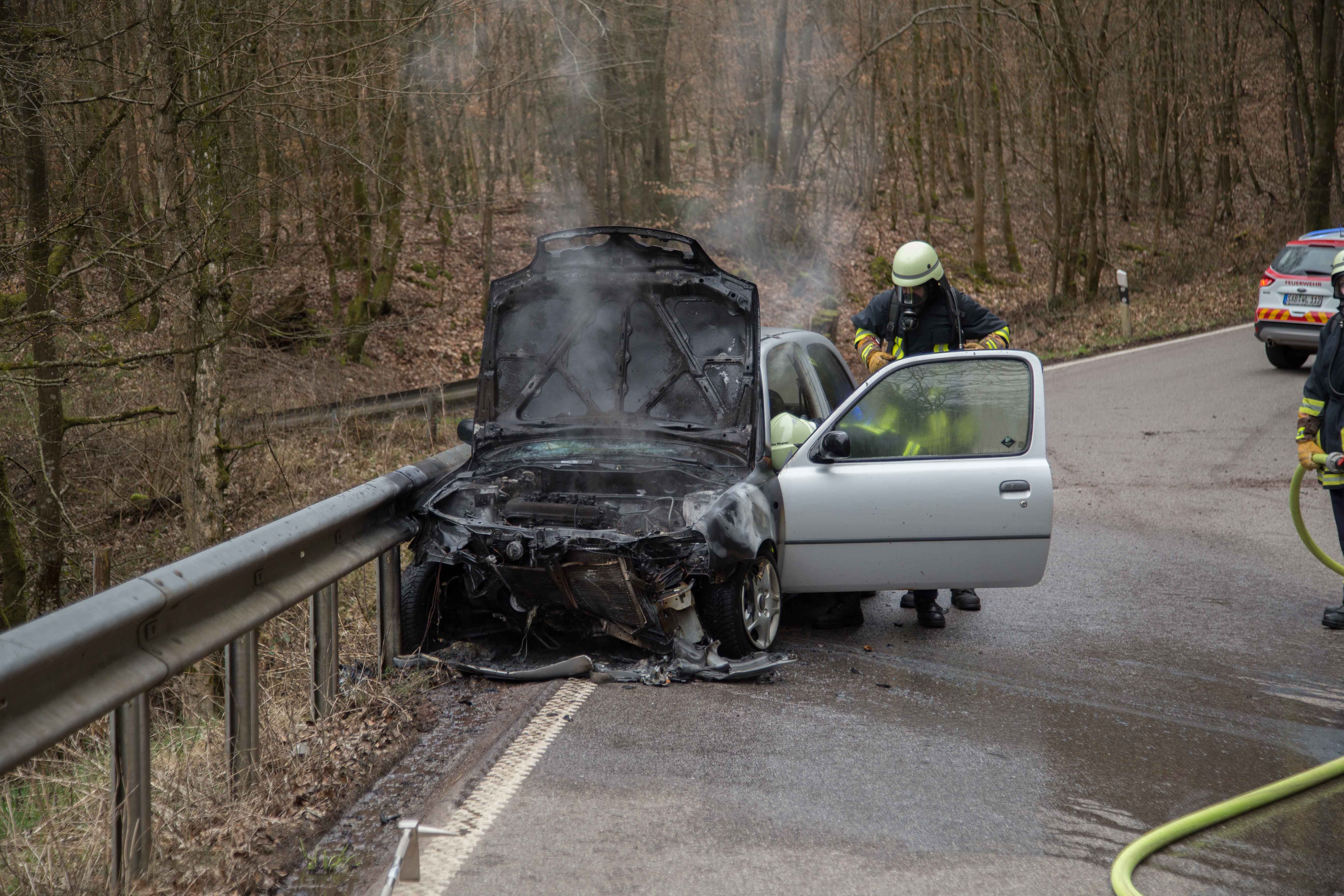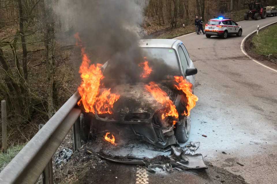 PKW gerät nach Unfall in Brand