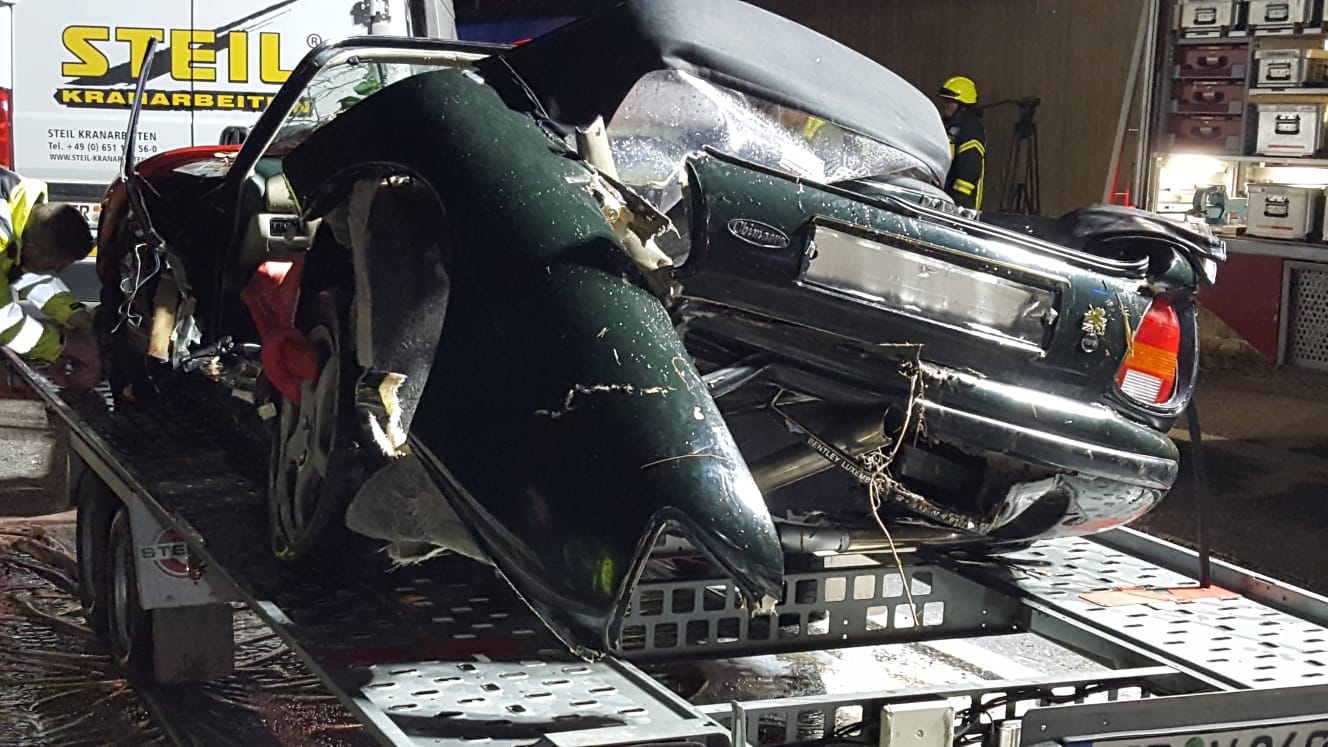 Ein Oldtimer befuhr die B53 von Mehring in Richtung Schweich. Das Fahrzeug ist rund 50 Meter hinter der Longuicher Brücke die Böschung hinab gestürzt und in der Mosel versunken. Eine Personen musste vor Ort reanimiert werden, die Person wurde mit schwerem Verletzungen in ein Krankenhaus transportiert. Die verletzte Person wurde durch einen Feuerwehrmann und einen Strömungsretter der DLRG Schweich gerettet.