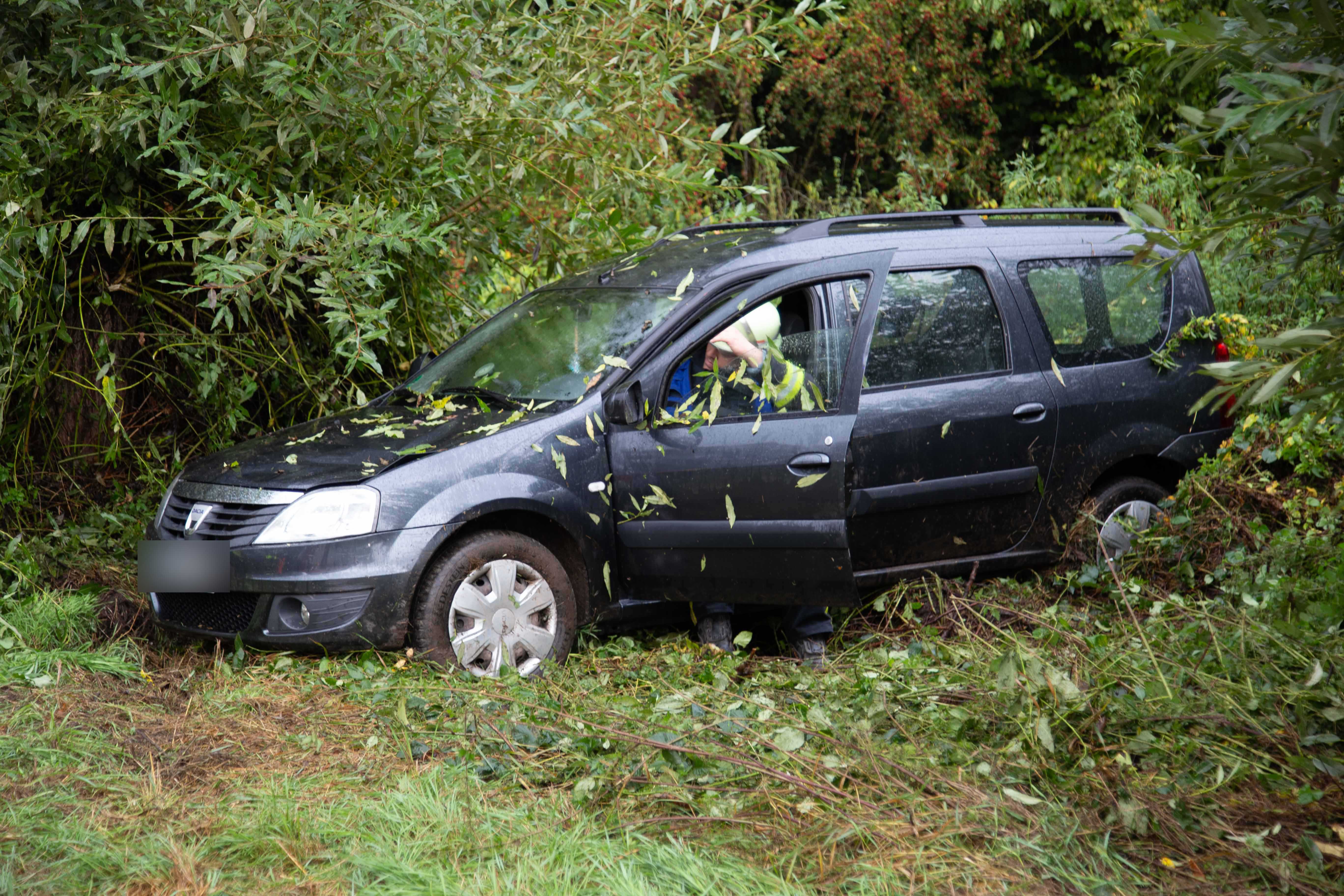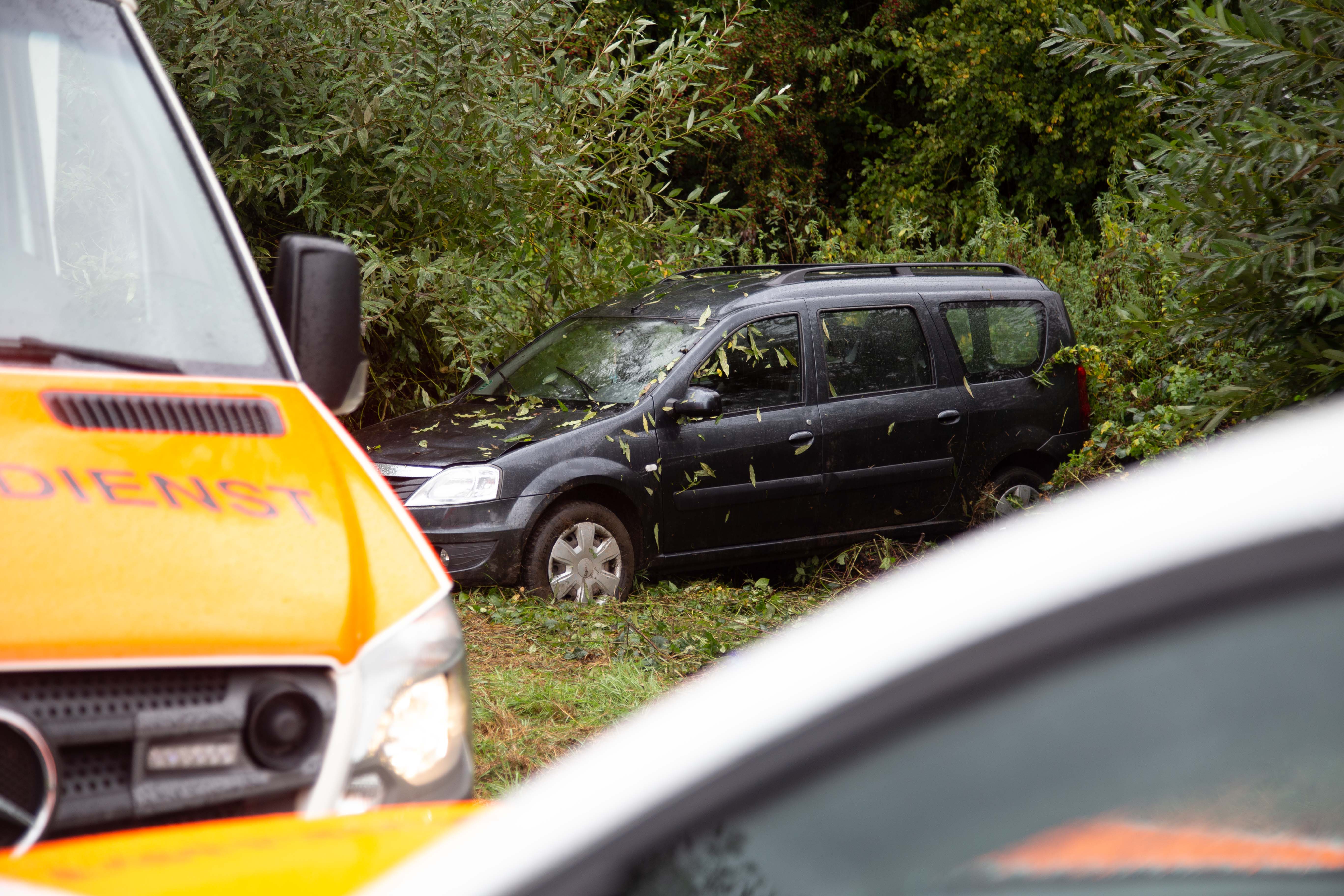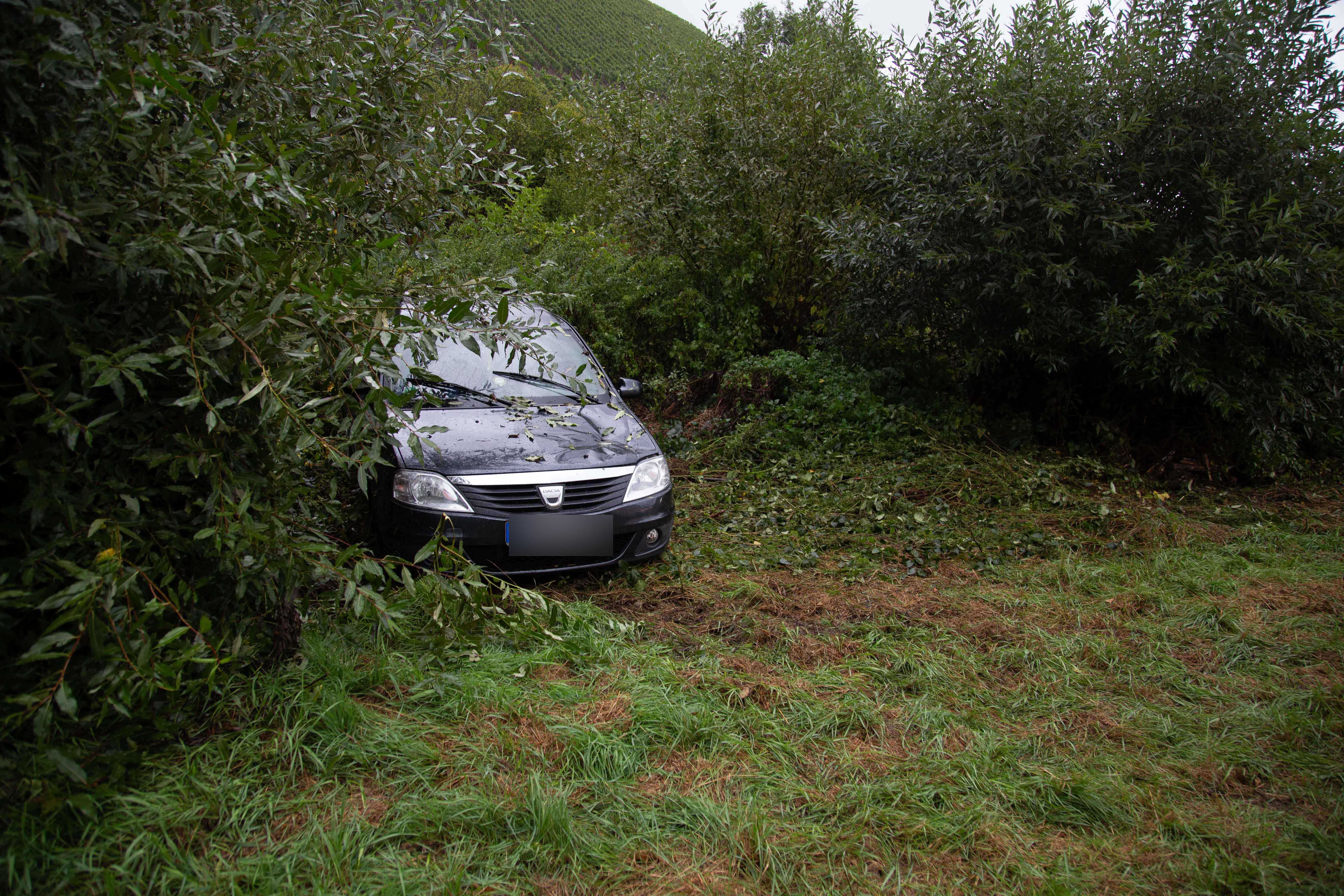 Während des Unfallzeitpunkts war das Unwetter mit Wind und Regen voll im Gange. Das Fahrzeug schleuderte in das angrenzende Gebüsch. Die Fahrerin wurde schwer verletzt im Fahrzeug eingeklemmt. Sie musste von der Feuerwehr befreit werden.