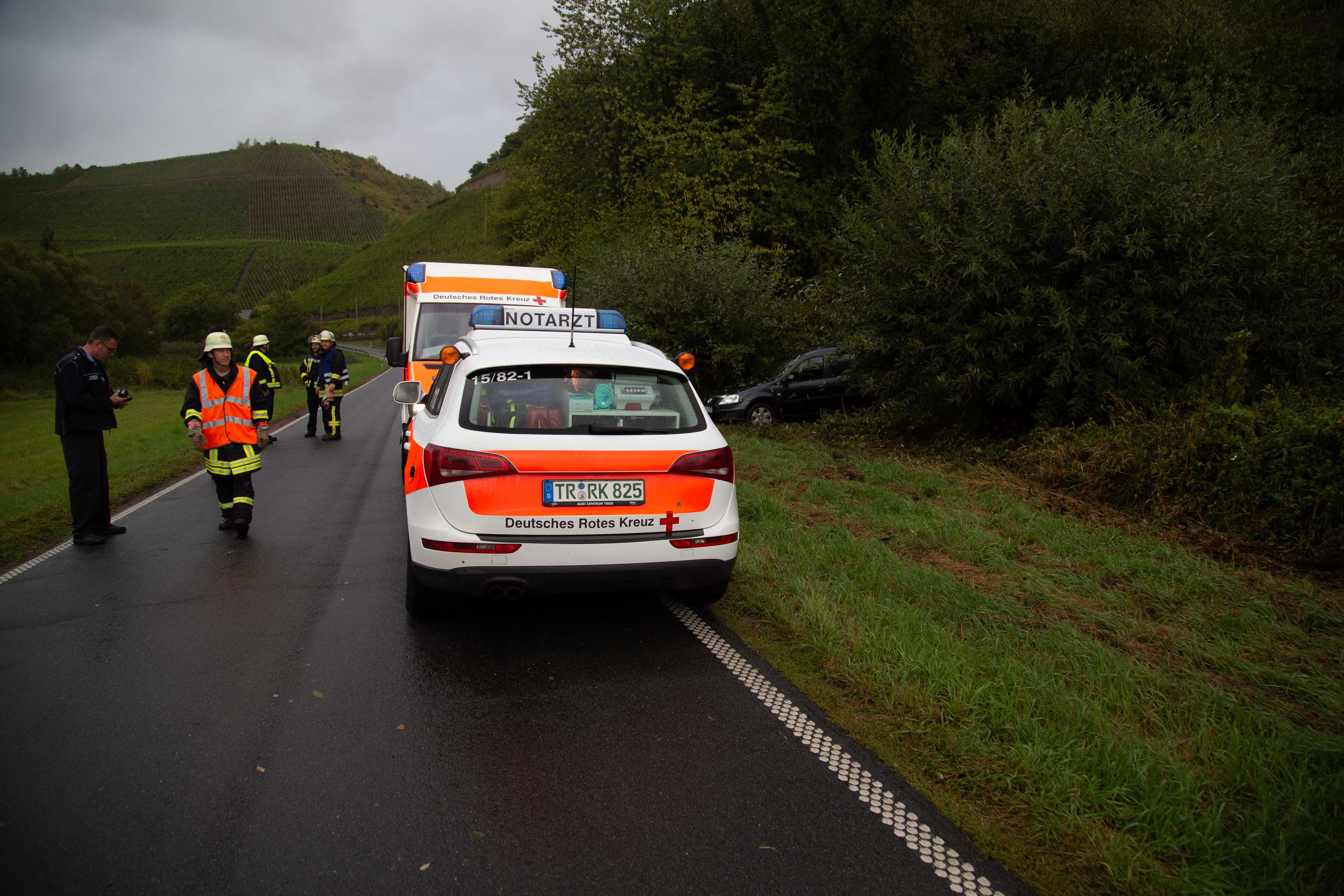 Hier im Einsatz waren die Feuerwehren aus Konz und Wiltingen. Ein Rettungswagen und der Notarzt aus Saarburg, sowie die Polizei Saarburg und die Straßenmeisterei.