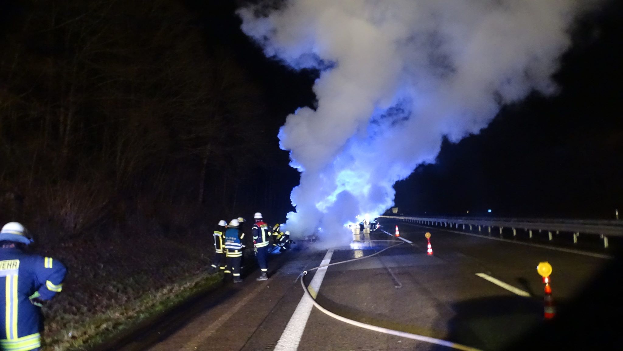 PKW Vollbrand am Silvesterabend auf der A 1 bei Salmtal
