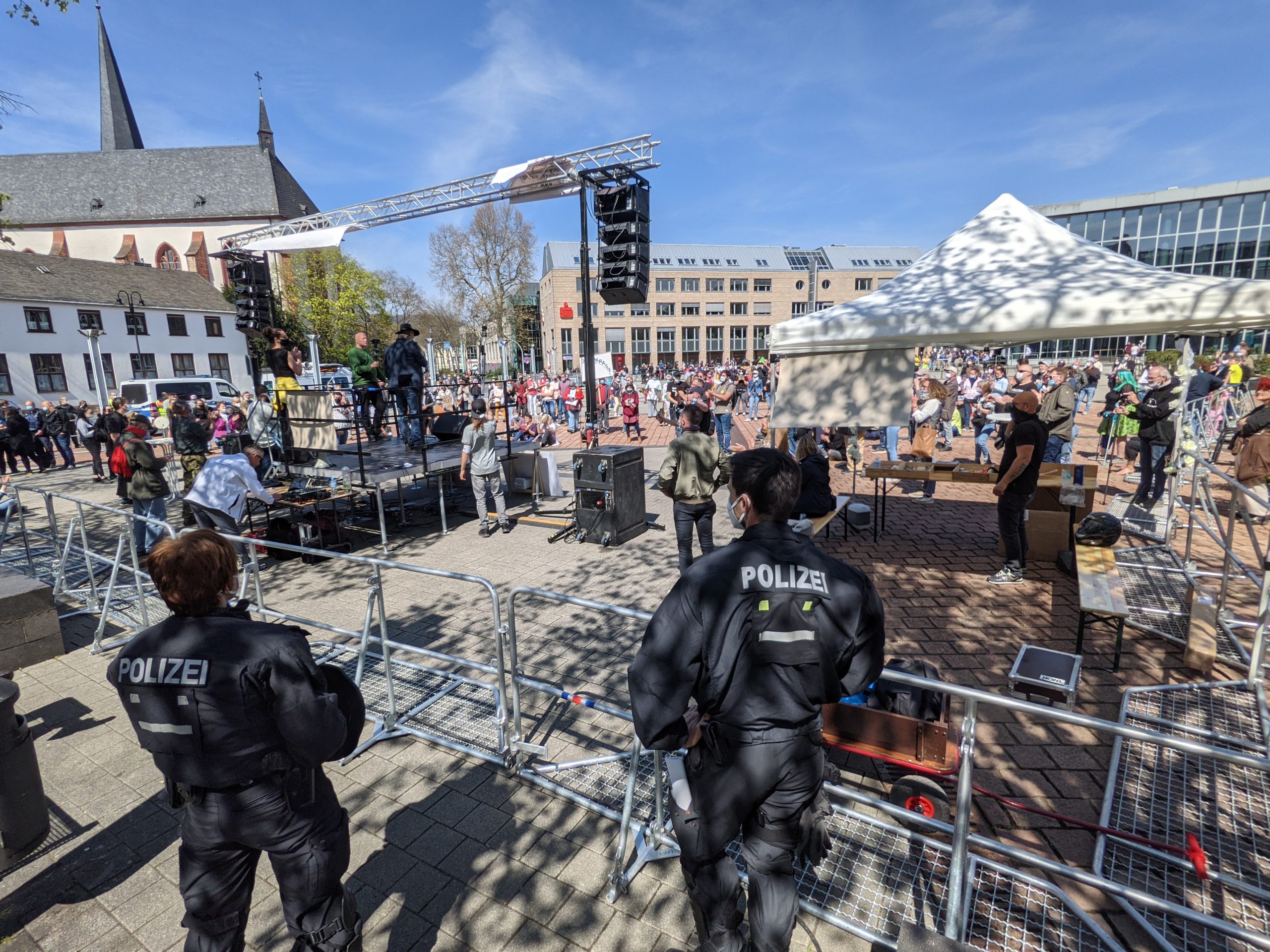 Während der gesamten Veranstaltung kontrollierten Ordnungsamt und Polizei in gemeinsamen Teams die Auflagen, insbesondere die Masken- und Abstandspflicht sowie von einigen Teilnehmern mitgeführte Befreiungsatteste von der Maskenpflicht. Es wurden viele Gespräche geführt und einige wenige Anzeigen gefertigt.
