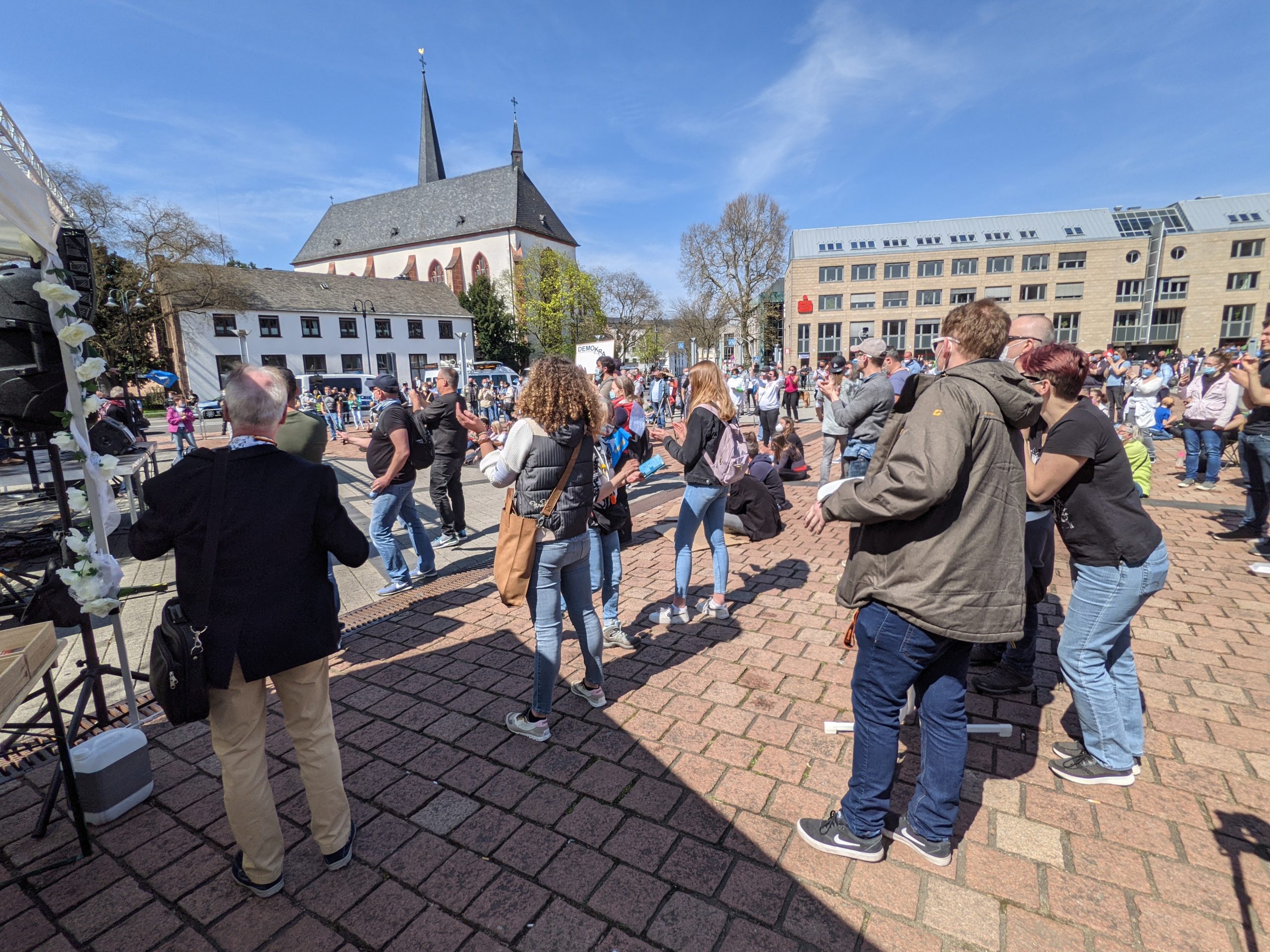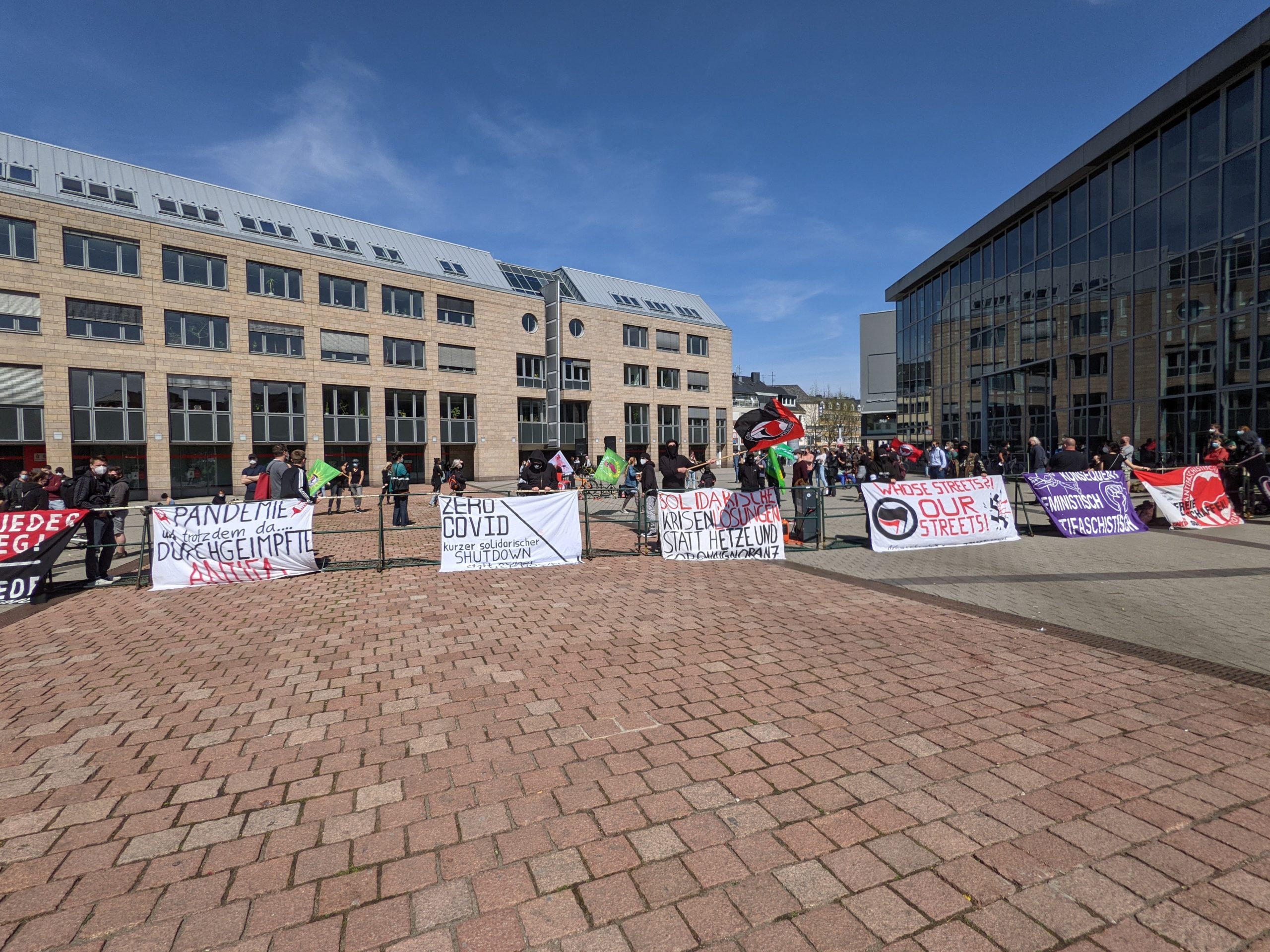 Gegner der aktuellen Corona-Maßnahmen hatten für 14 Uhr zur Demonstration aufgerufen. Eine entsprechende Gegenveranstaltung wurde von bürgerlich-linken Spektrum angemeldet. Mit starken Polizeikräften wurden die Veranstaltungen durch die Polizei auf Abstand gehalten. Im Vorfeld wurden zahlreiche Teilnehmer aus Kaiserslautern und Homburg erwartet, nachdem die dortigen Versammlungen der Maßnahmenkritiker verboten worden waren.