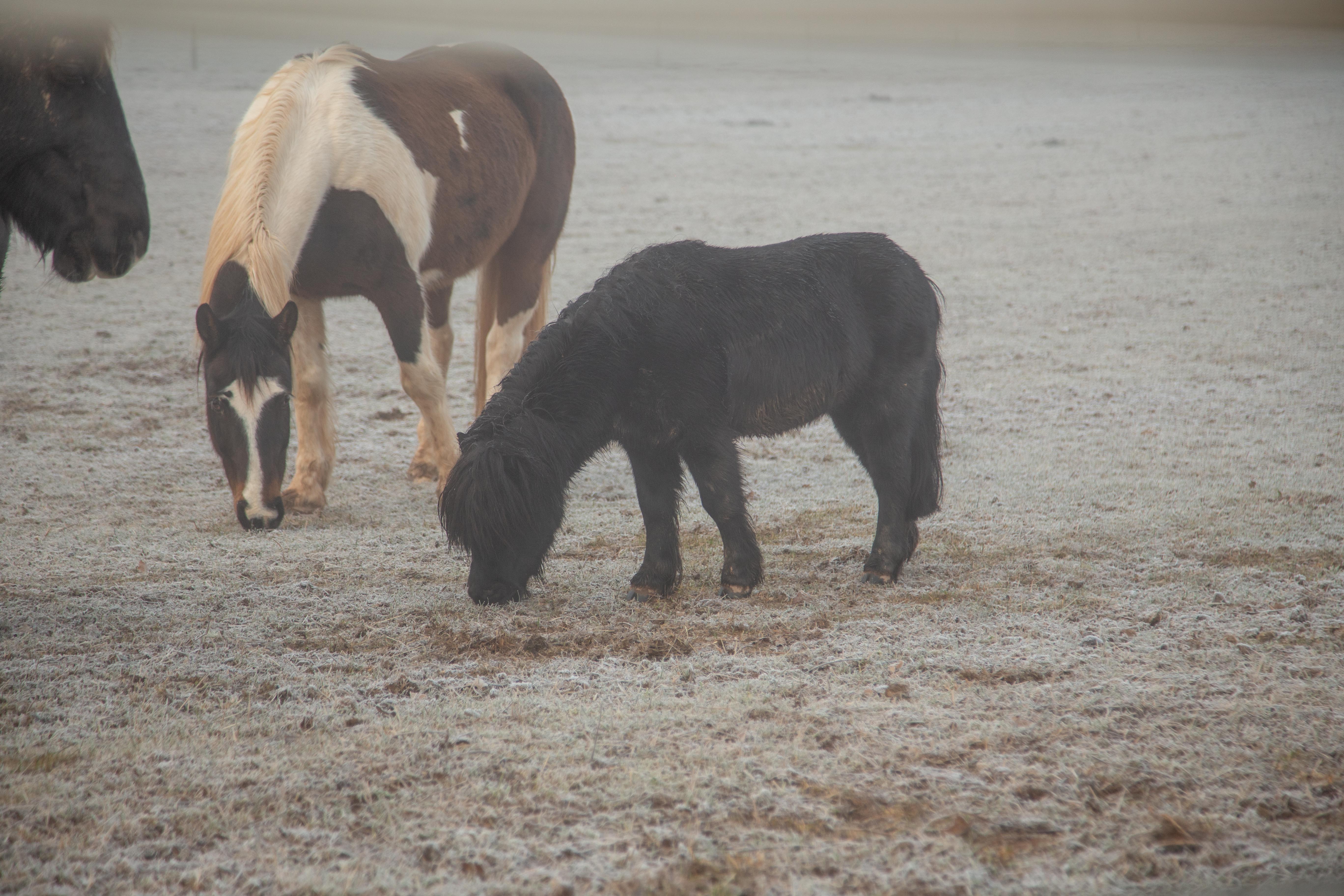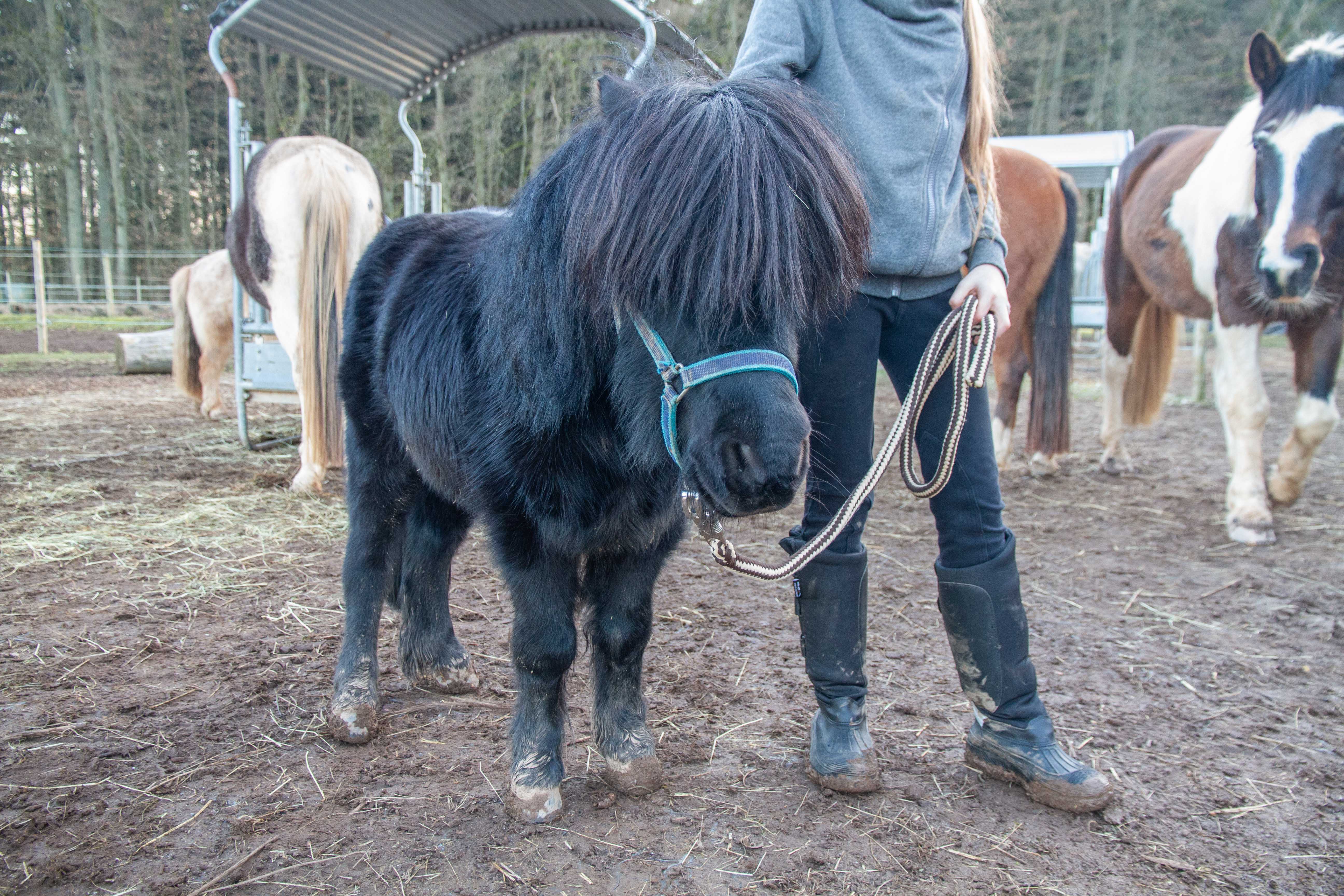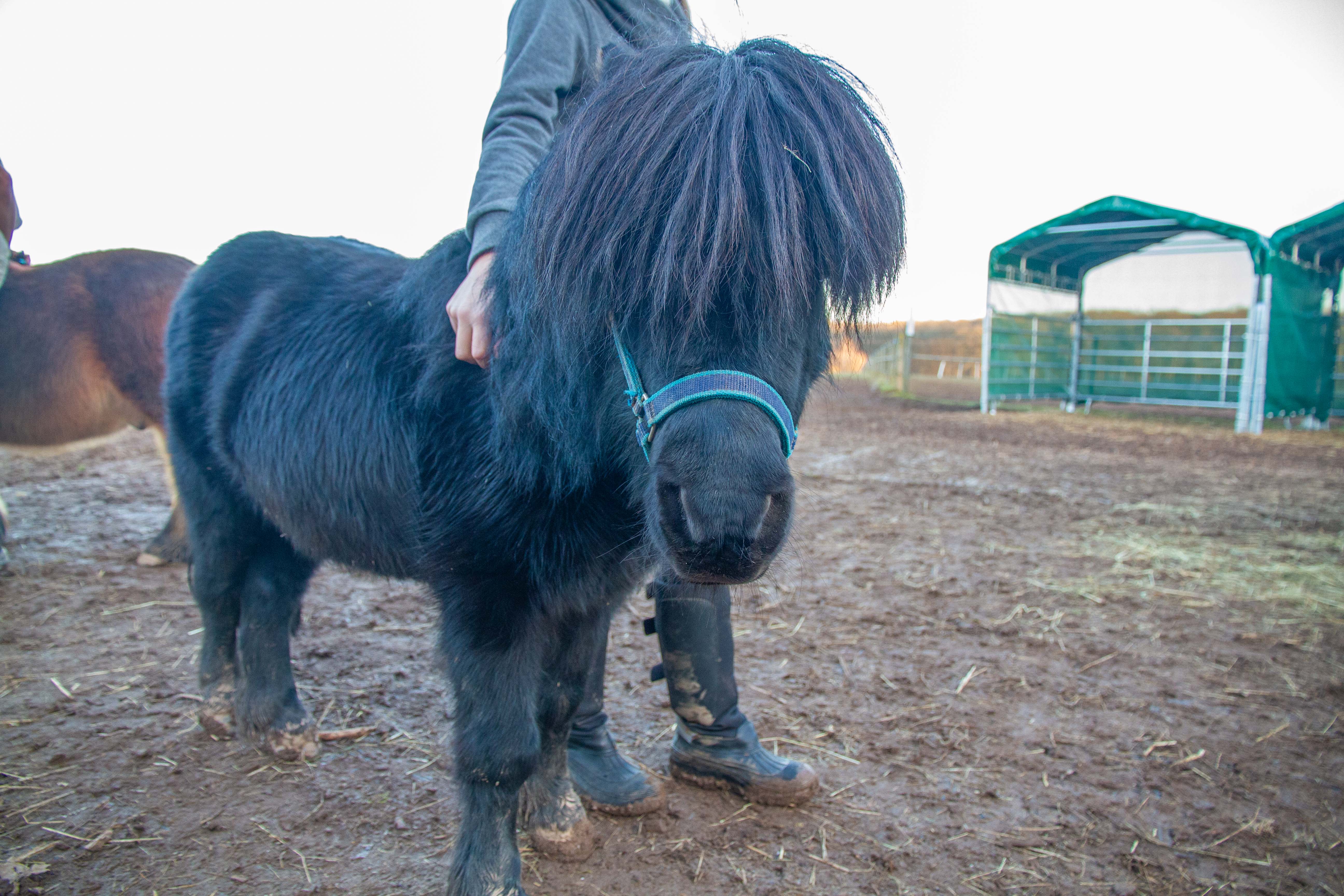 Gegen 09:00 Uhr stellt er fest das zwei schwarze Shetlandpony da sind, allerdings nur eins zu seinen Pferden gehört. Auffällig war, dass der Hengst einen Halfter trug.