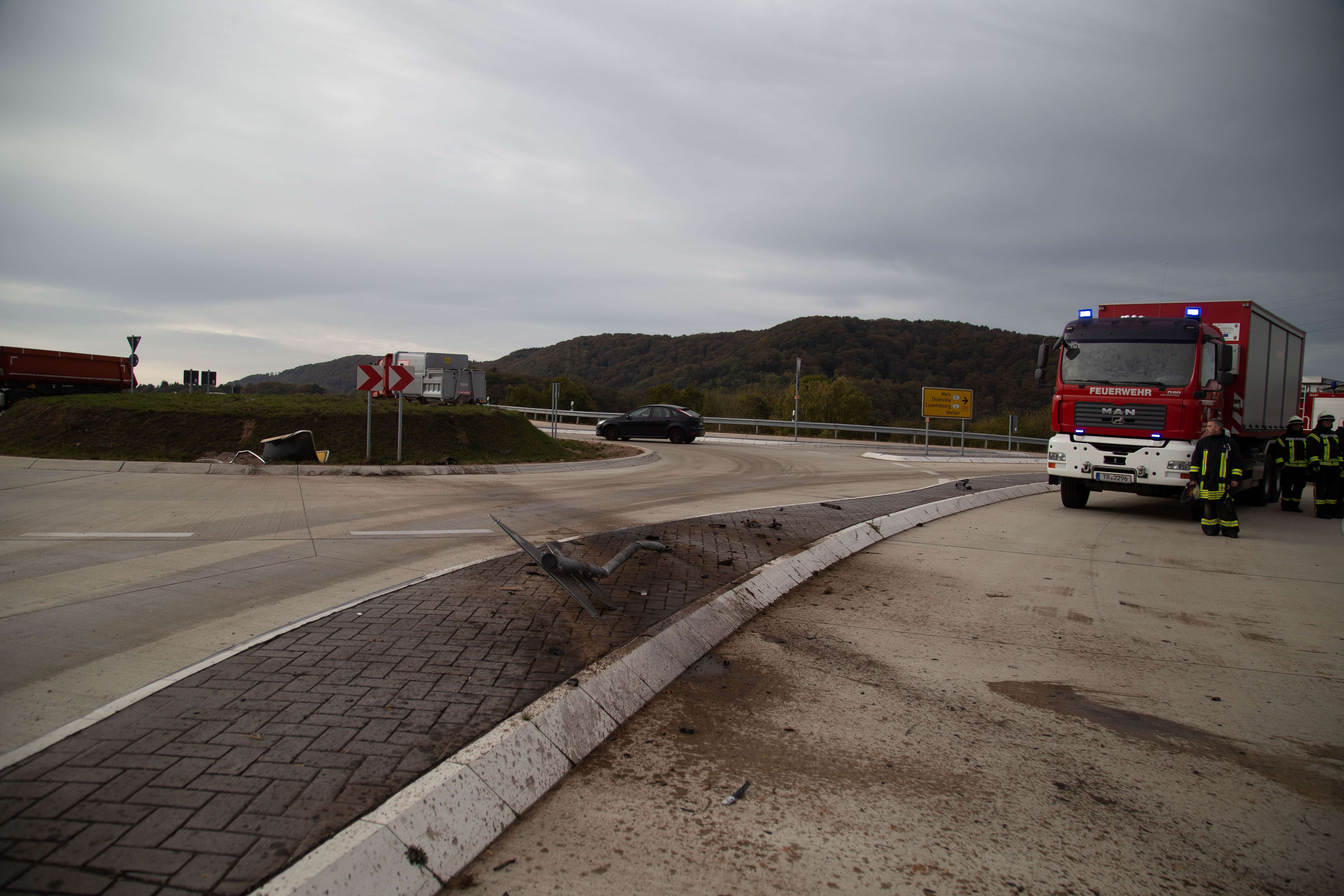 Konz. Gegen 12.30 Uhr kam es auf dem Kreisel der B51 Ortsumgehung Könen zu einem schwerem Unfall. Ein VW Golf mit luxemburger Kennzeichen fuhr mit hoher Geschwindigkeit in den Kreisel von Tawern aus kommend rein.