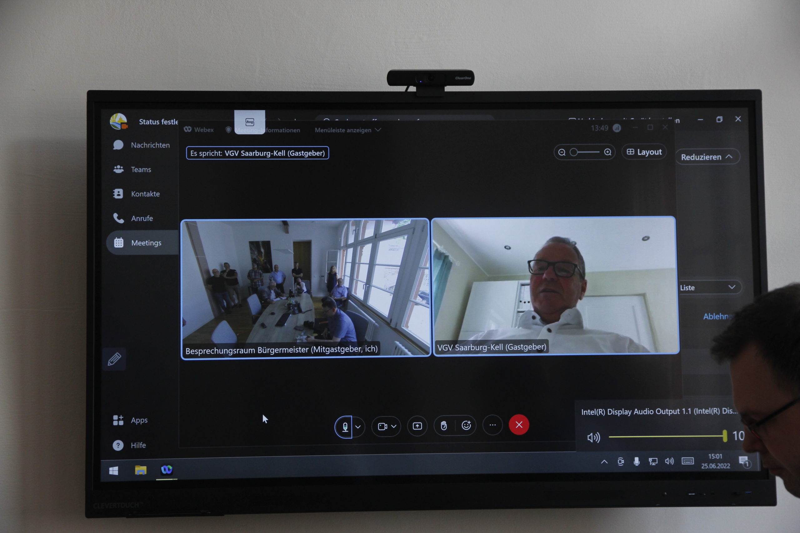 Gegen 15.00 schaltete sich auch der erkrankte Bürgermeister in einer Videoschalte zu. In seiner Ansprache skizzierte er nochmals die wesentlichen Schritte der Sanierungsplanung und deren Umsetzung. Obwohl es eine europaweite Ausschreibung gab war man letztlich auch mit dem Denkmalschutz und den Architekten darüber einig, die Arbeiten zur Instandsetzung von heimischen Betrieben durchführen zu lassen. An die 50 Firmen mit etwa 500 Mitarbeiter waren daran beteiligt.