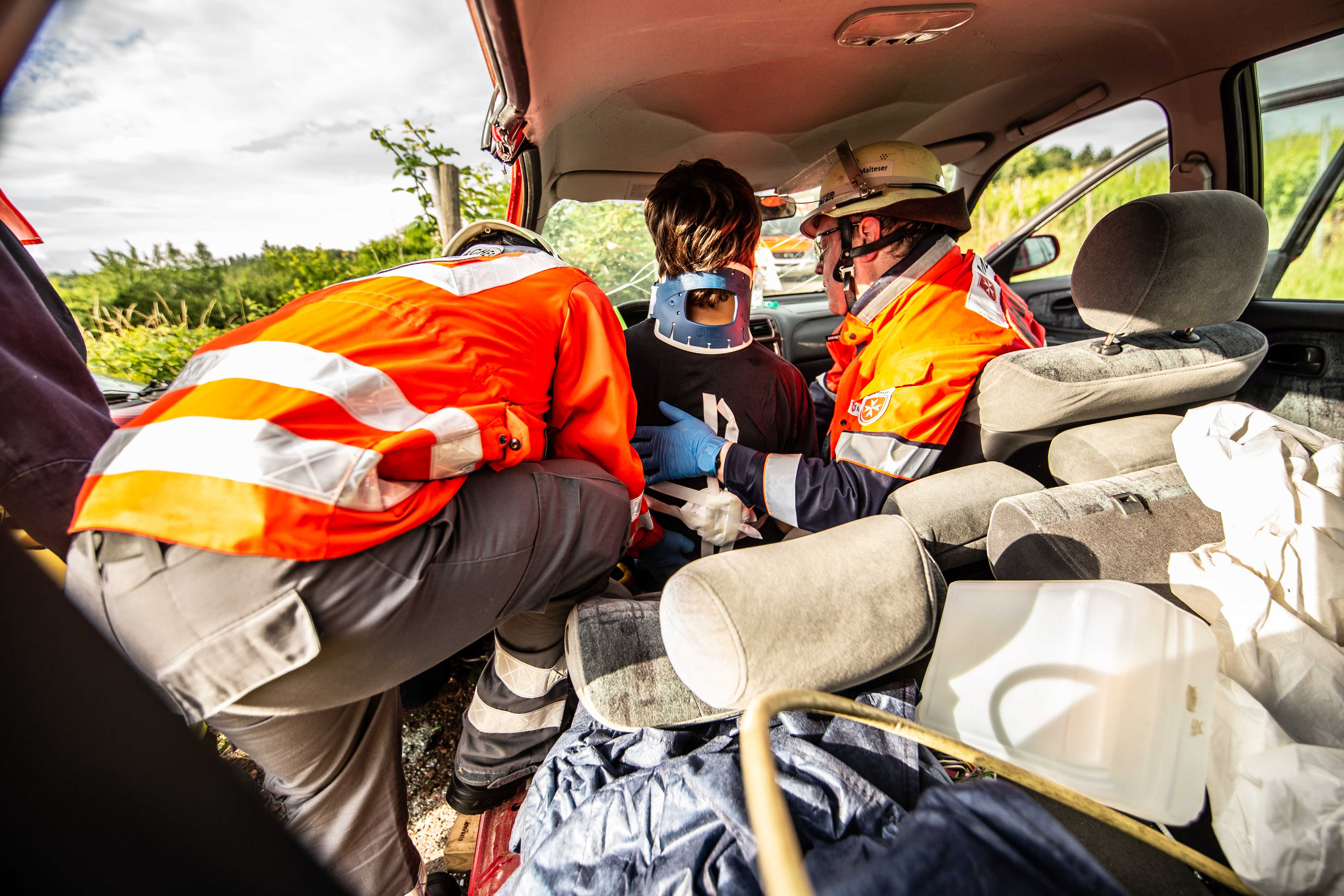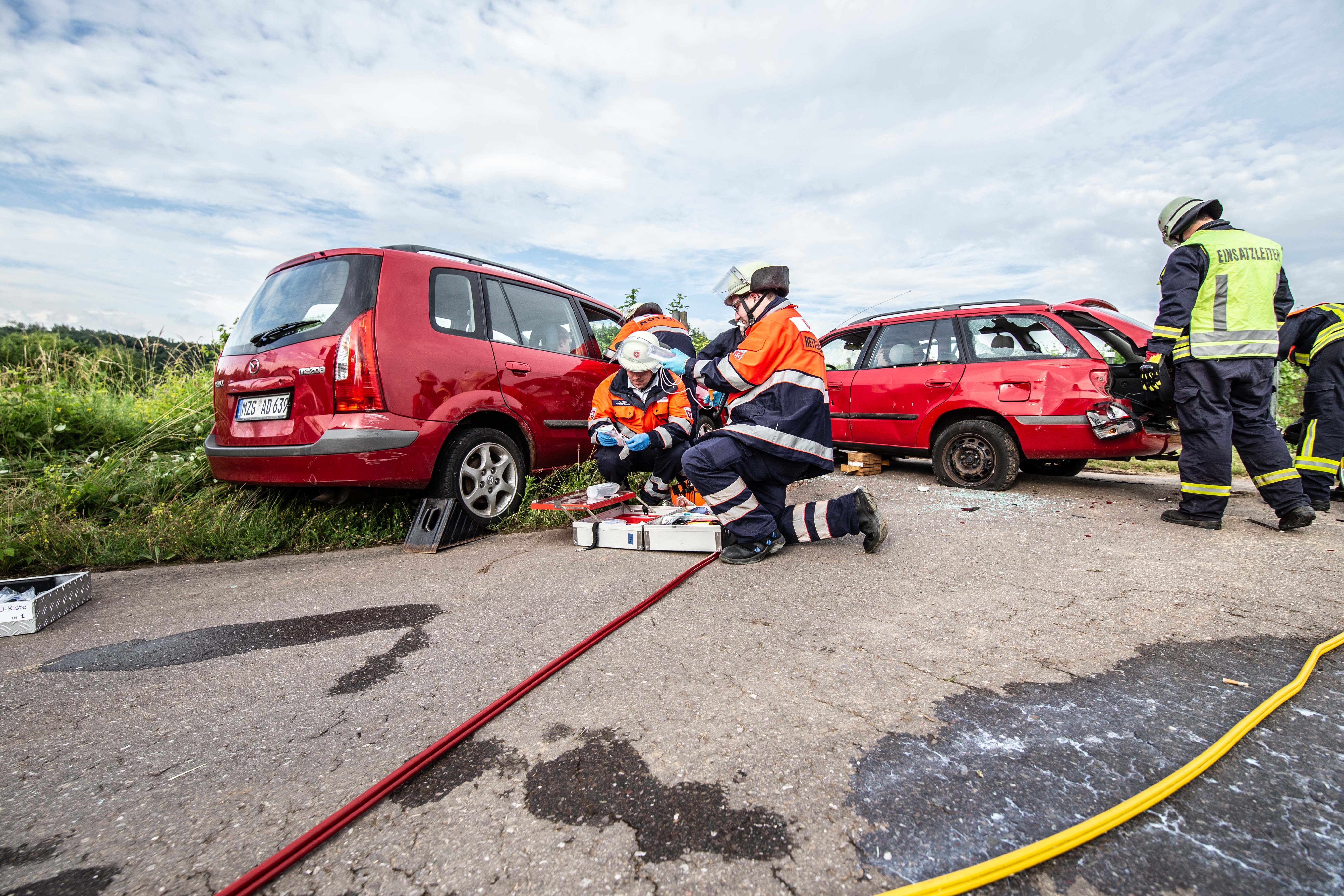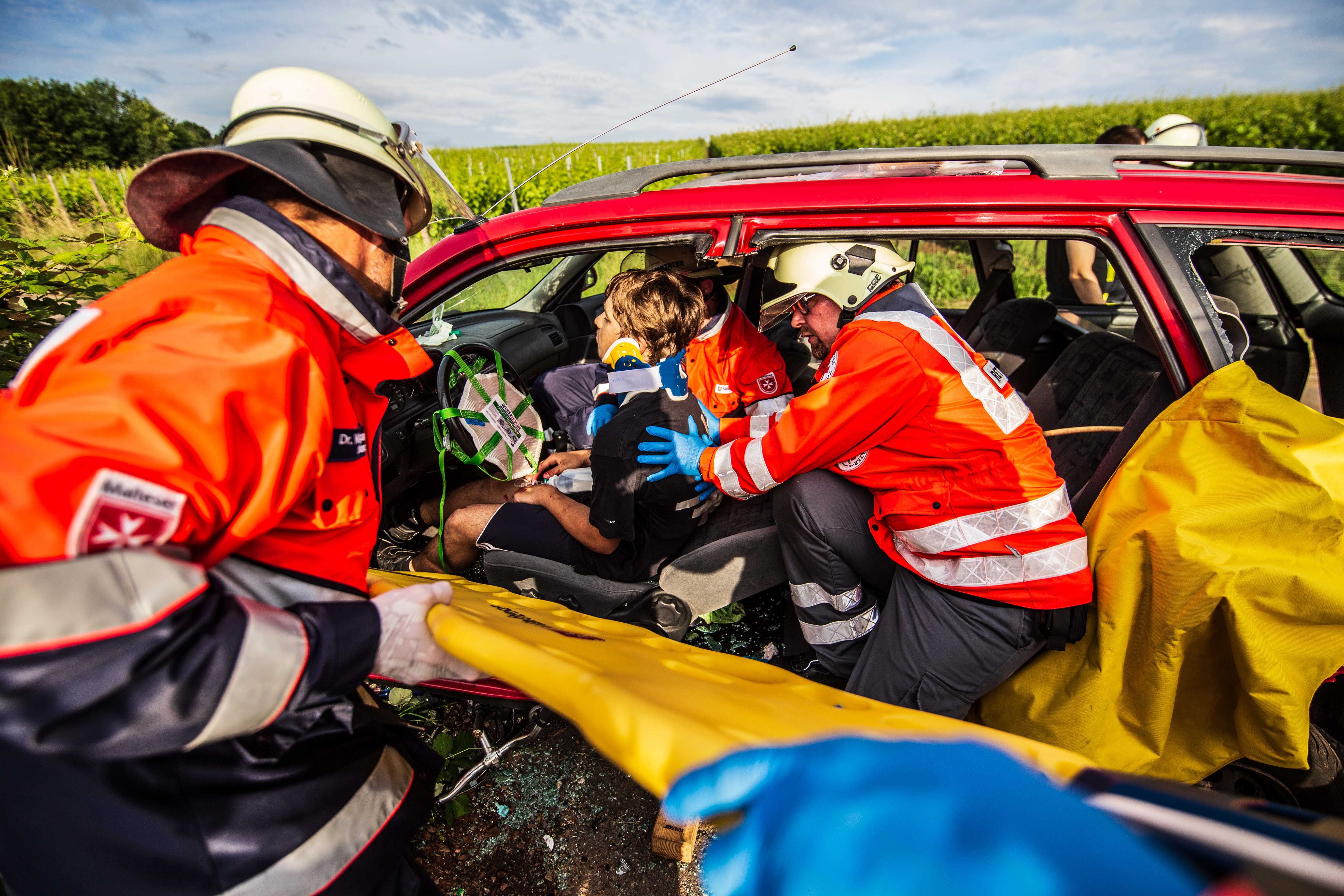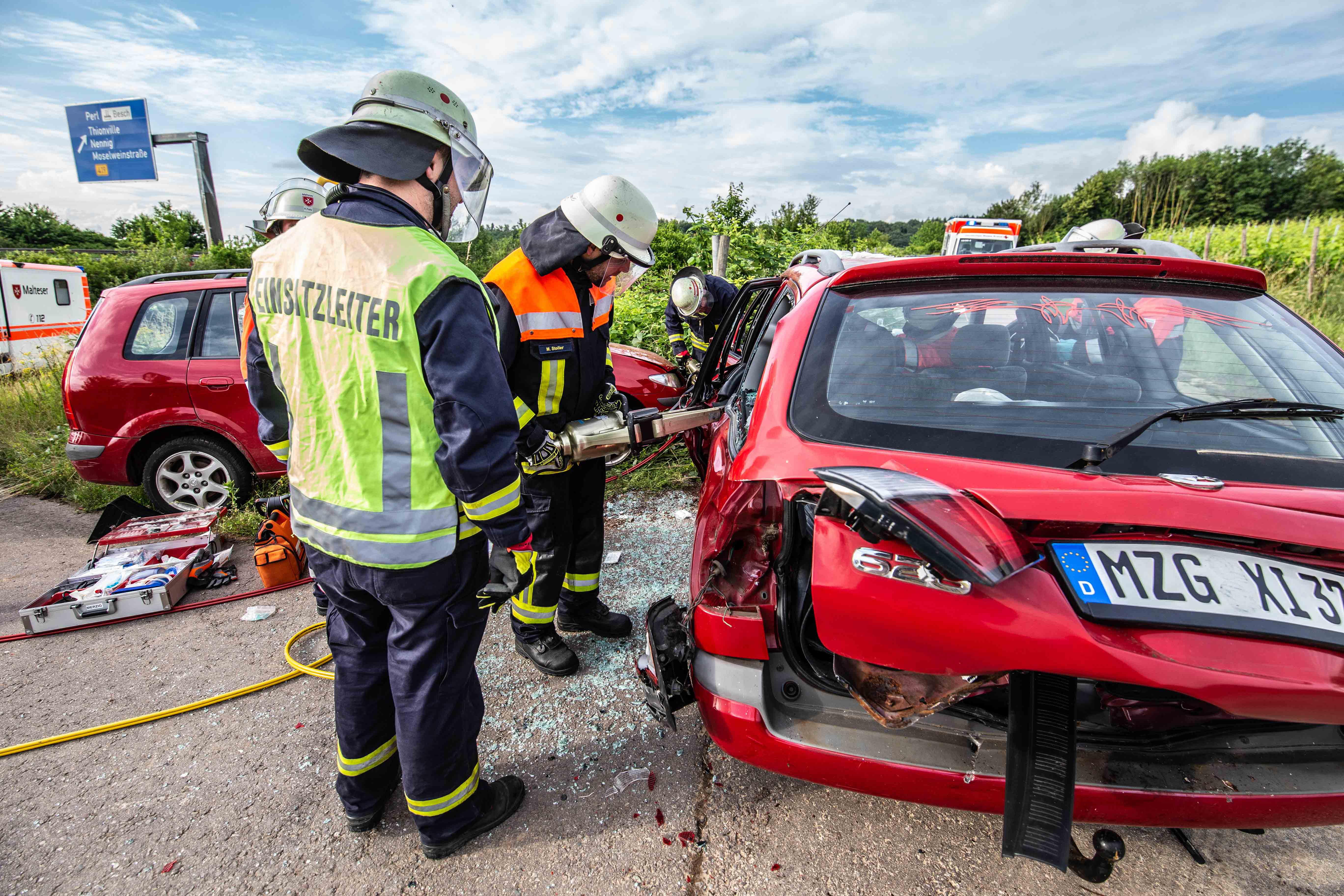 Neben zwei weiteren eingeklemmten Personen und den im hohen Gras liegenden Radfahrer war es eine Herausforderung für die Einsatzkräfte diese Personen zu retten und dem Rettungsdienst zu übergeben. Die Feuerwehr Perl -Löschbezirk Perl- war mit 13 Einsatzkräften und zwei Fahrzeugen am Einsatzort. Weiterhin war die Malteser Stadtgliederung Merzig mit einem Notarzt, einem RTW und einem KTW mit 7 Helfern vor Ort. Der DRK Ortsverein Saarburg war ebenfalls mit einem RTW und drei Einsatzkräften vor Ort.