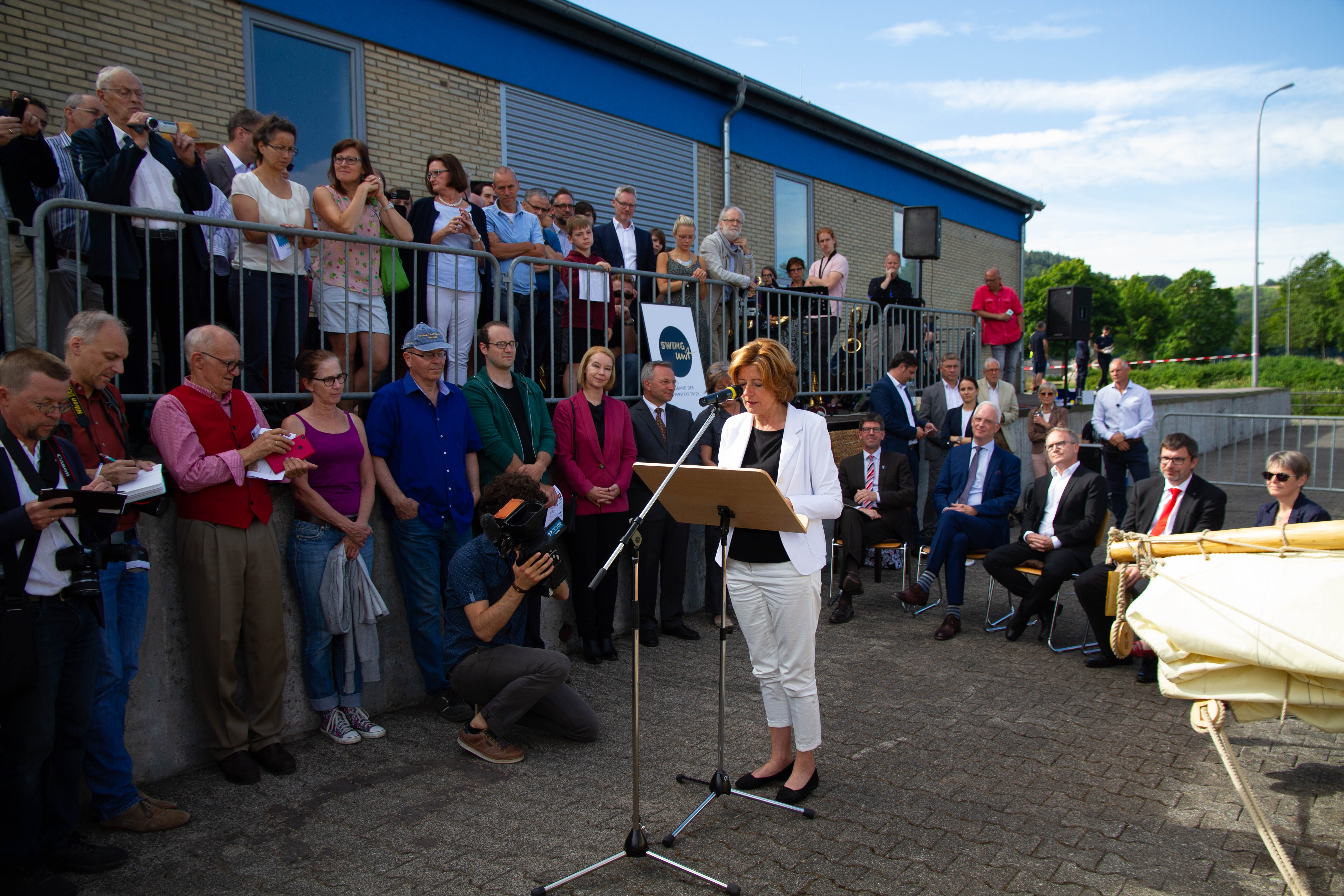 Römerschiff durch Schirmherrin Ministerpräsidentin Malu Dreyer auf den Namen „BISSULA“ getauft./Video