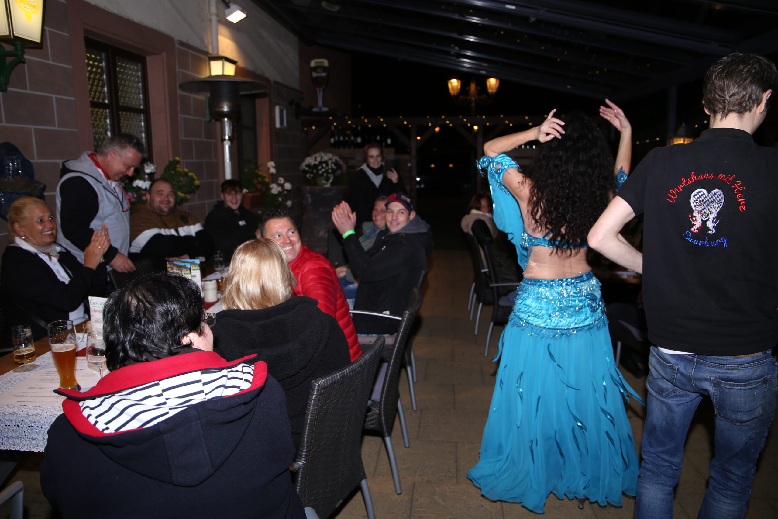 Bereits gegen 17 Uhr stand eine große Gruppe von Gästen auf dem Busparkplatz und warteten auf die Shuttle-Fahrzeuge zum Warsberg. Bei vollem Hause und begeisterten Gästen führte die holländische Band Max&Co mit Schlagern der 60er bis 90er Jahre durch den Abend. Weiter ging es im Stundentakt in den Staden zum Restaurant Alt Saarburg. Hier bot eine Bauchtänzerin sowohl im Innenbereich als auch im Terrassenbereich den zahlreichen Gästen eine schöne Show, einige Gäste hielt es nicht mehr auf den Schwind Rockhits der 70er und 80er Jahre bei vollem Hause.. Beim nächsten Stopp Schlossberg Brasserie mit der Band Emotions zeigte sich schon, dass das Festival im vollen Gange ist und keine Gäste mehr aufnehmen konnte. Dieses Bild zeigte sich auch an den nachfolgenden Stationen. Im Zwanzig/Zwanzig legte DJ TT Hacky auf. Im Wirtshaus mit Herz sang die bereits bekannte Maria und sorgte für Stimmung und vielseitigen Musikbeiträgen für Jung und Alt, Gästewünsche eingeschlossen.