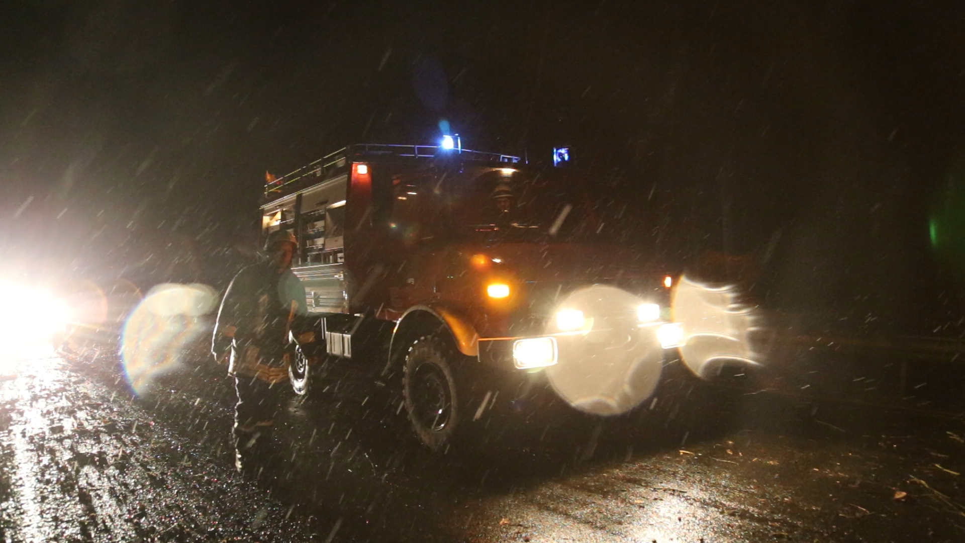 Die Feuerwehr hatte während ihrer Einsätze mit starken Regen und Schneefall zu kämpfen.