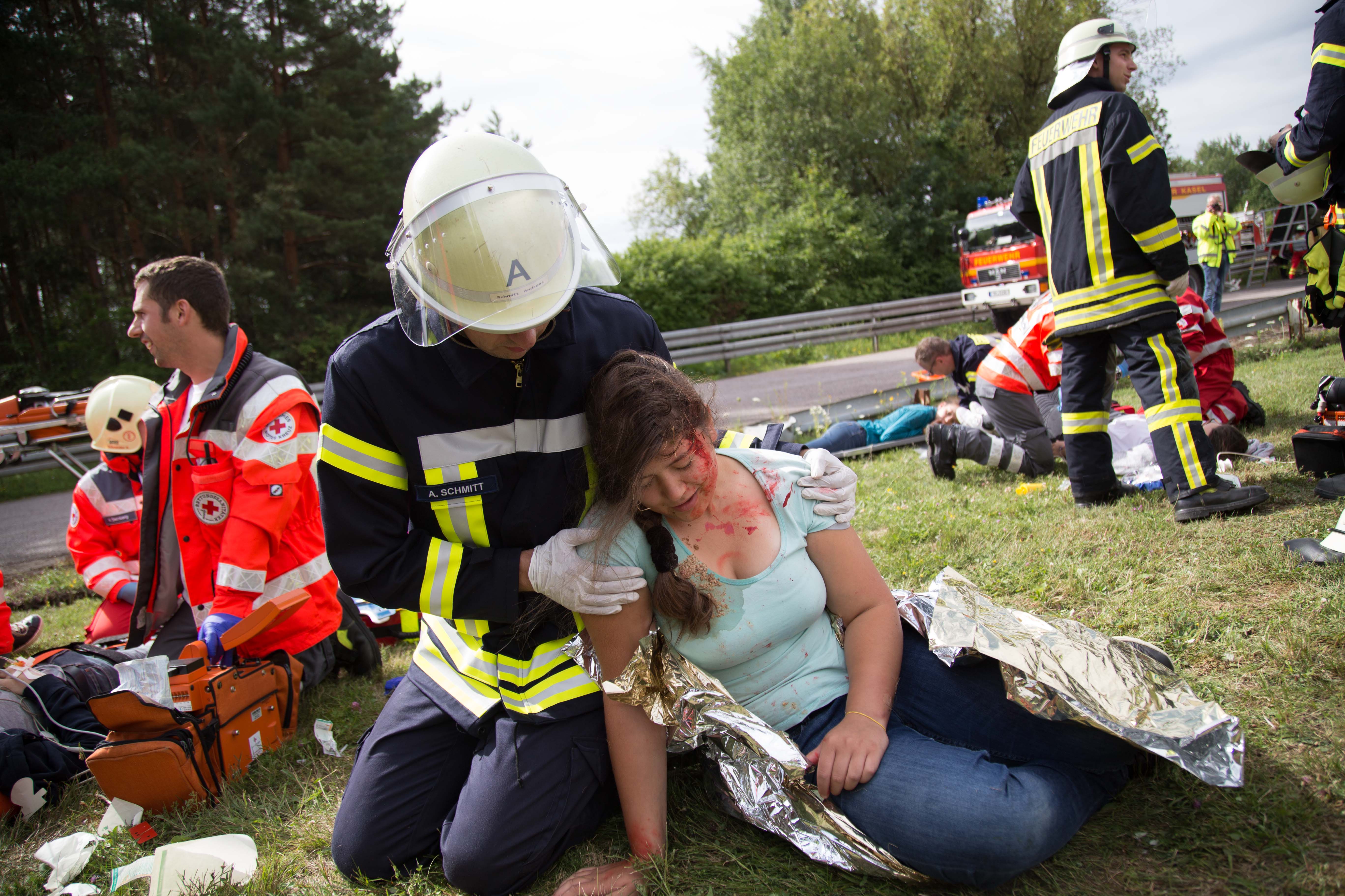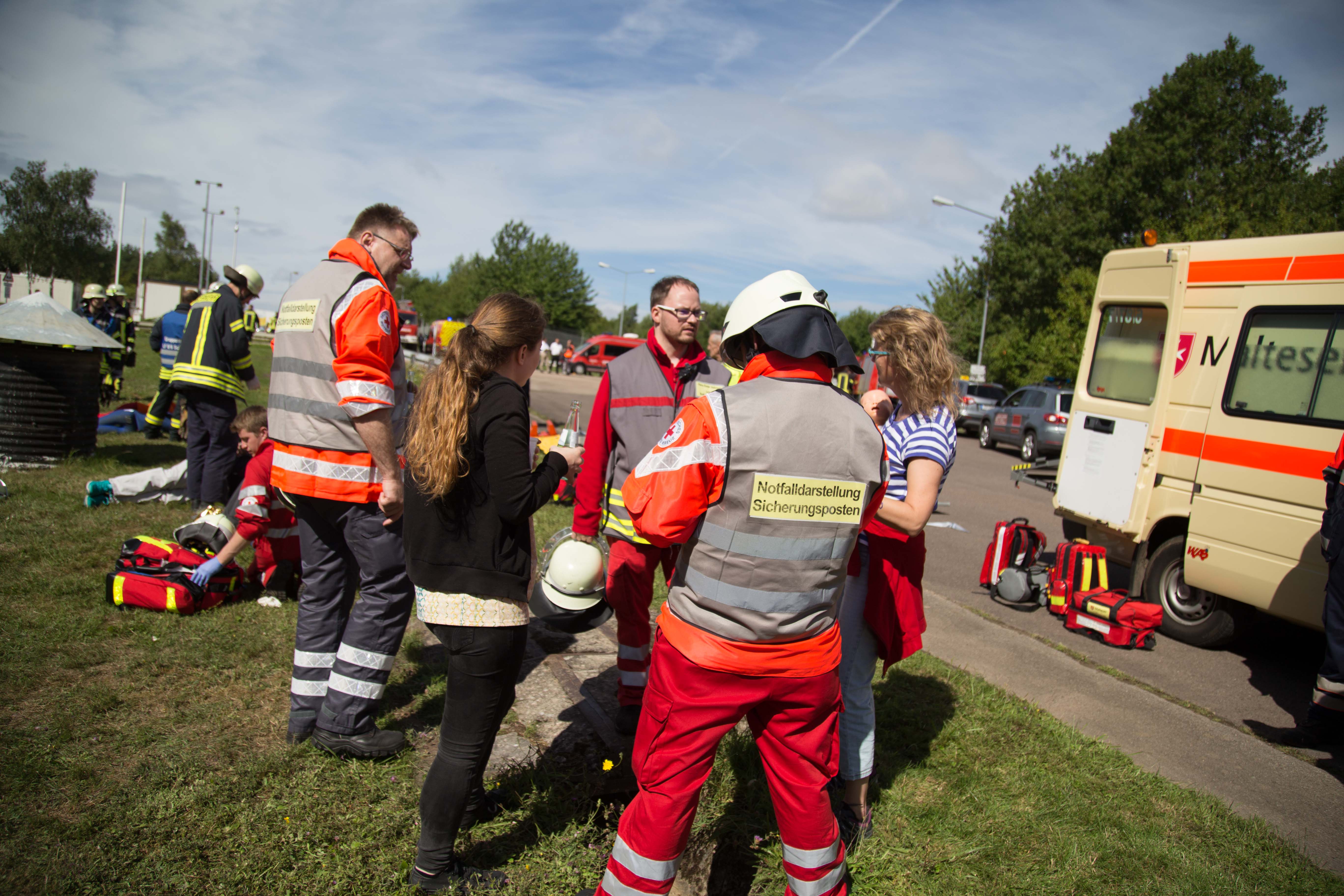 Die Verletzen wurden von der Realistischen Unfalldarstellung des DRK Landesverbands Rheinland-Pfalz gestellt und geschminkt. Das Team war mit rund 60 Leute vor Ort.