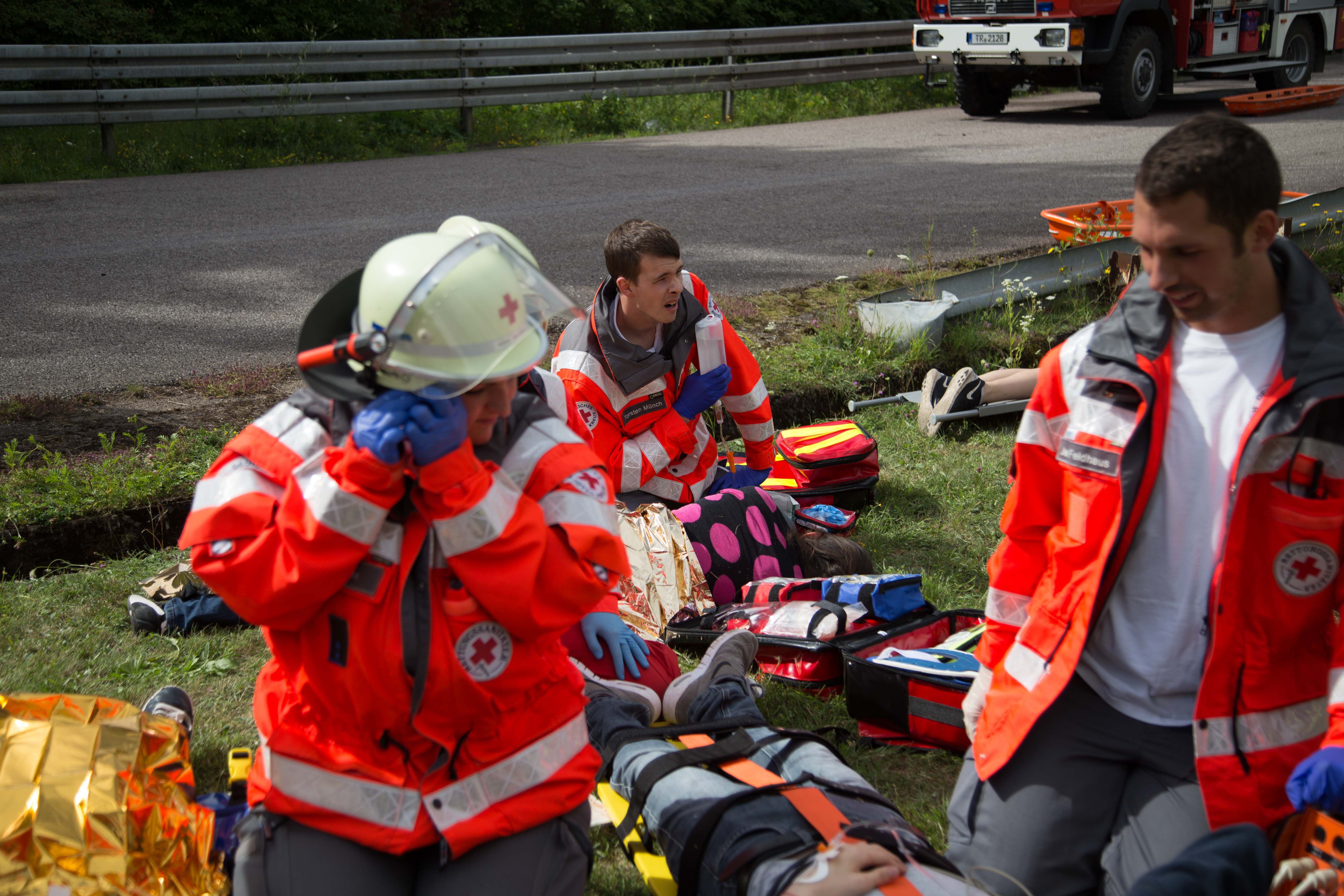 Die verletzen wurden dann an den Rettungsdienst übergeben, dort Registriert und in drei Kategorien eingeteilt: Leicht, Mittel und Schwer. Die Schwer und Mittelschwer verletzen werden zuerst in die Krankenhäuser gebracht. Im Realfall wären hierbei auch fünf Rettungshubschrauber im Einsatz.