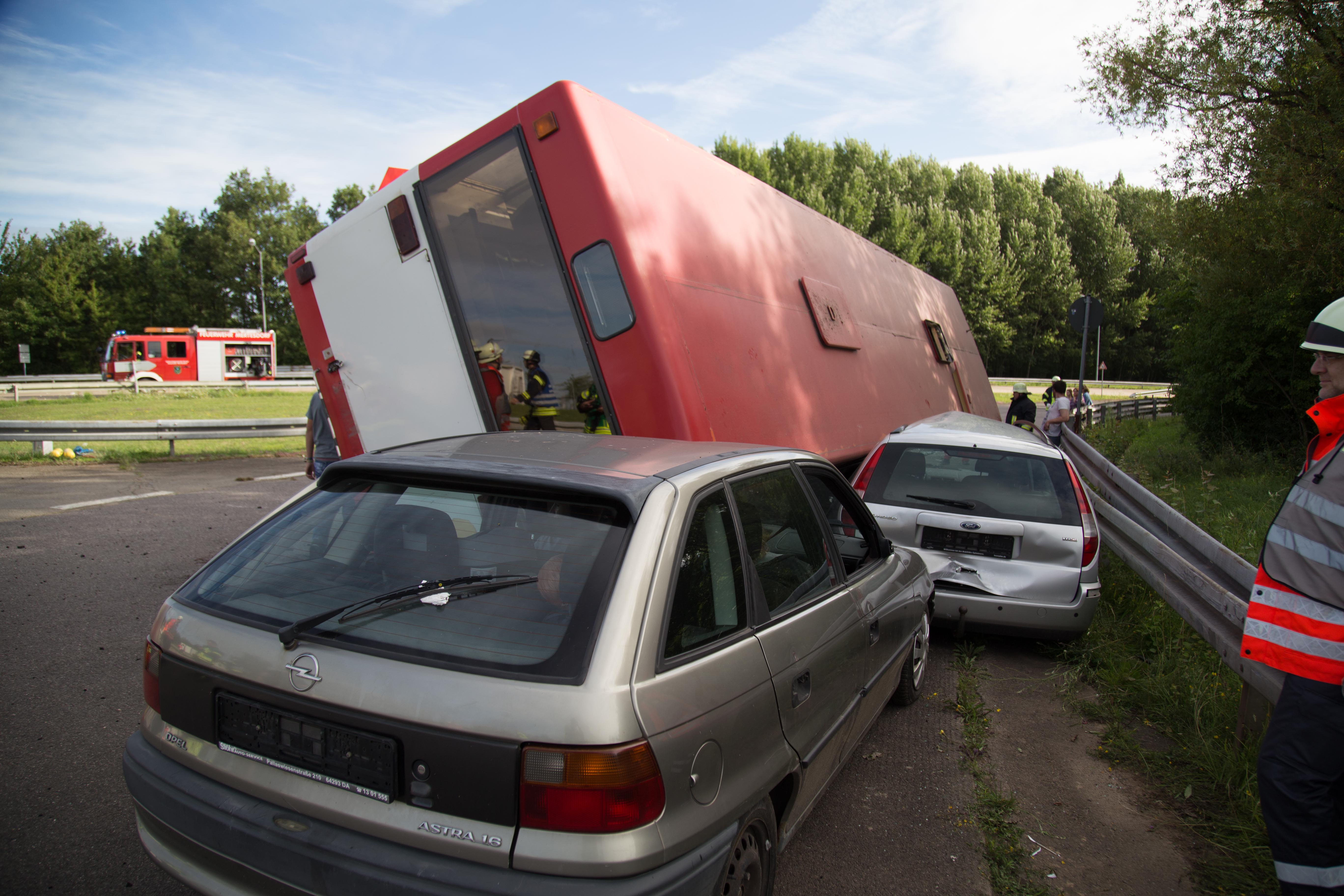 Mertesdorf. Ein Vollbesetzter Reisebus liegt auf einem Auto, ein PKW hat sich überschlagen und ein weiterer ist in die Unfallstelle rein gekracht. Rund 50 Personen sind verletzt, teilweise schwer und in Lebensgefahr. Ein Bild was man niemals im Realfall sehen will wurde am Samstagmorgen in einer Landkreis Alarmübung in Mertesdorf von Feuerwehr und Rettungsdienst geprobt.