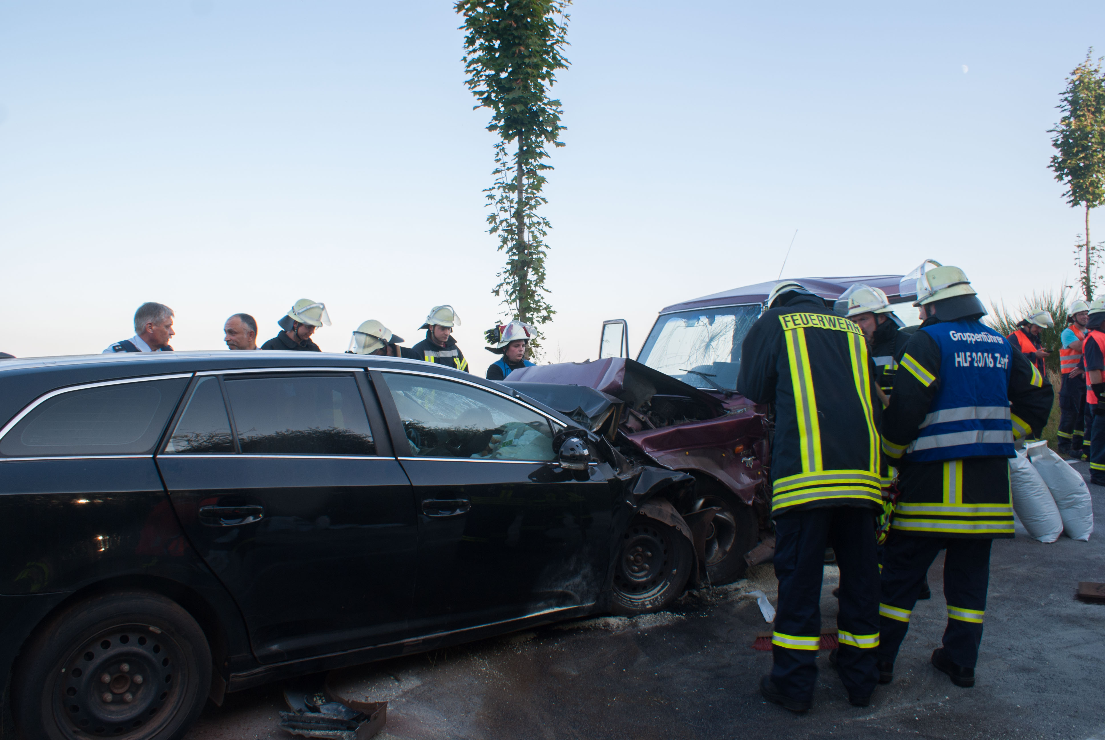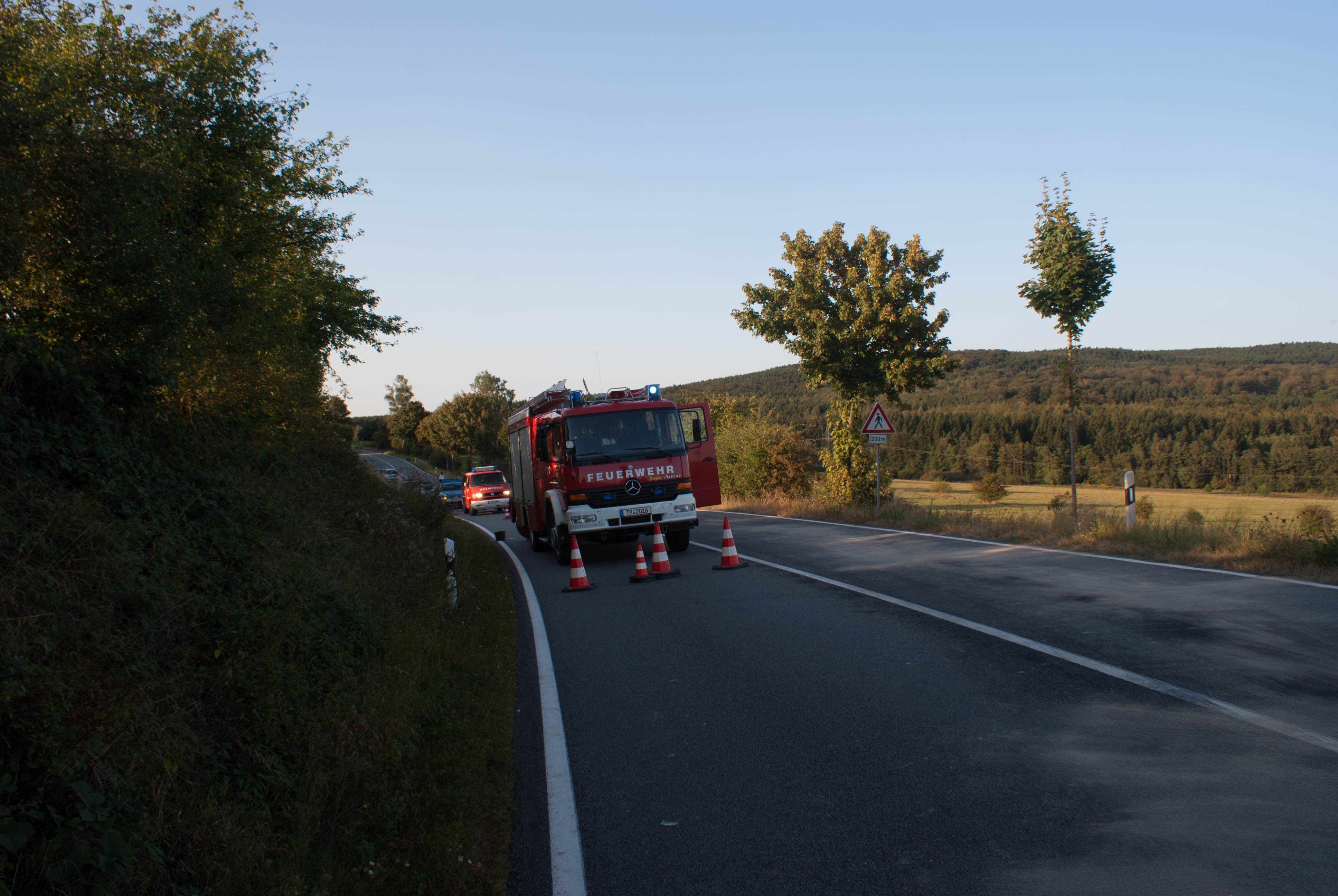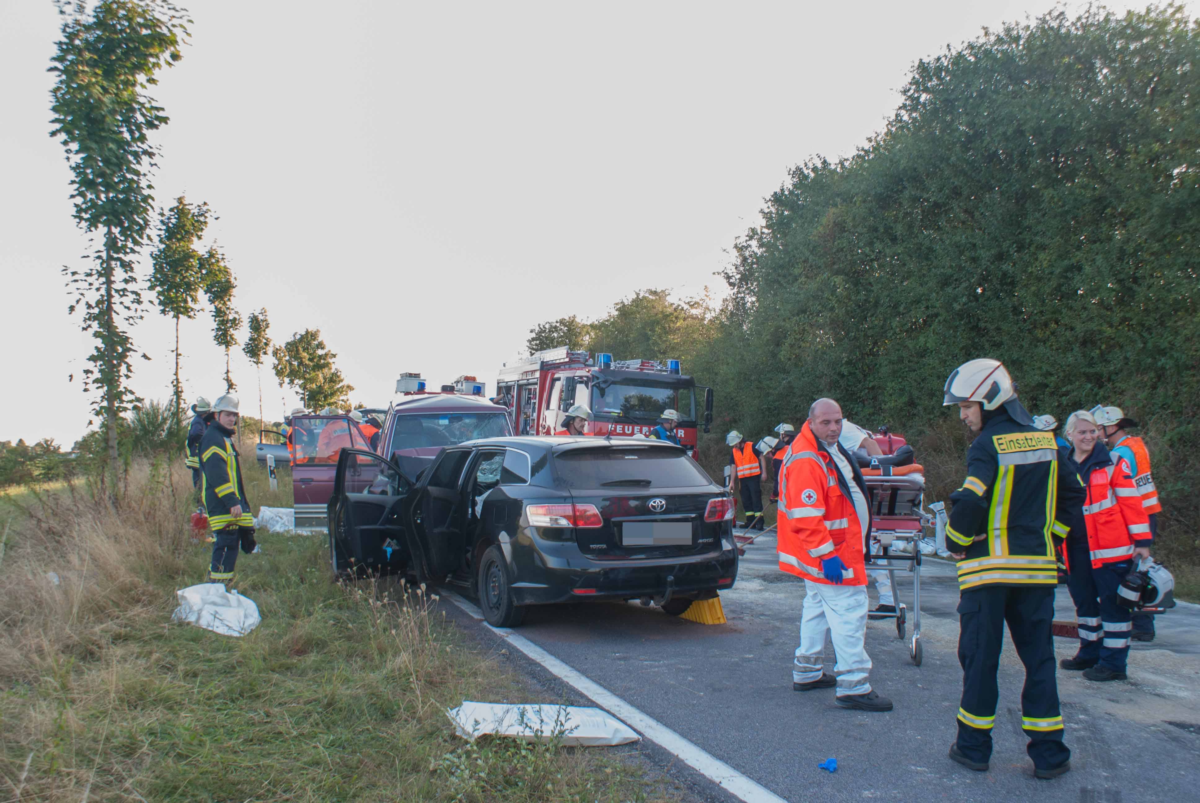 Britten/B268. Gegen 18.00 Uhr kam es in einer langgezogenen Rechtskurve kurz vor Britten zu einem schweren Unfall. Ein Geländewagen und ein Toyota Kombi krachten frontal zusammen. Die Identität der beiden weiblich und männlichen Fahrzeugführer konnten zum Zeitpunkt der Unfallaufnahme noch nicht ermittelt werden. Der aus Richtung Zerf kommende Toyota überfuhr die durchgezogene Mittellinie. Die Fahrerin hatte noch einen Hund mit im Fahrzeug, der unverletzt blieb und seitens der Feuerwehr Losheim am See betreut wurde. Der Fahrer des Geländewagens hatte keine Chance auszuweichen. Beide Fahrer wurden schwer verletzt. Im Einsatz waren die beiden Rettungshubschrauber Christoph 16 und der Air Rescue 3 aus Luxemburg, der Notarzt aus Merzig, die Rettungswagen aus Zerf und Mettlach, die Feuerwehren Losheim am See, Britten, Zerf und Greimerath. Die alarmierten Wehren aus Saarburg und Mandern konnten den Einsatz abrechen. Insgesamt waren 58 Wehrleute aus Losheim und der VG Kell am See im Einsatz. Die B 268 musste zwischen dem Panzhaus und Britten bis in die späten Abendstunden aufgrund der Räumungsarbeiten gesperrt werden. Ein Gutachter wurde zur Einsatzstelle beordert.