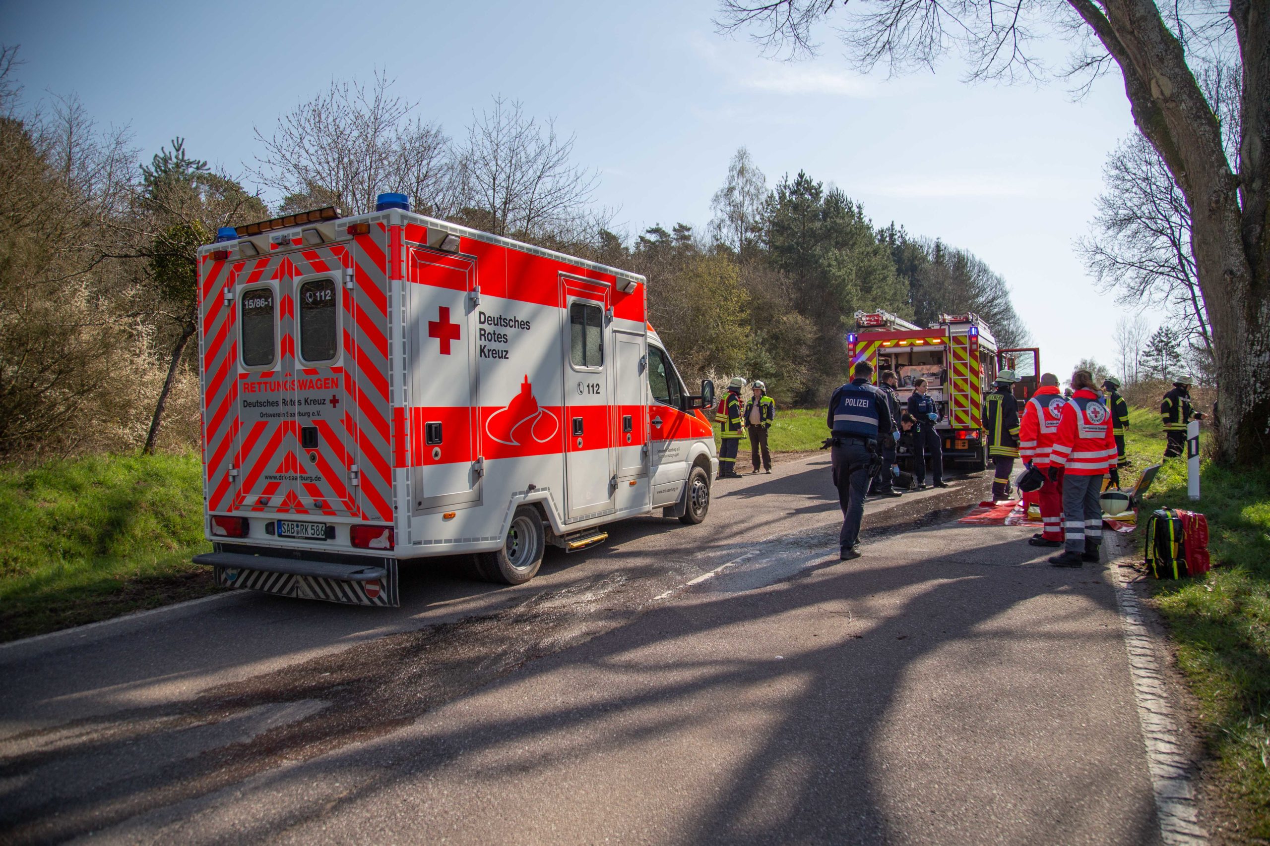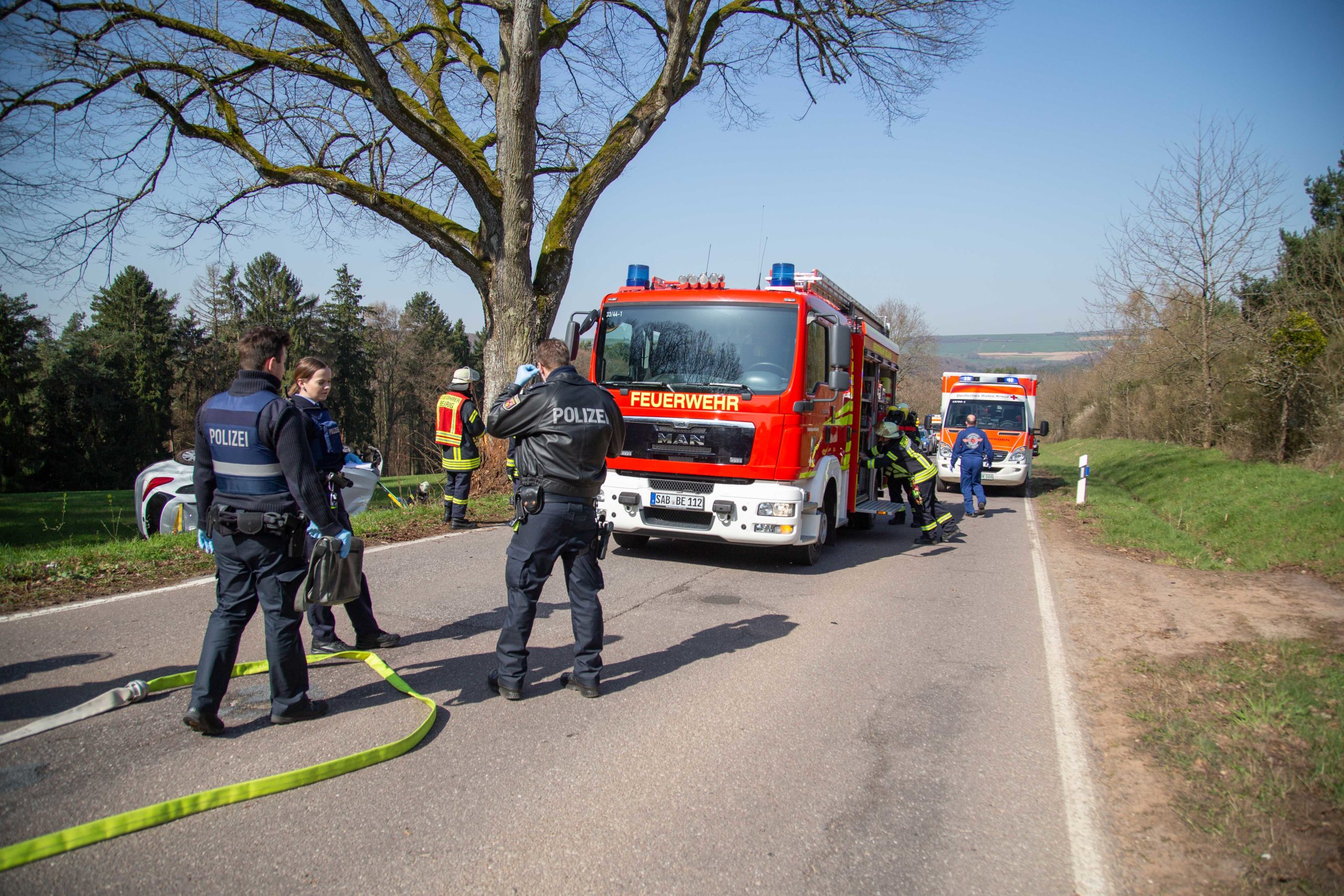 Während der Rettungs- und Bergungsarbeiten blieb die Landstraße an der Unfallstelle voll gesperrt.