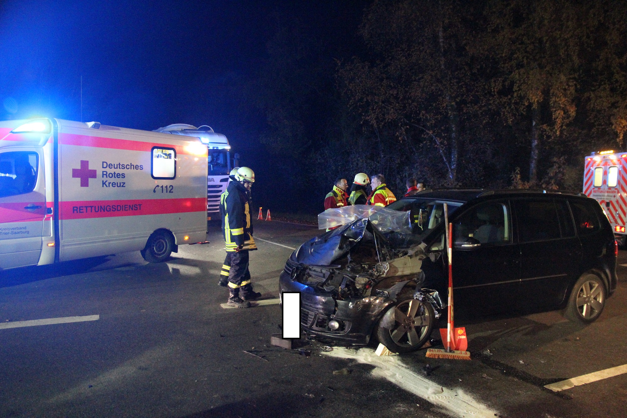 Der Fahrer des VW blieb unverletzt, seine 50jährige Beifahrerin aus Luxemburg wurde leichtverletzt. Beide wurden zur Untersuchung ins Krankenhaus Saarburg verbracht. Der Mercedes-Fahrer wurde mit schweren Verletzungen ins Brüderkrankenhaus nach Trier, seine 79jährige Beifahrerin aus Luxemburg wurde schwerverletzt ins SHG Klinikum Merzig gebracht. Der Schaden an den Fahrzeugen belief sich auf insgesamt ca. 22.000,- EUR. Die B 419 war für ca. eine Stunde komplett gesperrt.