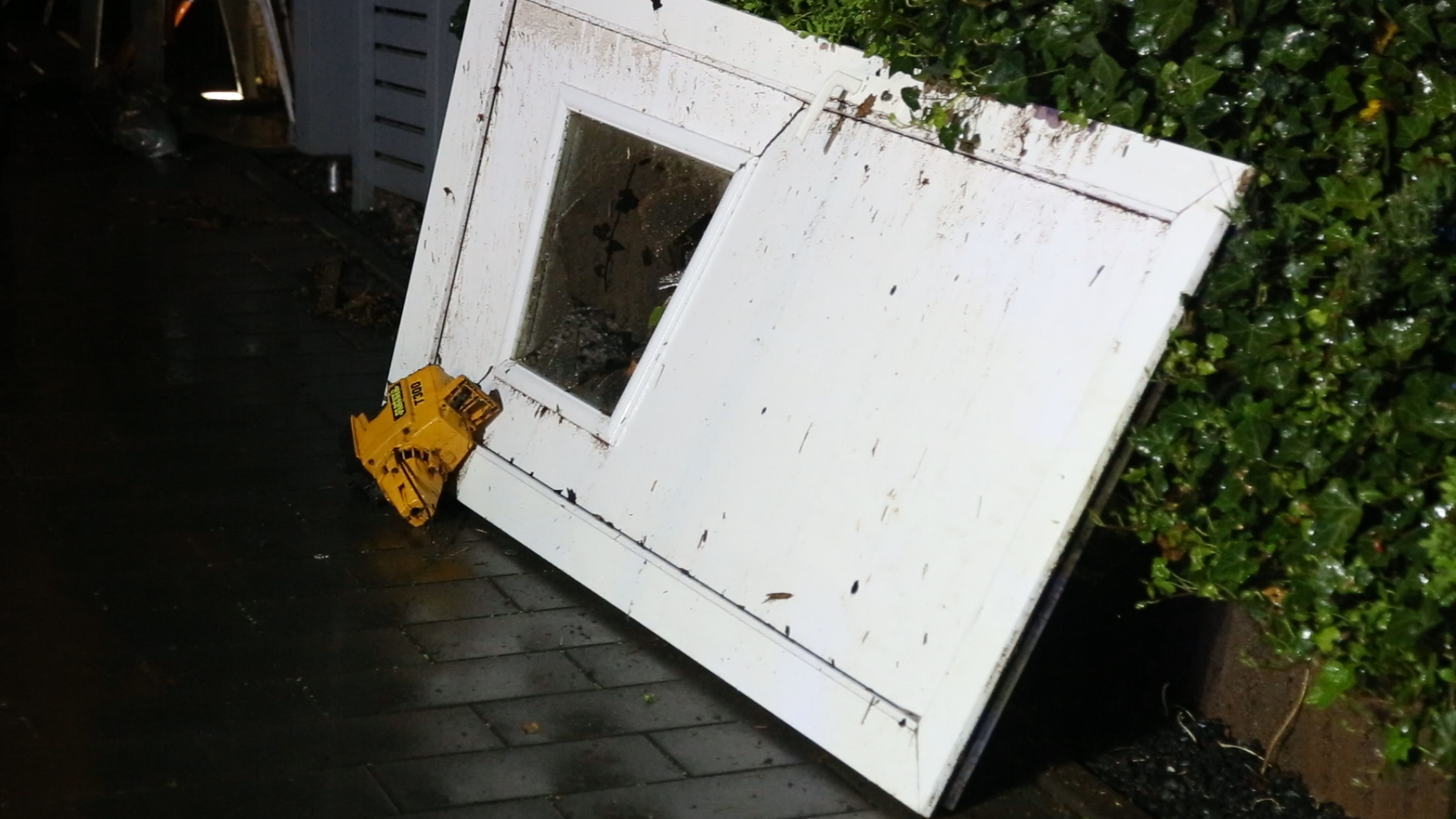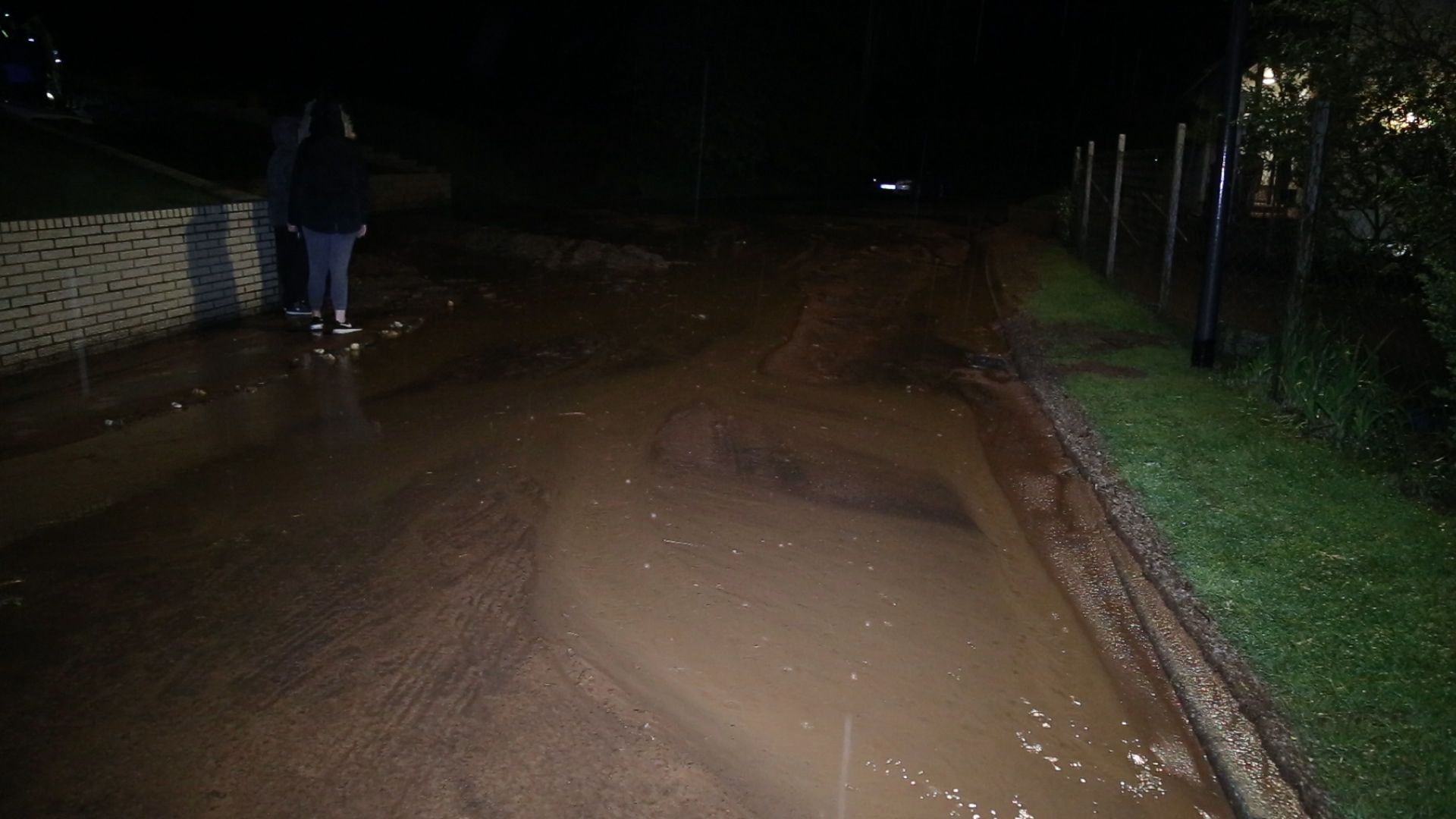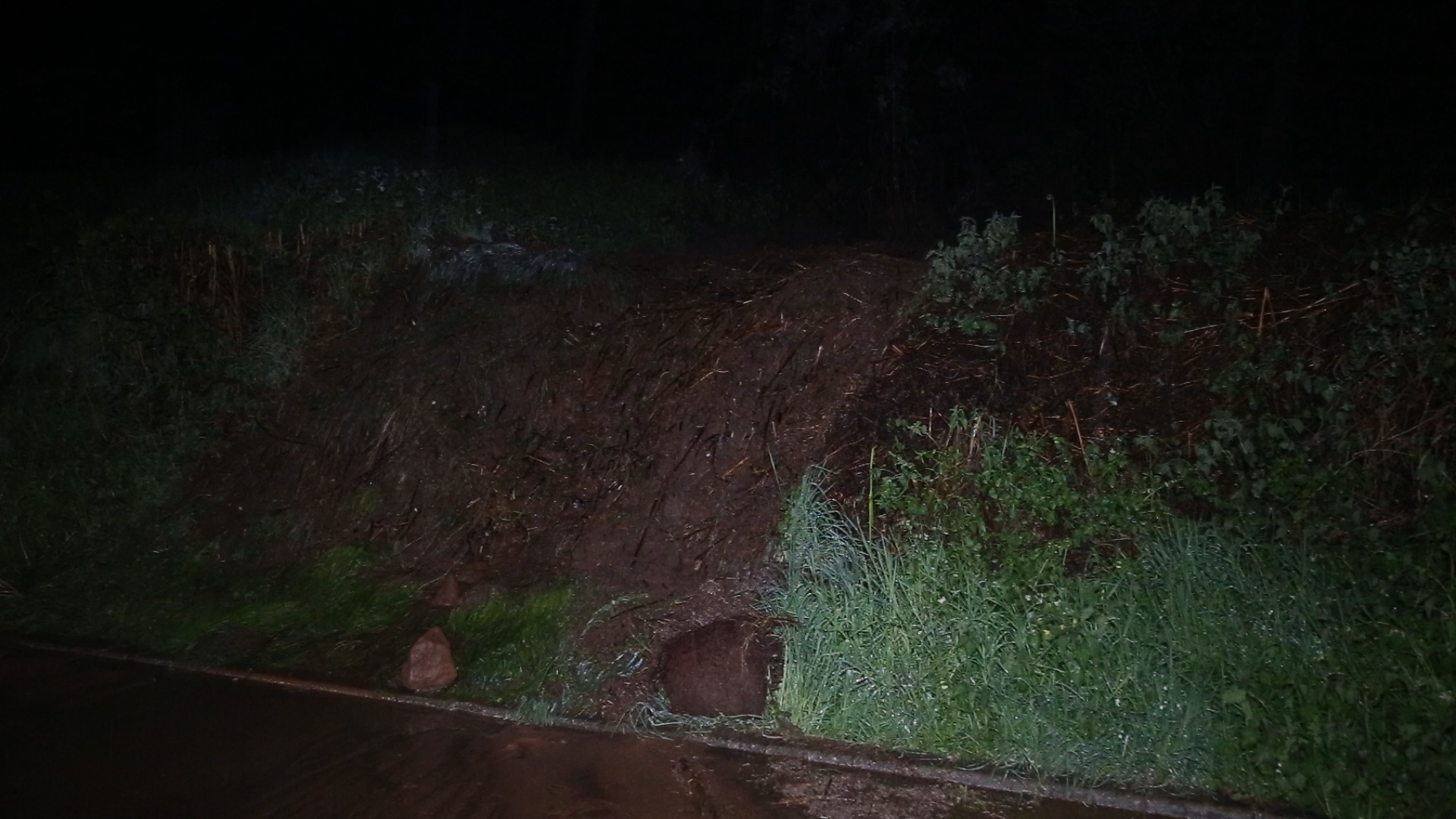 Zentriert hat sich hier Oberflächenwasser mit dem Schlamm und Geröll von einer großen landwirtschaftlich genutzten Fläche oberhalb der Häuser gelöst und in Richtung der Häuser bergab bewegt.