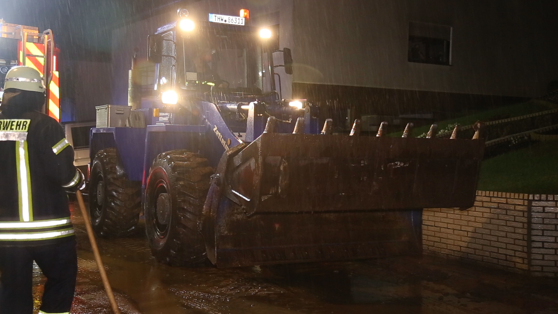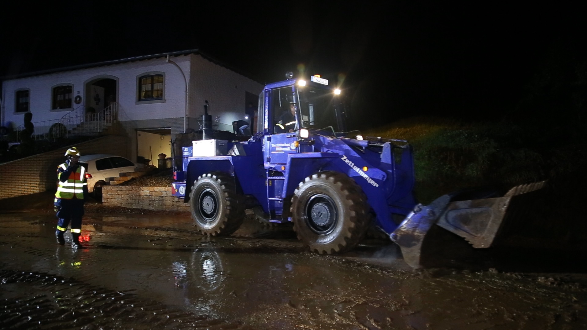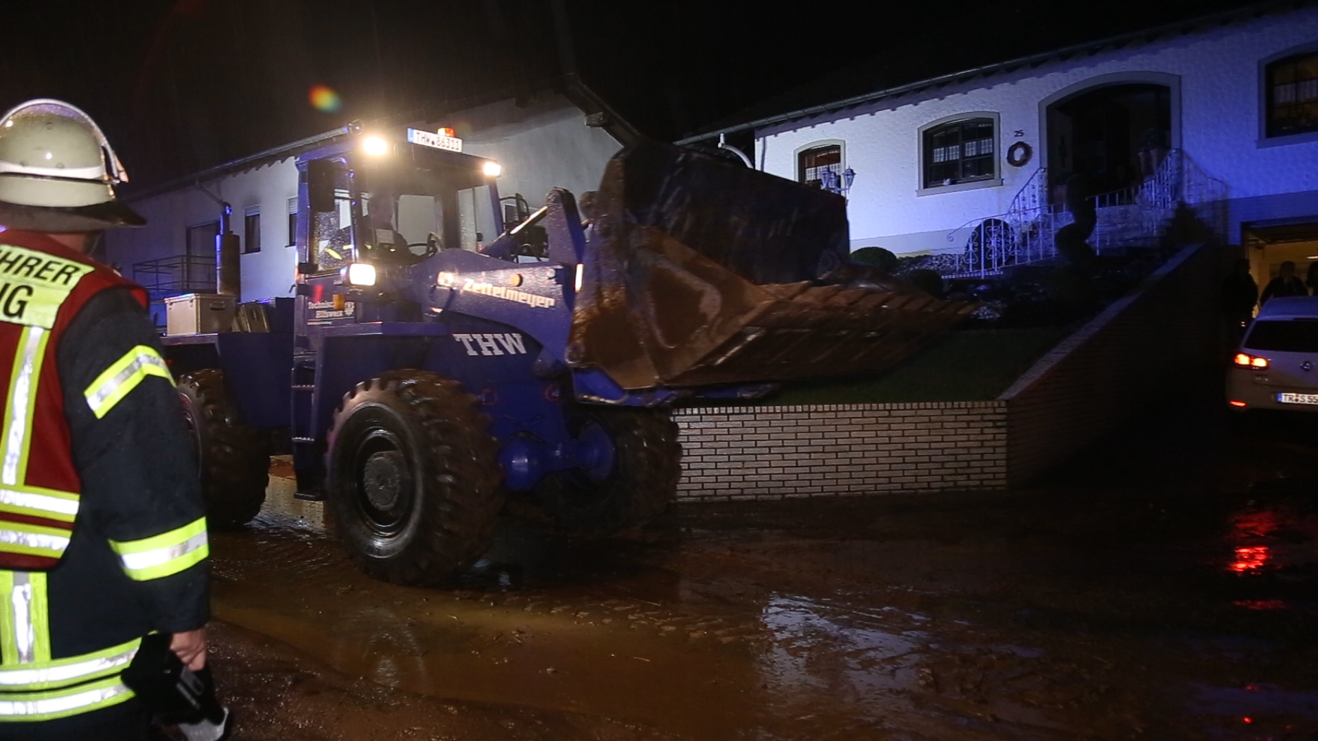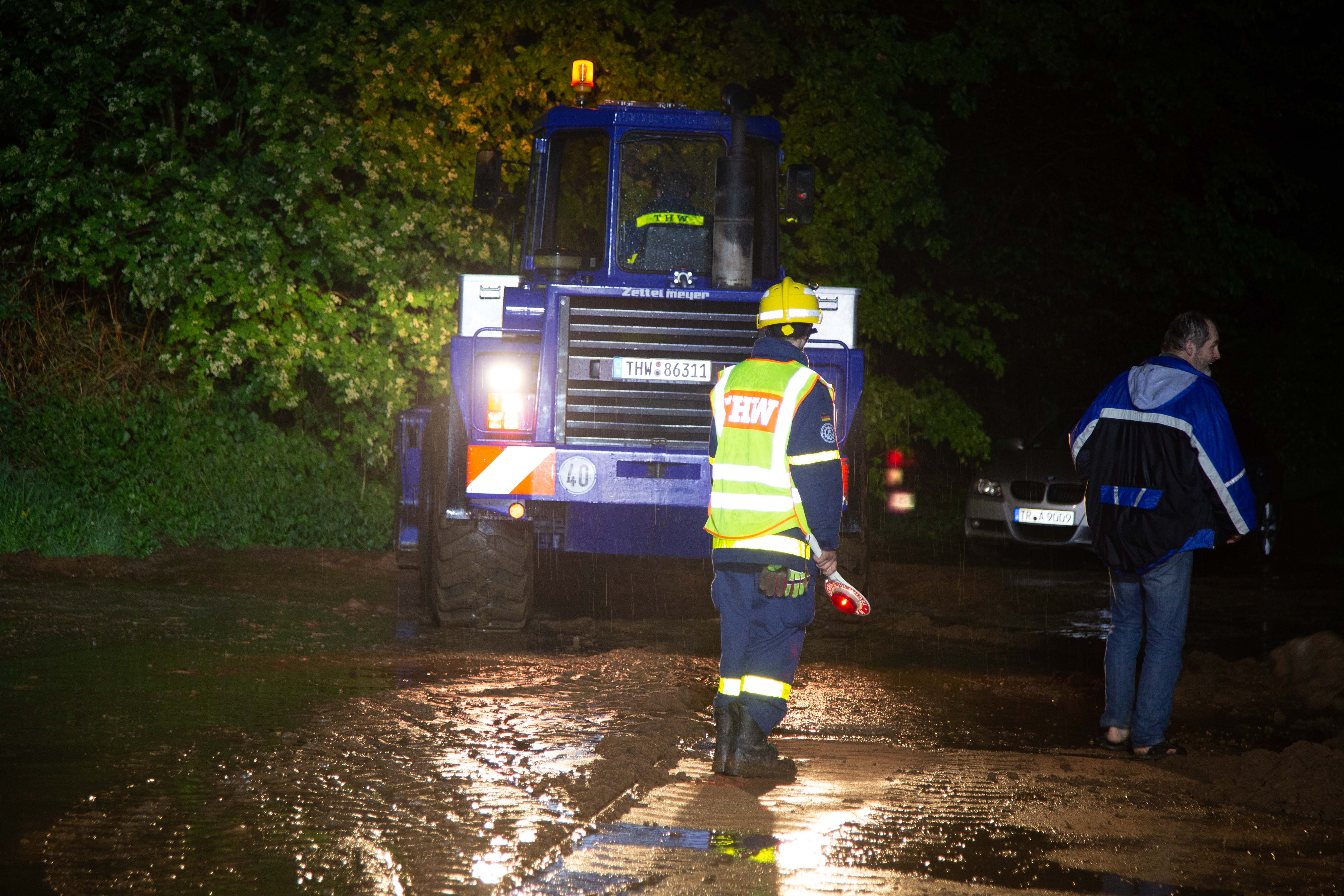 Ein Radlader des Technischen Hilfswerk aus Saarburg wurde zur Beseitigung der Schlammmassen auf den Straßen angefordert. Teilweise waren die Geröllmassen bis zu ca. 20 cm hoch.