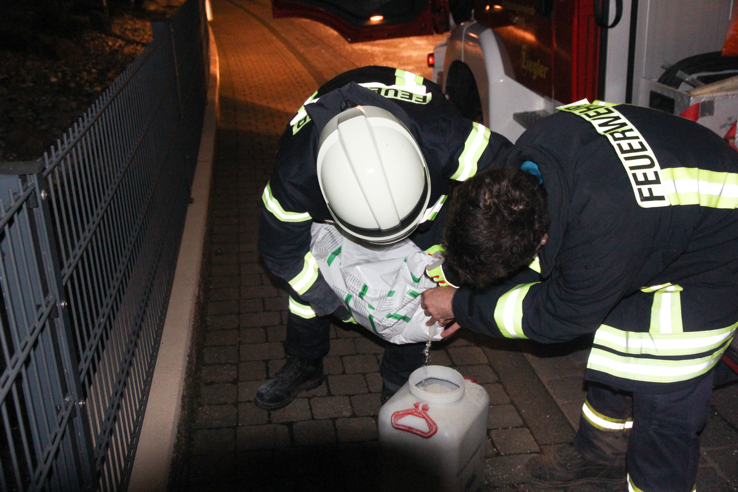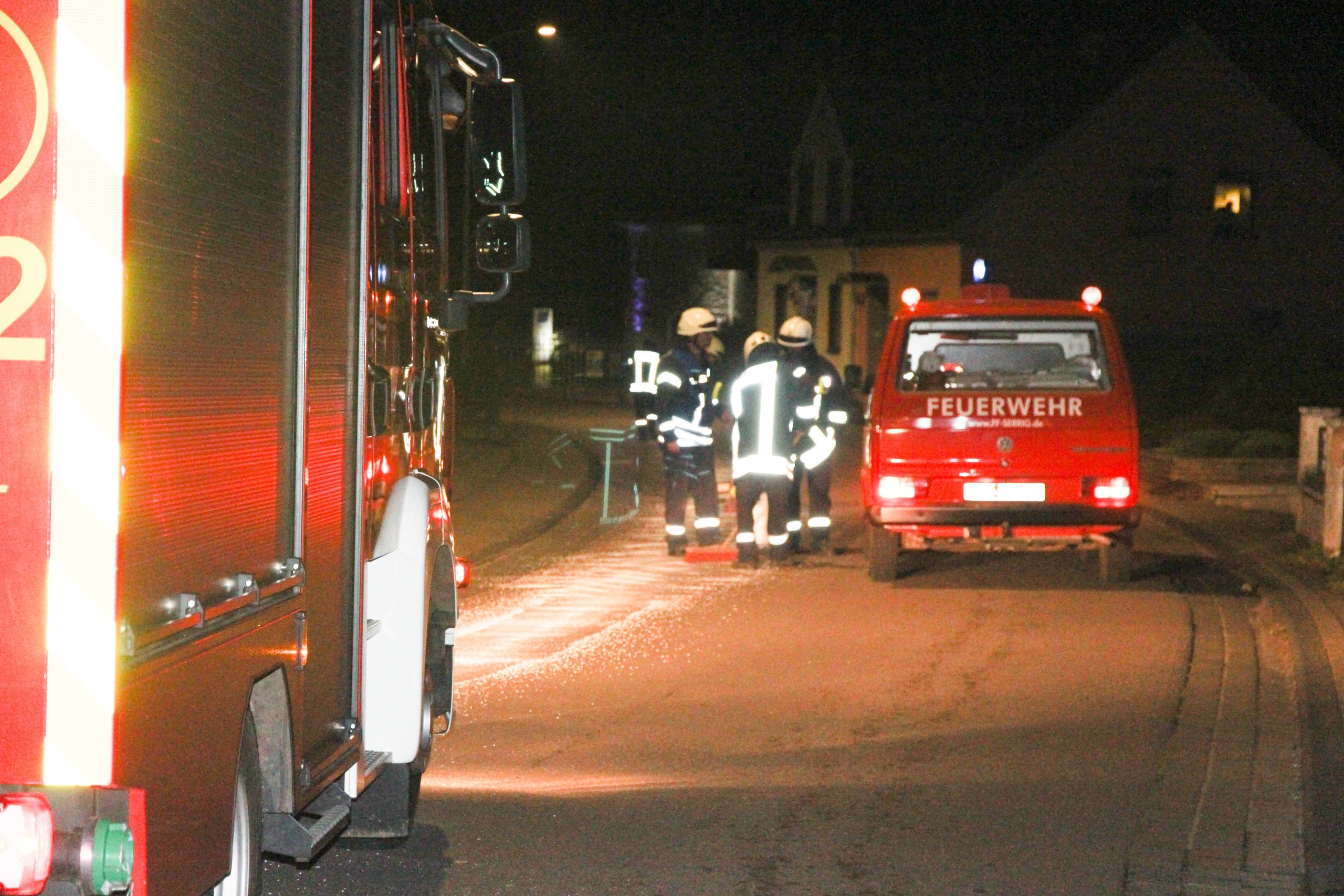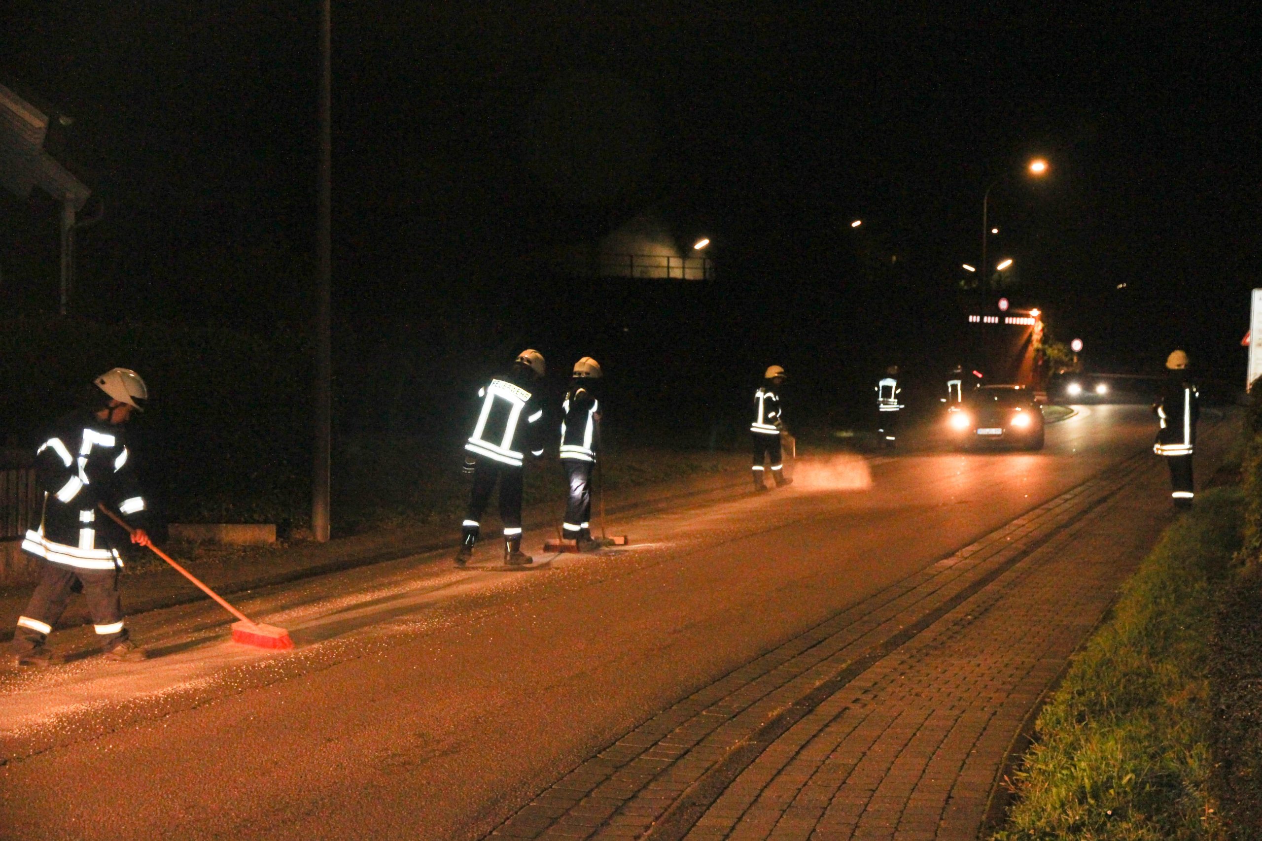 Serrig. Gestern Abend kurz vor 21.00 Uhr wurden die Kameraden der FFW Serrig zu einer Ölverschmutzung der innerörtlichen Hauptstraße über die Leitstelle Trier alarmiert. Von der Hauptstraße am Parkplatz Friedhof über die Losheimerstraße bis hin zur Einfahrt zum Gerätehaus verlor ein Sprinter eines Paketdienstes Dieseltreibstoff, ja sogar beidseitig der Fahrbahn und Bereiche des Bürgersteiges wurden verschmutzt. Die Fahrbahn musste mit Bindemittel abgestreut werden und mit Besen verteilt werden. Es wurden fünf Säcke zu je 16 Kg Bindemittel verstreut.