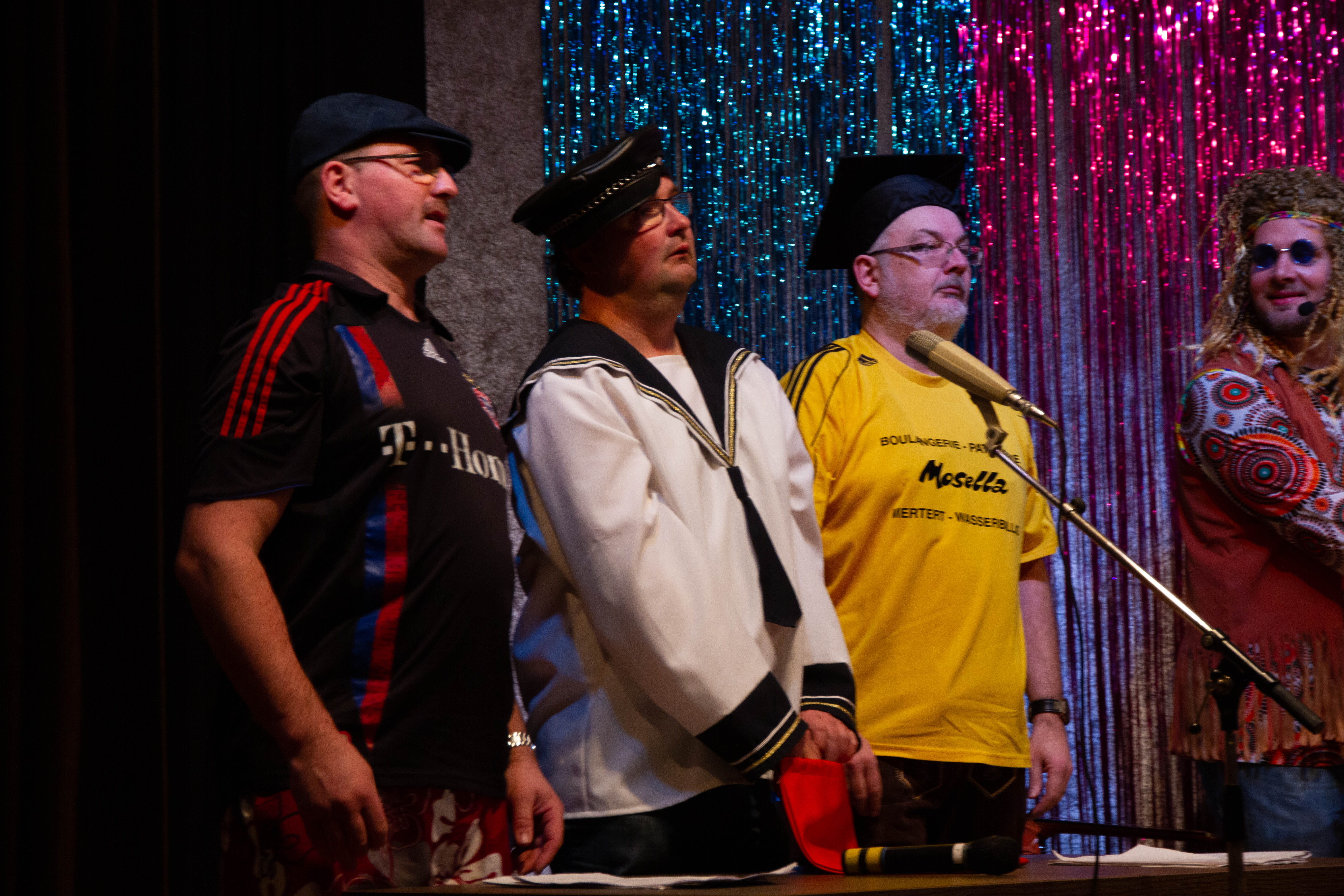 Wincheringen-Soest.     Das Gemeindehaus des Heimatverein e.V. Soest begeisterte bei vollem Hause die Besucher der 2,ten Sitzung. Sitzungsspräsidentinnen Renate Espen und Marita Geltz führten professionell durch das Programm. Zum Programmeinstieg tanzte die Minigarde Soest. Opa und Enkelkind hatten so Ihre Probleme und Diskussionen im Zeitvergleich „Früher & Heute“ Es war ein gelungener und authentischer Vortrag in Tagen von Smartphone etc. Auch das Ehepaar Ursel und Edgar Funk hatten so ihre kleinen und großen Probleme in der Ehe. Auch der Bauchredner mit seinem Flamingo war dieses Jahr wieder mit einem neuen Vortrag unter den Büttenredner. So hatten auch die Stammtischbrüder ihre Frauenprobleme. Großer Beifall war den Akteuren garantiert. Mit den Soester Thekenschwalben war die Politik auch ein Thema. Mit viel Poppkorn besuchte sechs Damen ein Kino; Ihre Kulisse war das Publikum. Eigenartige Verhaltensarten brachten die Lachmuskeln des Publikum zur Höchstform. Nach den Gardetänzern der kleinen und großen Garde bebte die Bühne als das Männerballett sich für Ihren Auftritt auf der Bühne   einstellte.