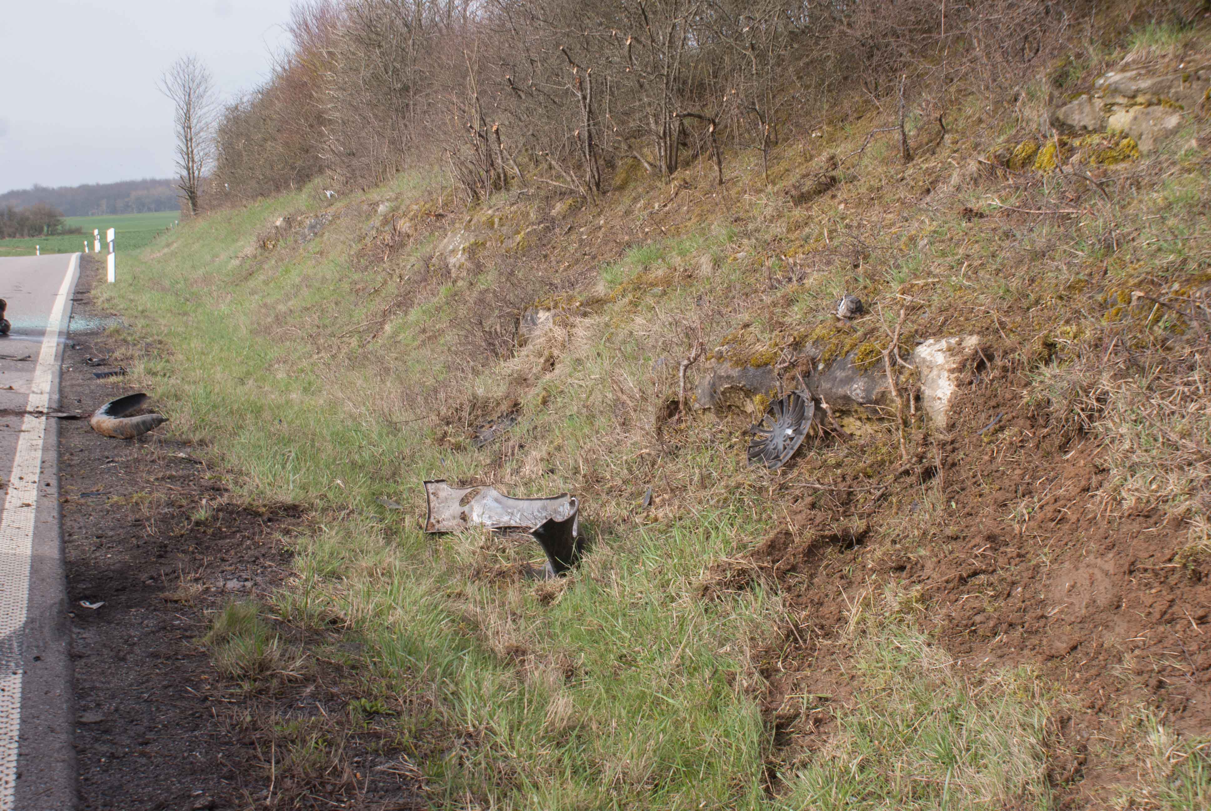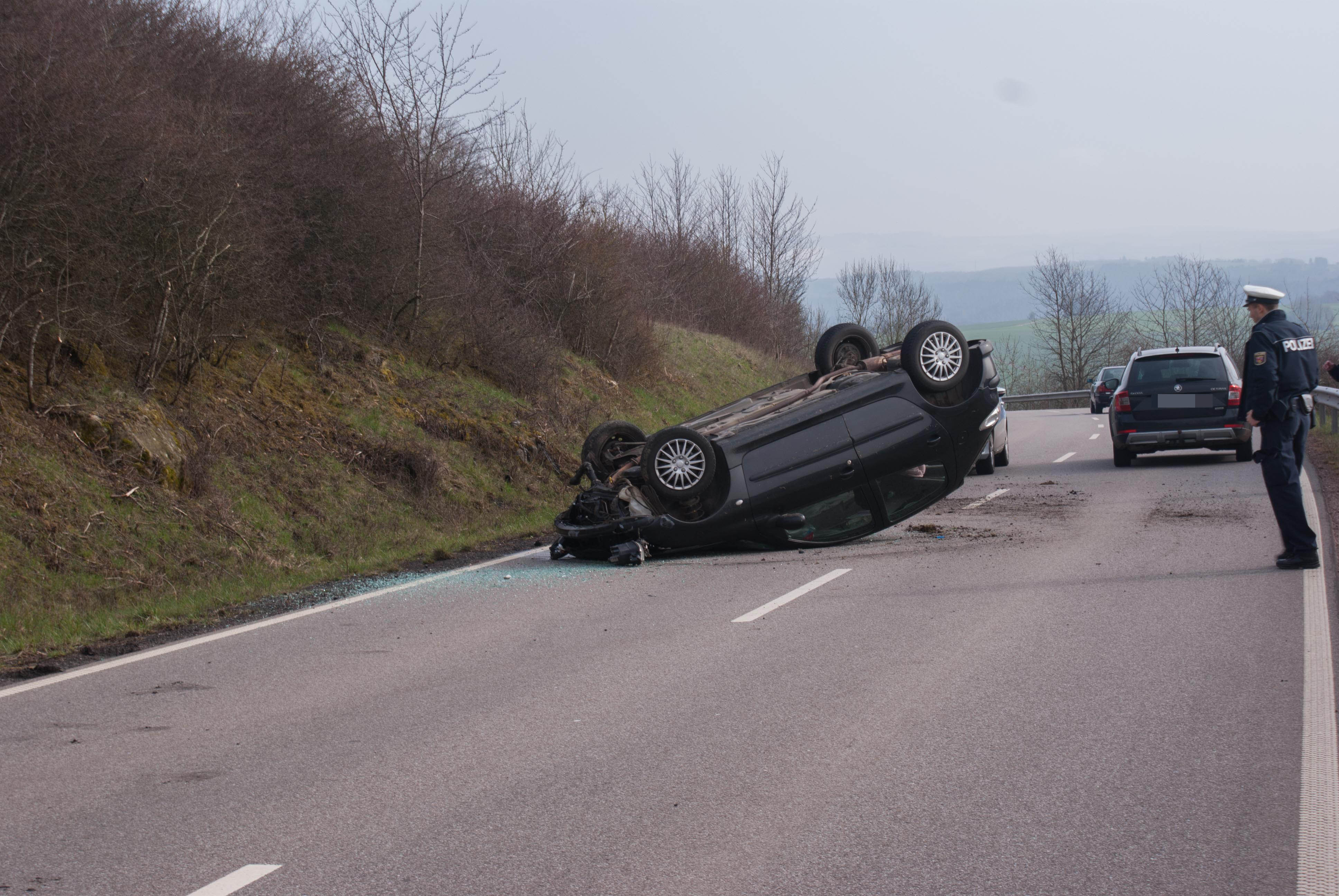 Gegen 10.00 am heutigen Samstag befuhr ein 21 jähriger die B 407 Richtung Perl. Außerhalb der Ortslage Kirf geriet sein Peugeot 206 links auf den unbefestigen Randstreifen, schleuderte über die Gegenfahrbahn und prallte mit der Frontseite gegen einen Felsvorsprung und überschlug sich. Das Fahrzeug wurde total zerstört. Der Fahrer hatte Glück im Unglück und kam mit leichteren Verletzungen in ein Krankenhaus. Im Einsatz waren der Notarzt und Rettungswagen aus Saarburg.