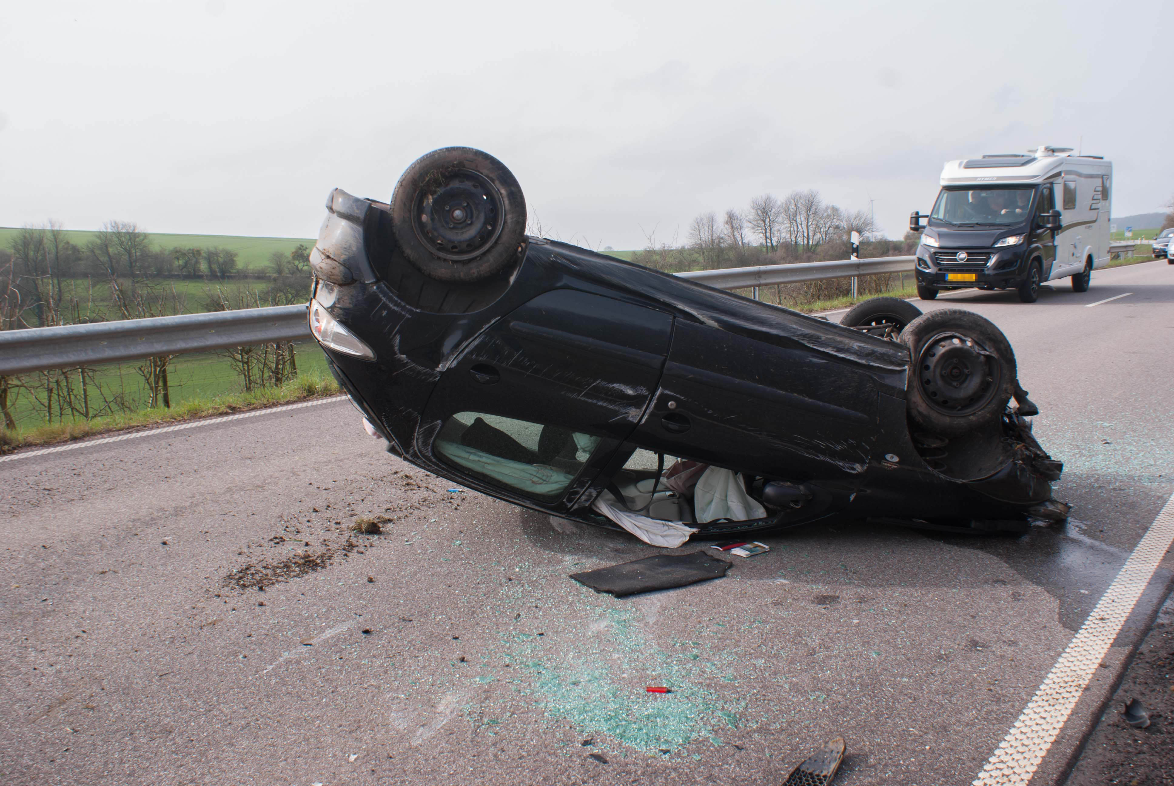 Solo Überschlag eines 21 jähr. auf der B 407 bei Kirf
