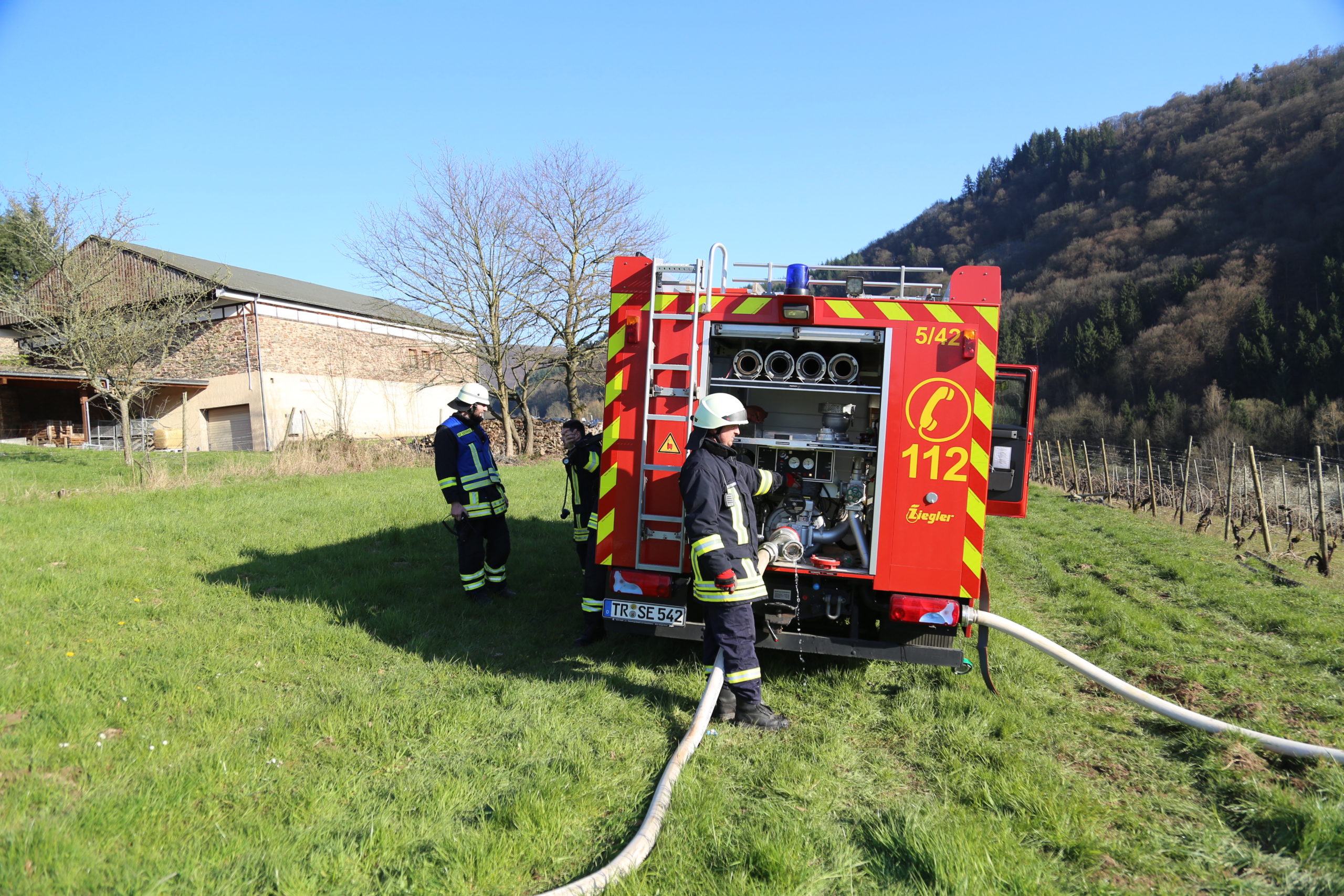 Kurz vor 16.00 Uhr wurden mehrere Feuerwehren zu einem in Brand geratenen Geräteschuppen nach Serrig ausrücken. Zwei Kinder hatten zuvor mit Feuer gespielt und dabei unabsichtlich den Schuppen am Ortsrand in Brand gesetzt. Das Feuer breitete sich schnell aus, im Schuppen lagerten kleinere landwirtschaftliche Maschinen, sowie Stroh und Heu.
