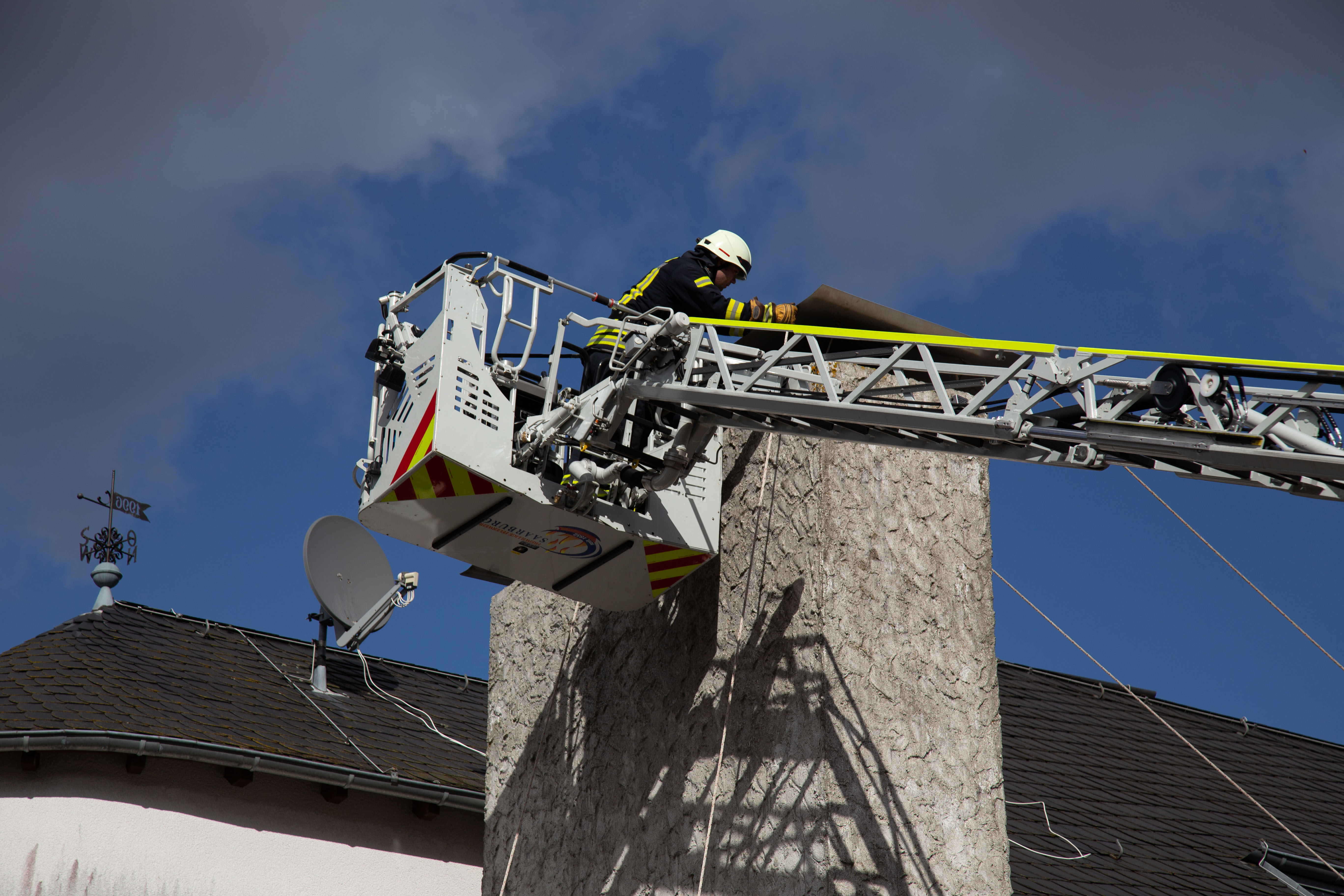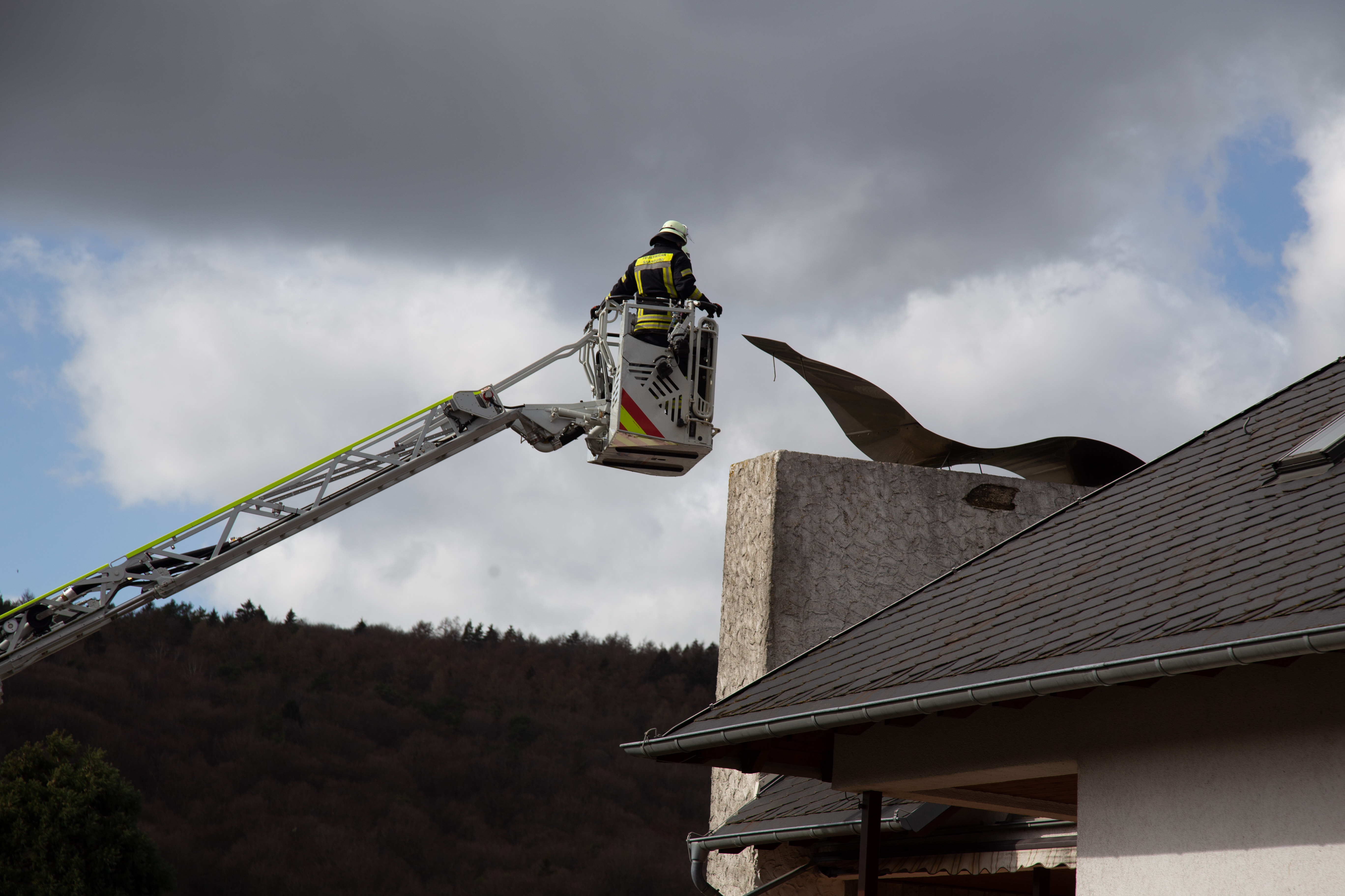 Am Mittag kam es in Taben-Rodt zu einem Feuerwehreinsatz. Ein großes Kaminblech drohte sich vom Dach zu  lösen. Die Feuerwehren aus Taben-Rodt, Freudenburg und Saarburg sicherten die Einsatzstelle ab und entfernten das gefährdete Blech. Zu weiteren Schäden kam es nicht.