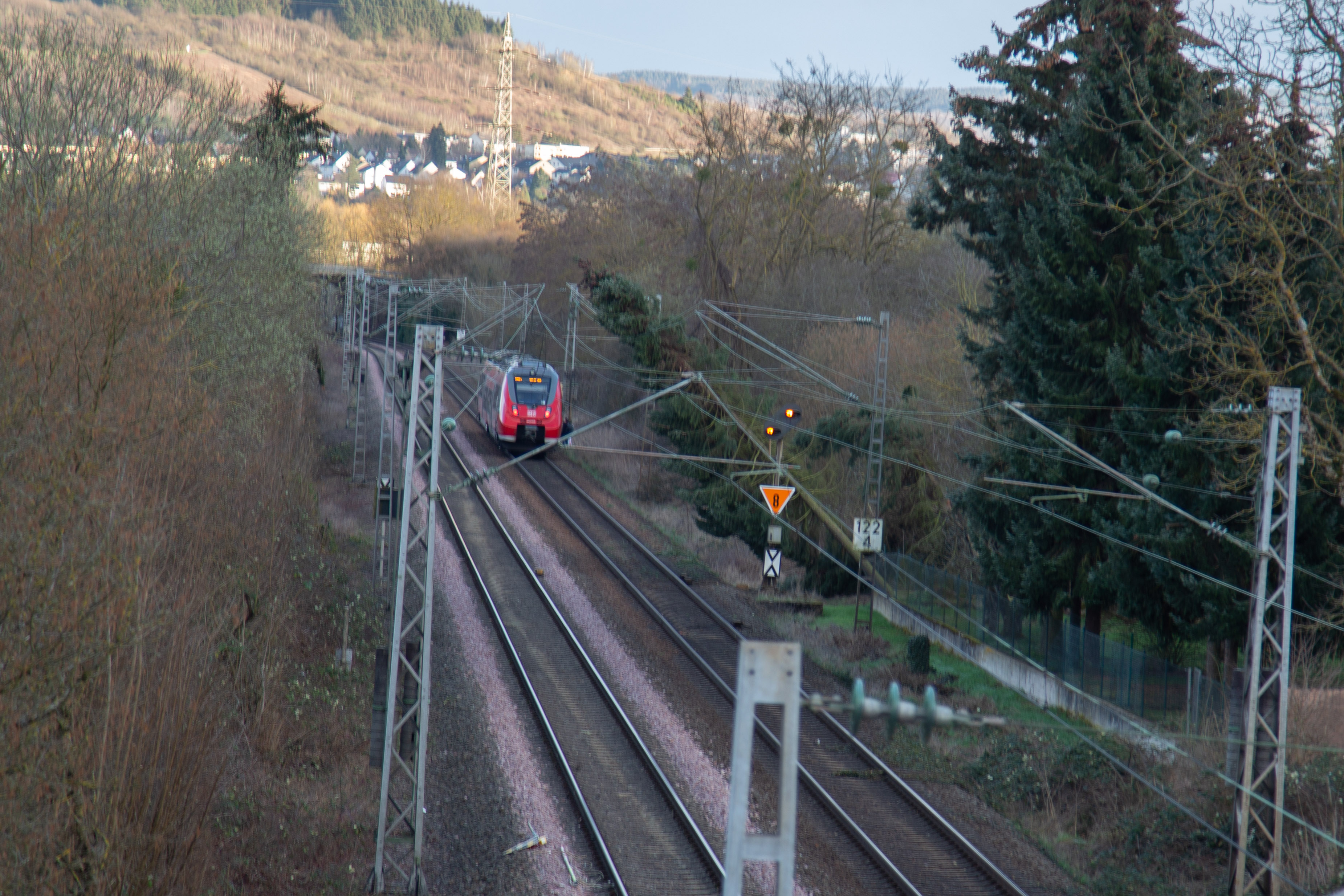 In Folge des Sturms ist am Nachmittag eine große Fichte auf die Bahnstrecke bei Wasserlisch gestürzt. Die Bahnstrecke Perl-Trier musste in beide Richtungen gesperrt werden.